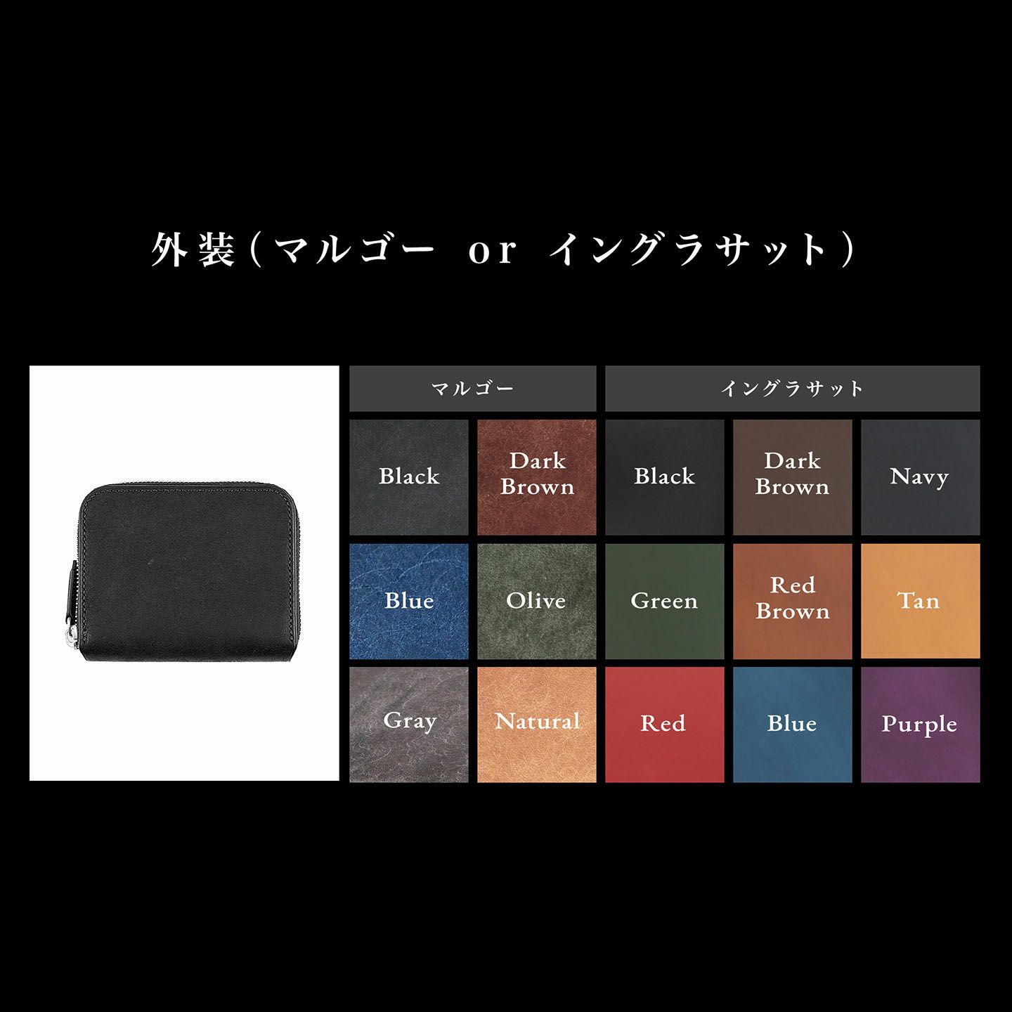 センターで仕切られた両サイドのマチが大きく開いて使いやすく、そのマチにより設けられた2つのフリースペースに、紙幣(二つ折り)・小銭・レシートや計5つのカードポケットに収まり切らなかったカードなどをマルチに収納できる設計。センター仕切りの片側にはカードポケット1つを装備し、頻繁に使うカードの収納などに便利です。さらに、「マルゴー」6色・「イングラサット」9色から、外装と内装の素材・カラーを自分の好みで自由に組み合わせられ、日本の革小物の伝統技法「切り目磨き」のコバは、カラーオーダーの組み合わせによりブラックもしくは最適な色をブランドがチョイス。ハイクオリティな総手縫いでクラフト感あふれる糸色も、高級麻糸「MeiSi Superfine Linen Thread」の多彩な25色からセレクトできます。また、外装カラーと統一されたファスナーテープの色を考慮しながら、ファスナーもSilver・Goldのいずれかから選ぶことが可能。豊富なバリエーションから素材・カラーをセレクトして、オーダーメイドのように受注生産できるので、一品もののような満足感も得られます。