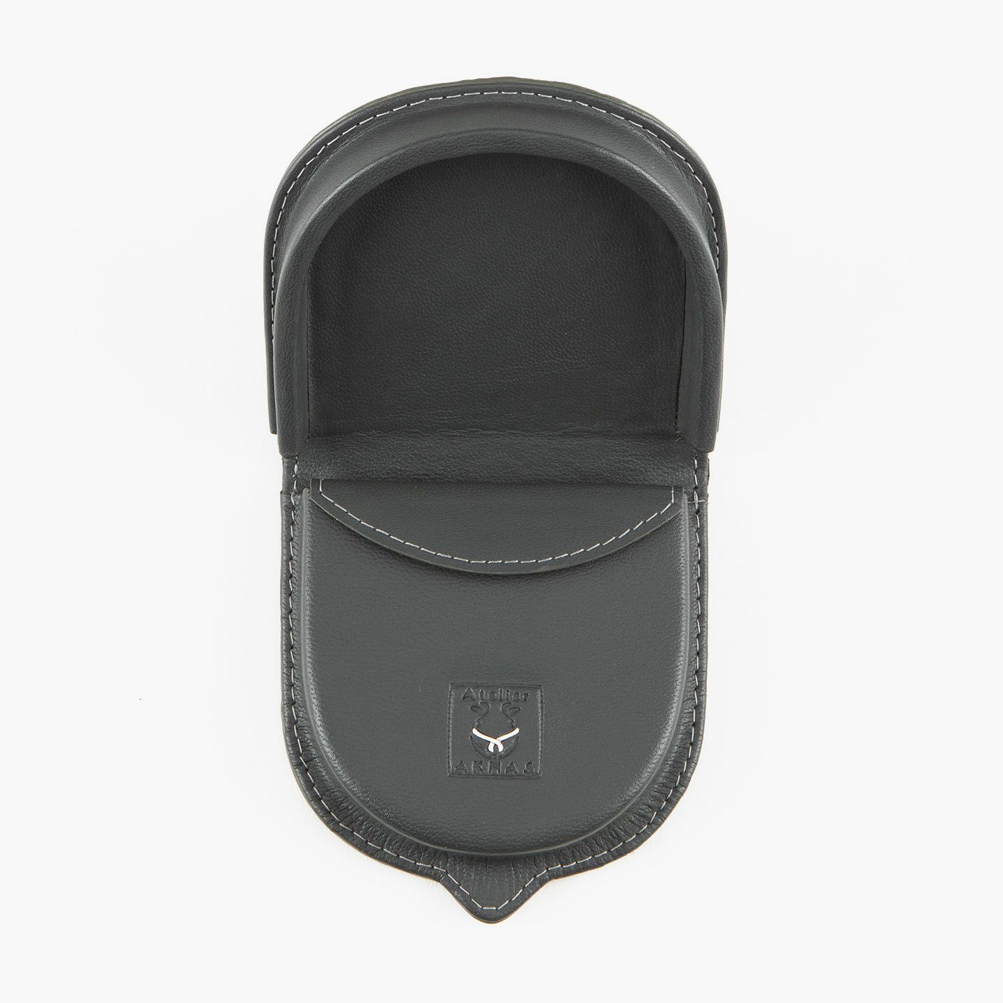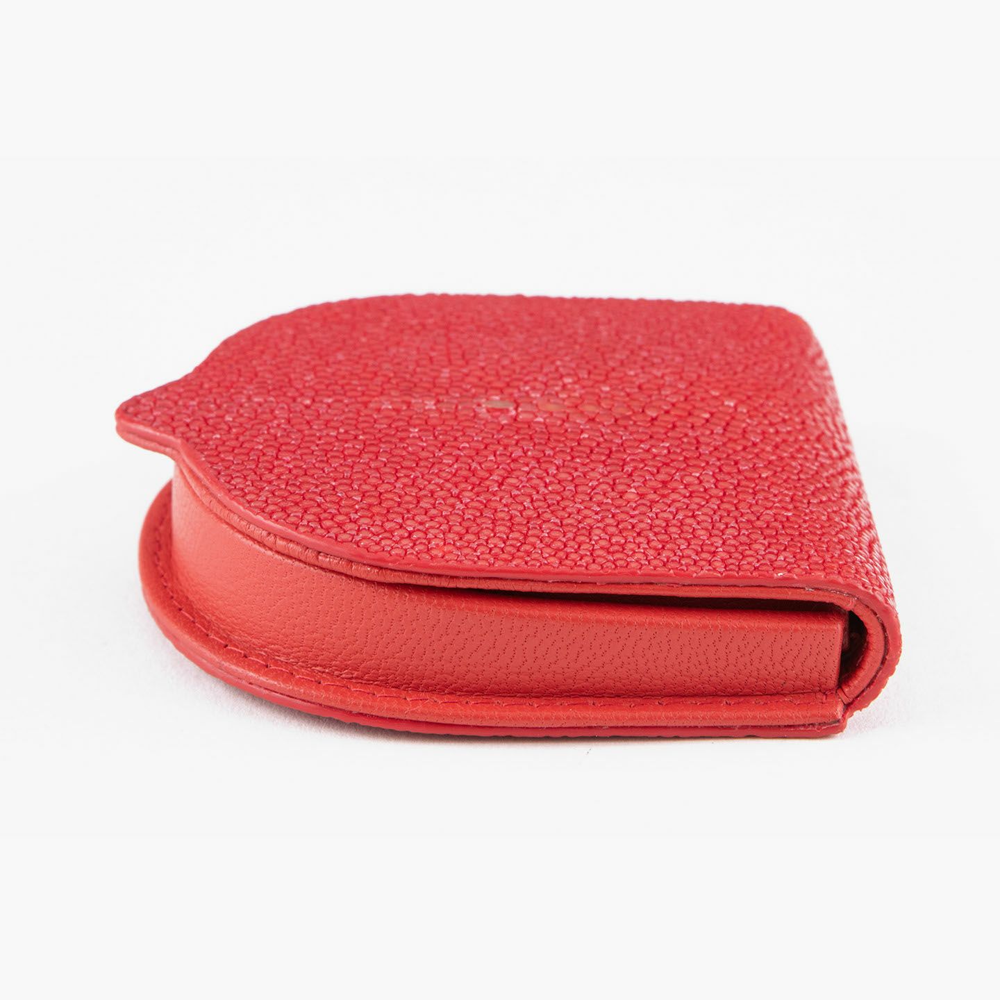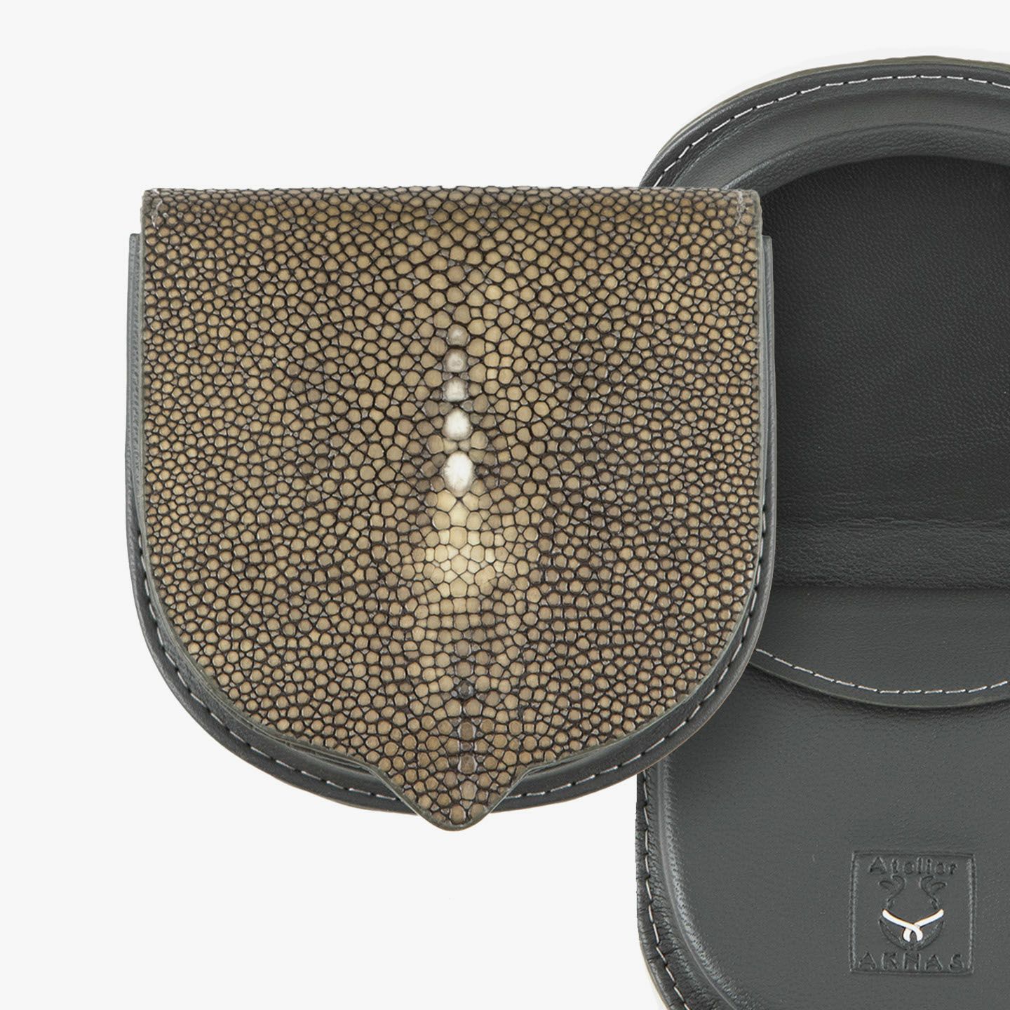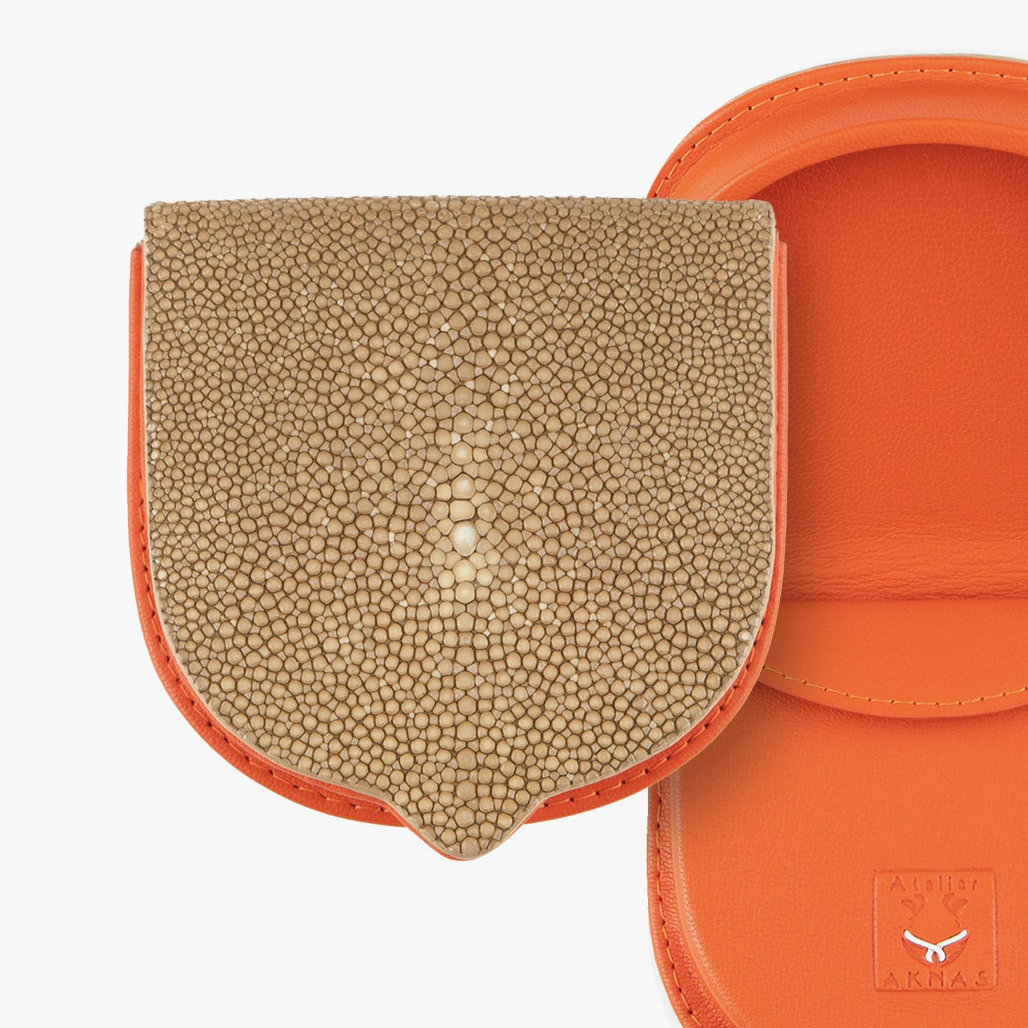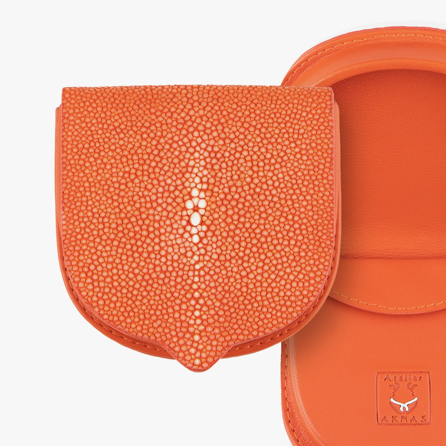 他とは違う美学のブランドとして、「いつも一緒に人生の旅の時間を刻んでいく革製品でありたい」という想いを込めている、『Atelier AKNAS』の馬蹄型コインケース。馬蹄のようなフォルムの個性的なスタイリッシュさと、コインポケット1つ・マルチポケット1つ(カブセ裏)のみを備えた構造のシンプルさによる、ひとつ上のセンスを醸すアンビバレントな融合が独創的。小さい鱗が高級感を漂わせるエイ革「ガルーシャ」と、鮮やかなカラーで上質なイタリア産「山羊革」が、異素材ならではの存在感を互いに主張しながら、古来より“ラッキーフィッシュ(幸福の魚)”と呼ばれている縁起が良さも、大人の幸福感を満たしてくれる。