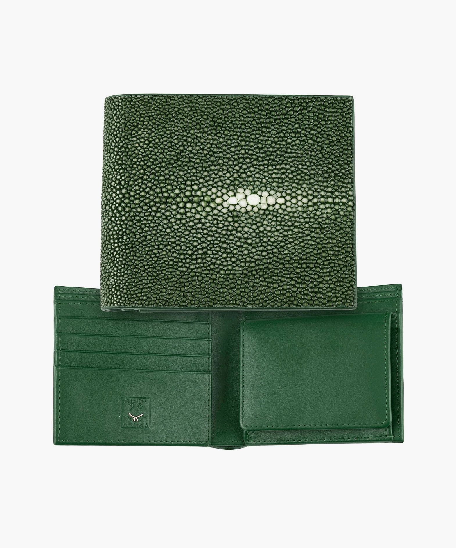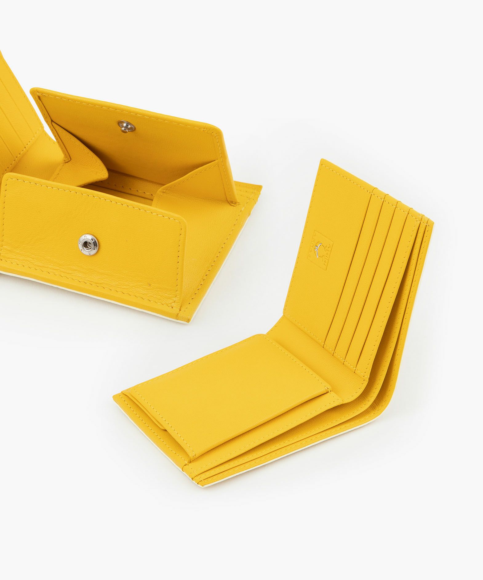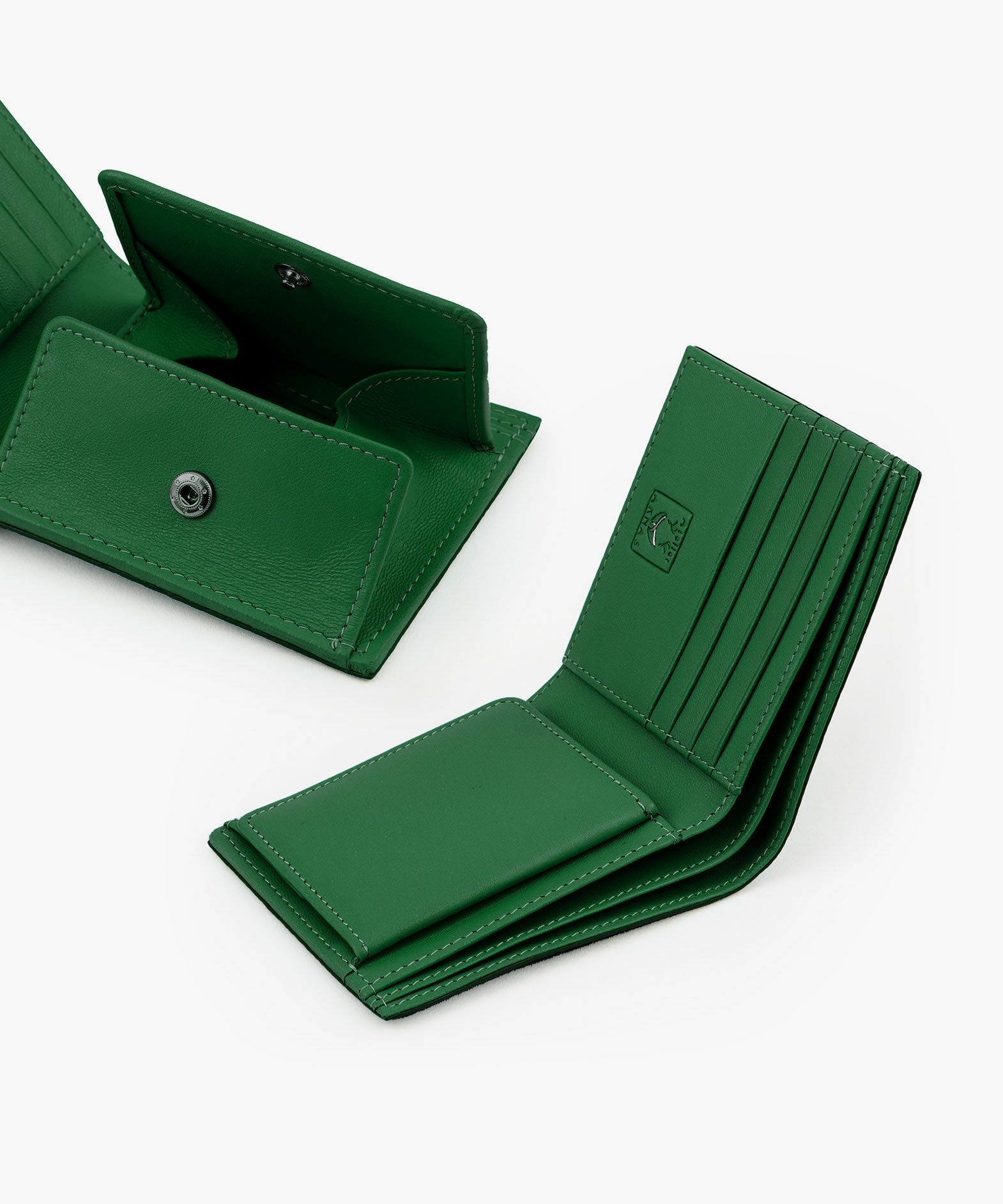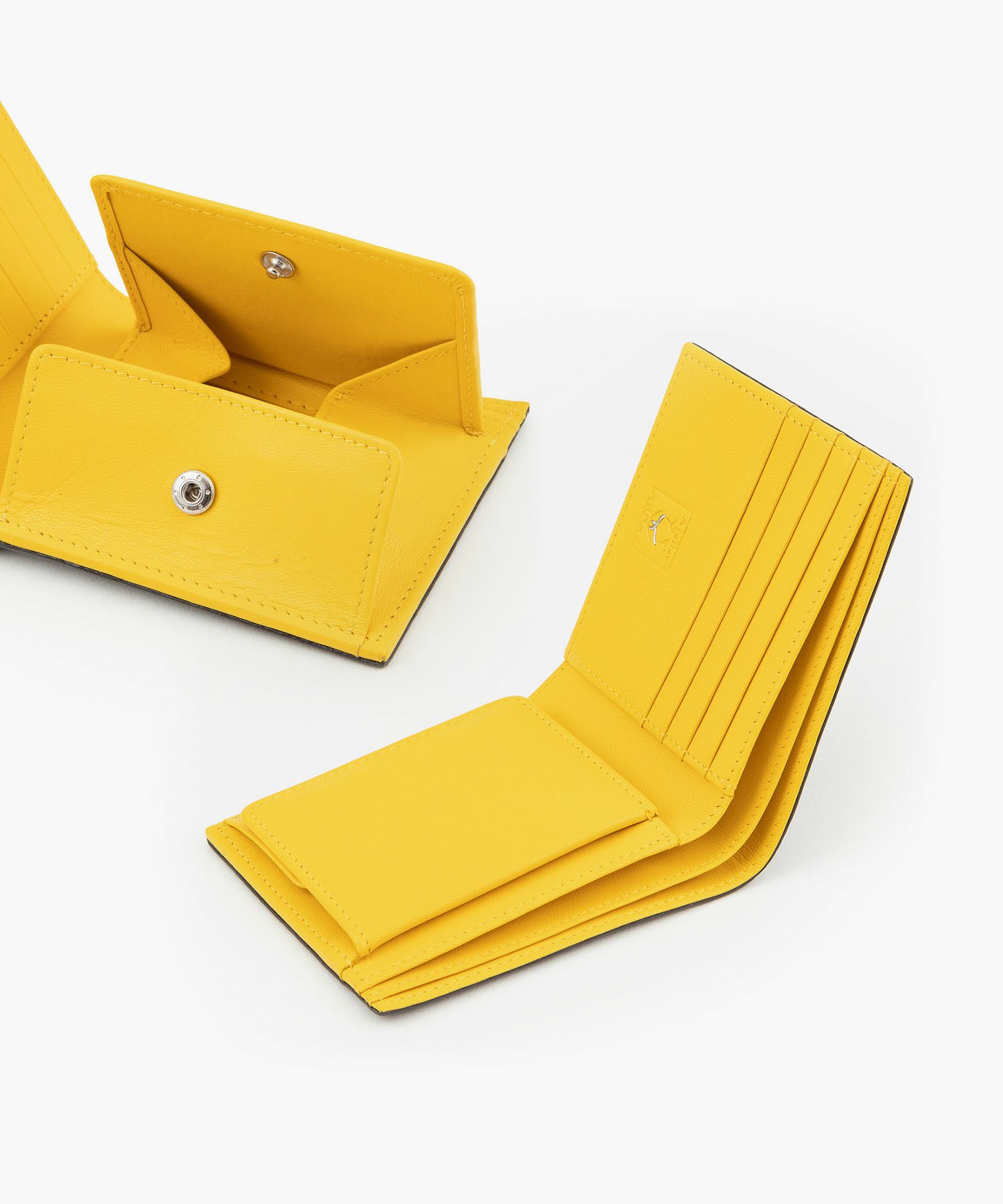 他とは違った美学による洒落た人生の旅へと誘う、“Cuirs D'ailleurs 〜旅するレザー〜”をコンセプトにしている、ブランド『Atelier AKNAS』の二つ折り財布(小銭入れ付き)。地中海の潮風を指先で感じるような冷んやりとした感触が印象的な外装「ガルーシャ」は、ガラスビーズを散りばめたみたいな小さな鱗が美しく、 “100年モノ”と言われるくらい強度・耐久性も誇る、縁起が良いと重宝されてきたエイ革。内装には、異なる質感・カラーリングが絶妙なイタリア産「山羊革」をあしらい、札入れ・カードポケット・フリーポケットとともにボックス型小銭入れも備え、サイズ感を超える収納性が普段使いをより楽しくしてくれる。