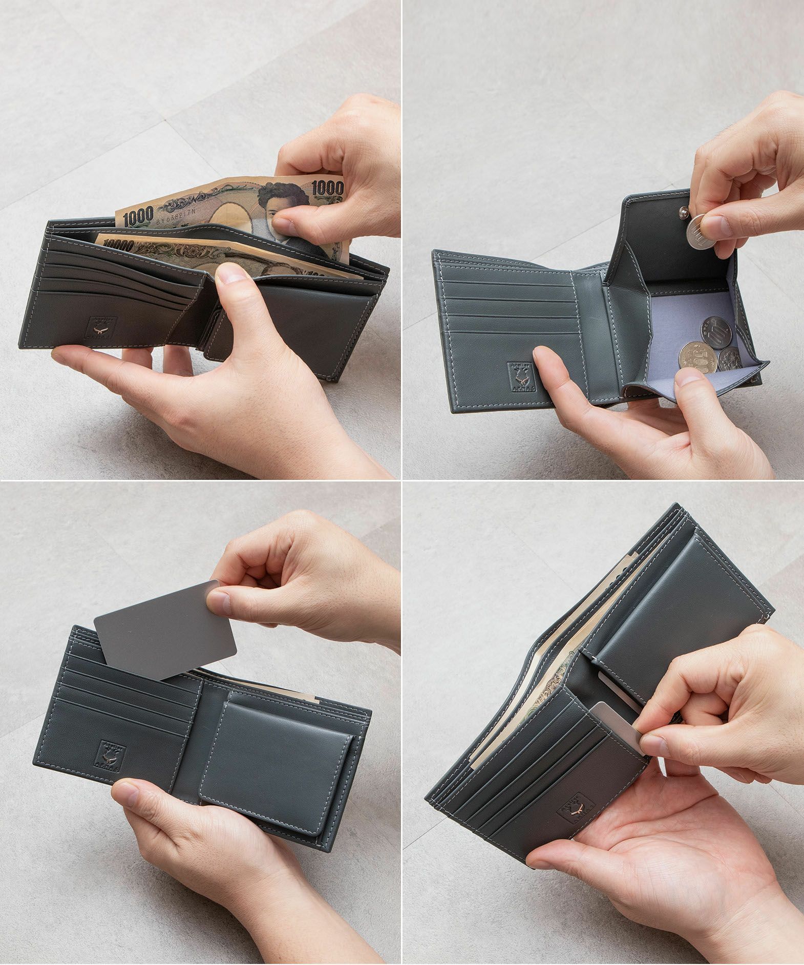 仕様 札入れ × 2、ボックス型小銭入れ × 1、カードポケット × 4、フリーポケット × 2