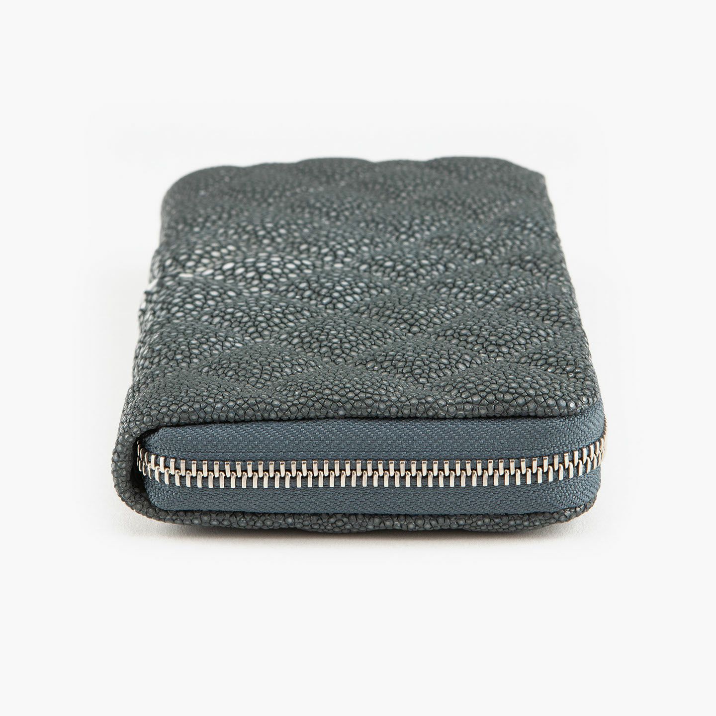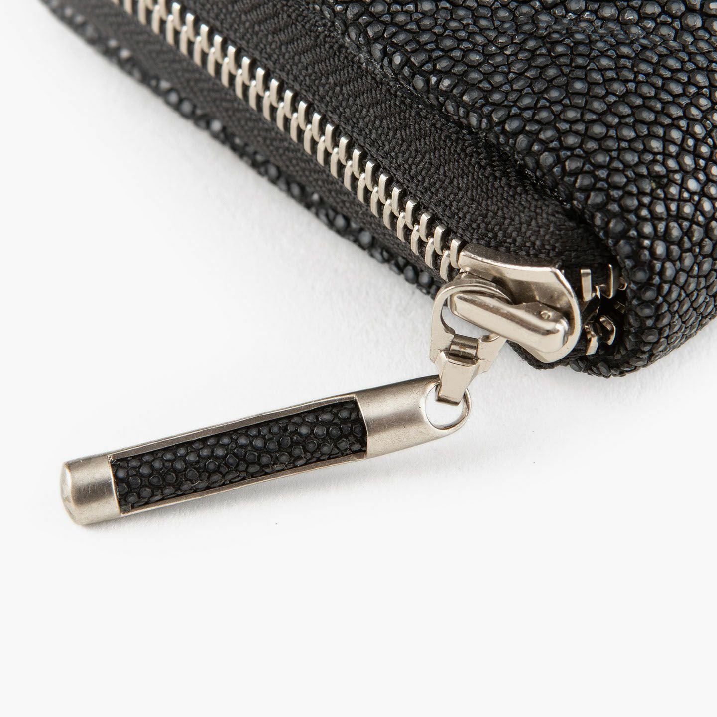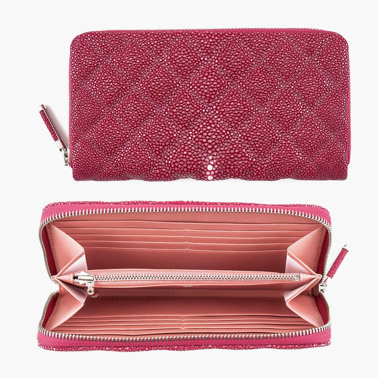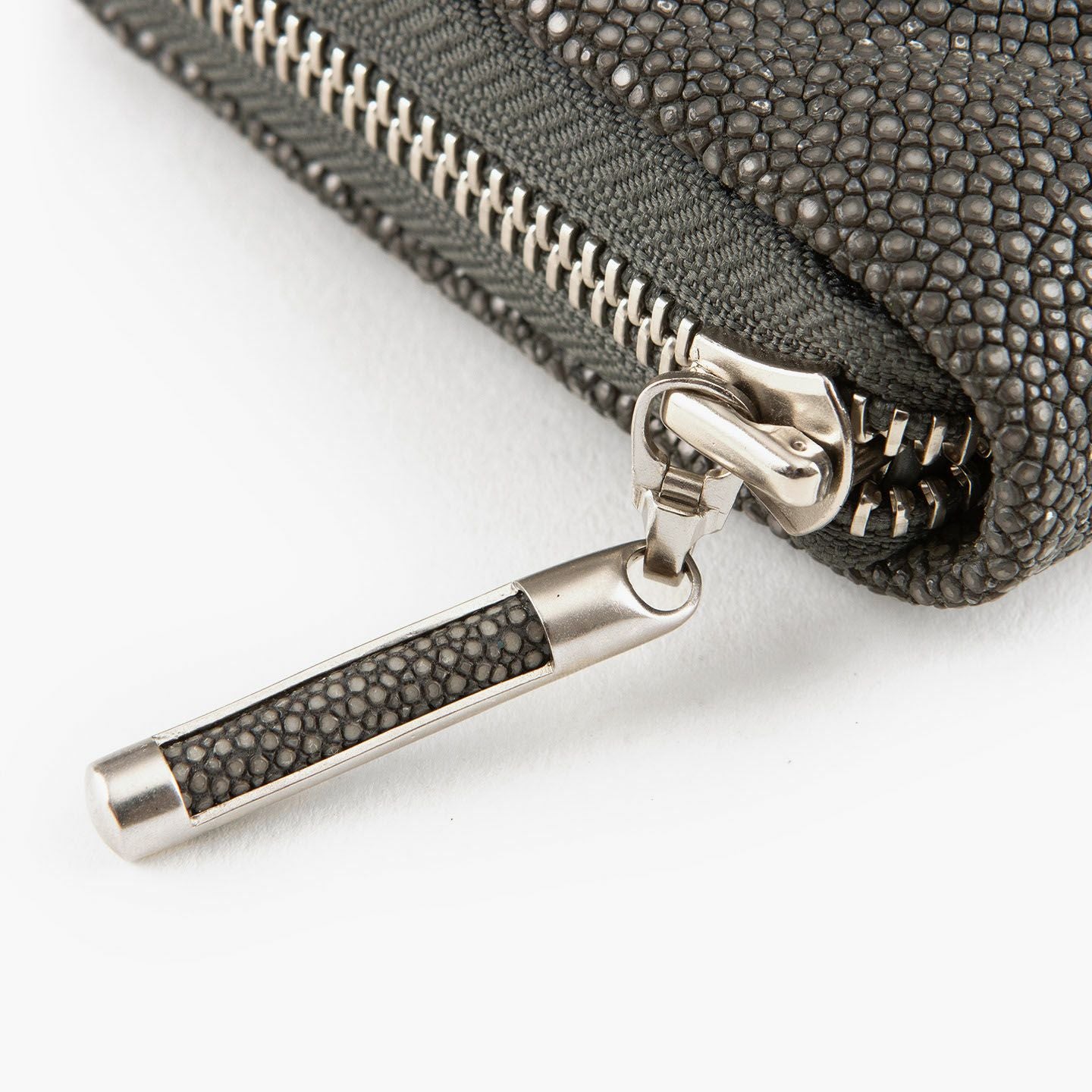 「いつも一緒に人生の旅の時間を刻んでいく革製品でありたい」という、想いを込めているブランド『Atelier AKNAS』のラウンドジップ長財布(ダイヤエンボス)。ガラスビーズを散りばめたような小さな鱗が美しく、縁起が良いと重宝されてきたエイ革「ガルーシャ」の硬い皮革の下に、特殊なクッション材を入れて試行錯誤の末にエンボス加工のダイヤ模様を成功させた、ブランドの真骨頂とも言える独創的なデザインで世界的にも希少なコレクション。贅沢な極上感を纏った高品位でエレガントな外装の魅力とともに、三層に分かれている内装の設計により収納物の整理がしやすい実用性も兼ね備え、大人の感性を満たしてくれる。