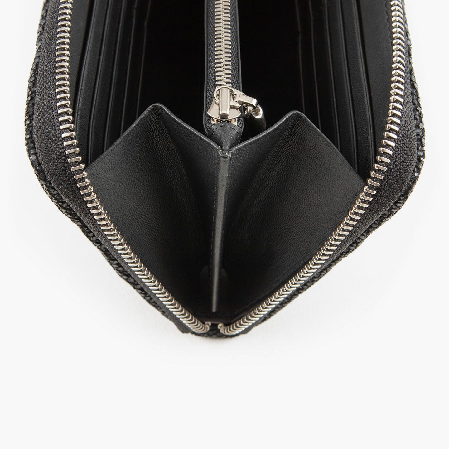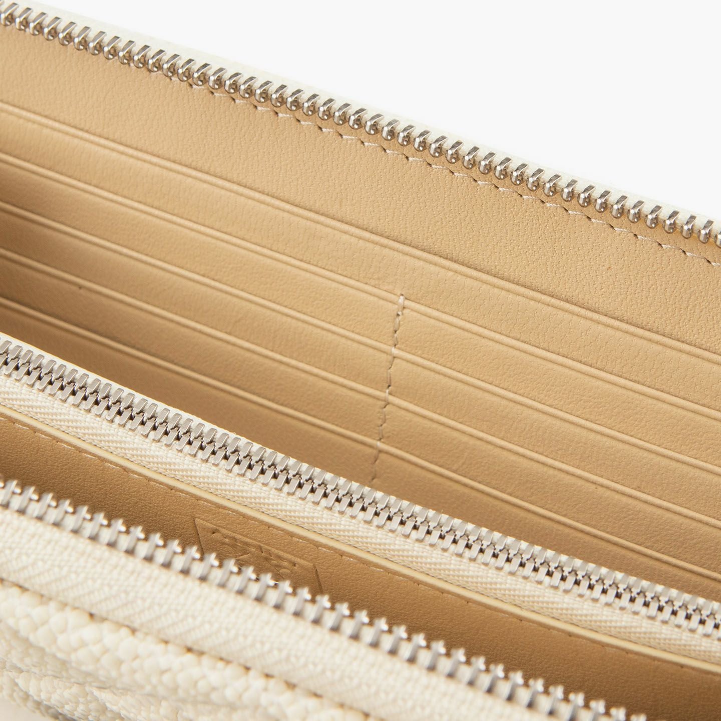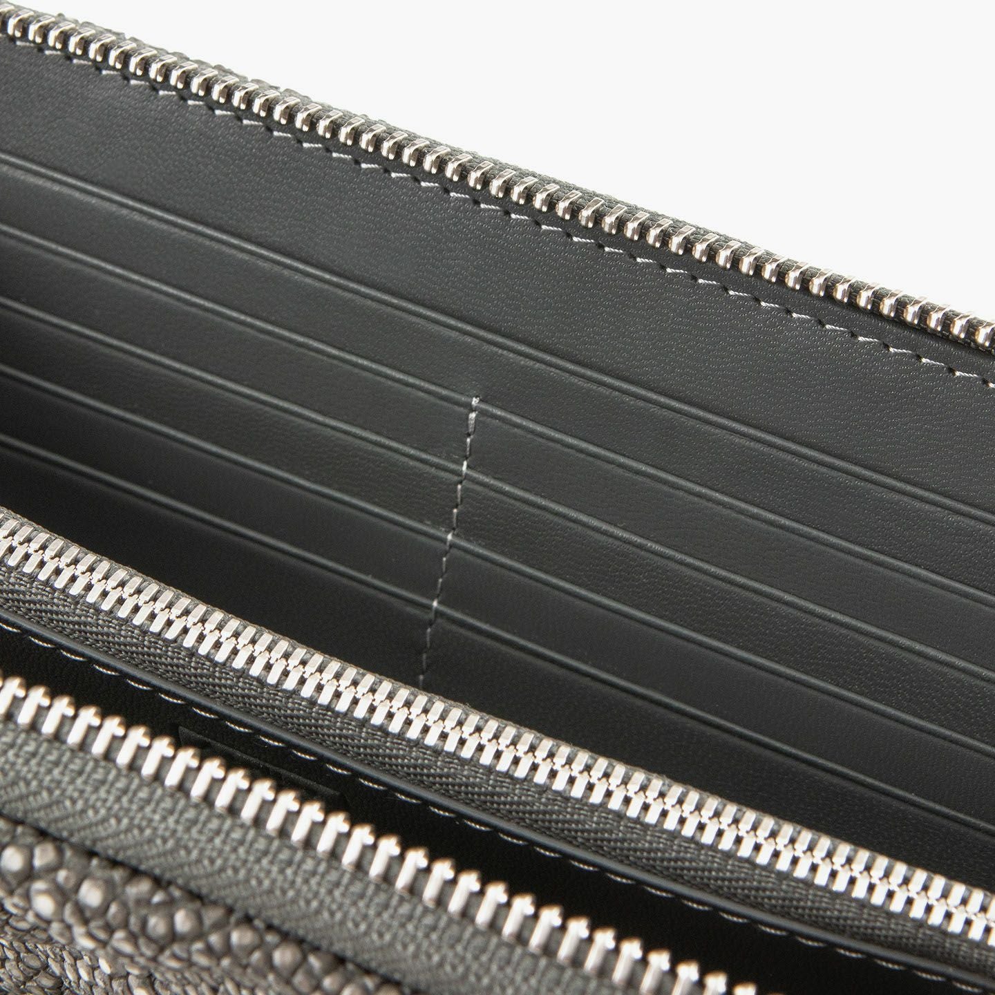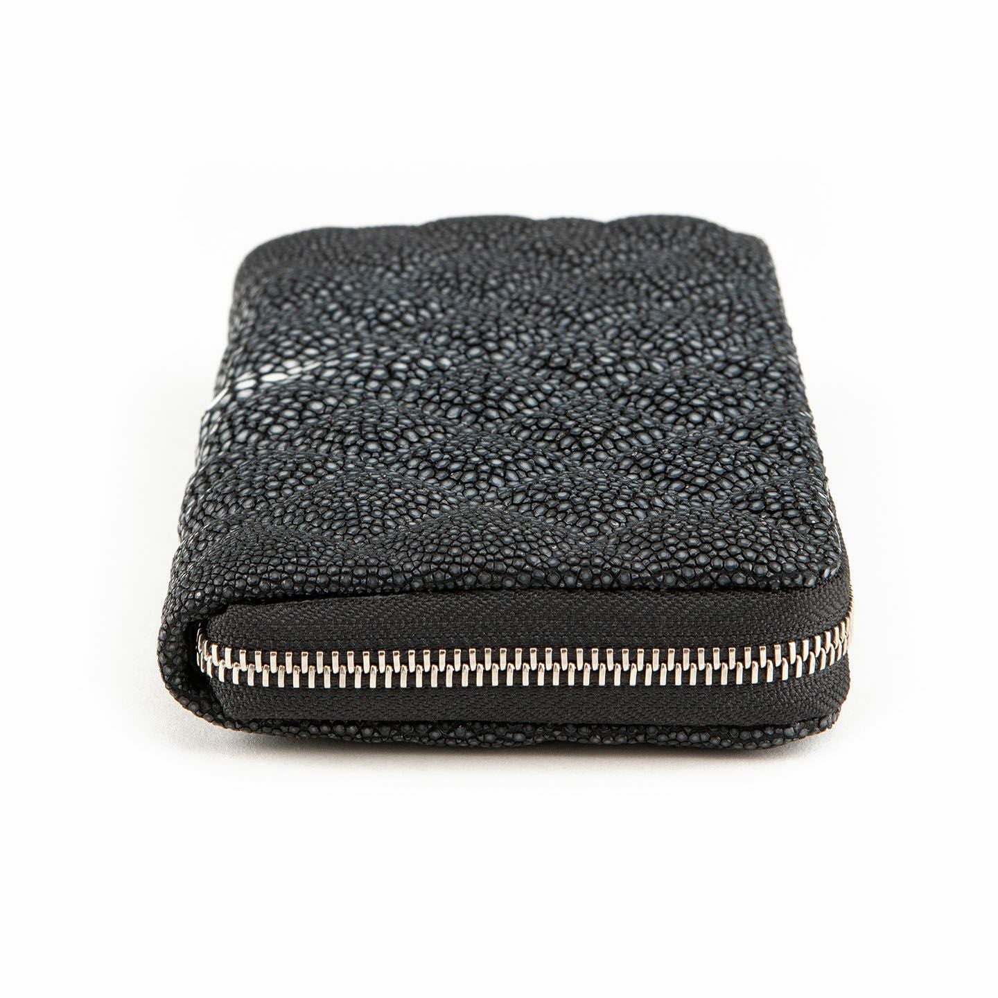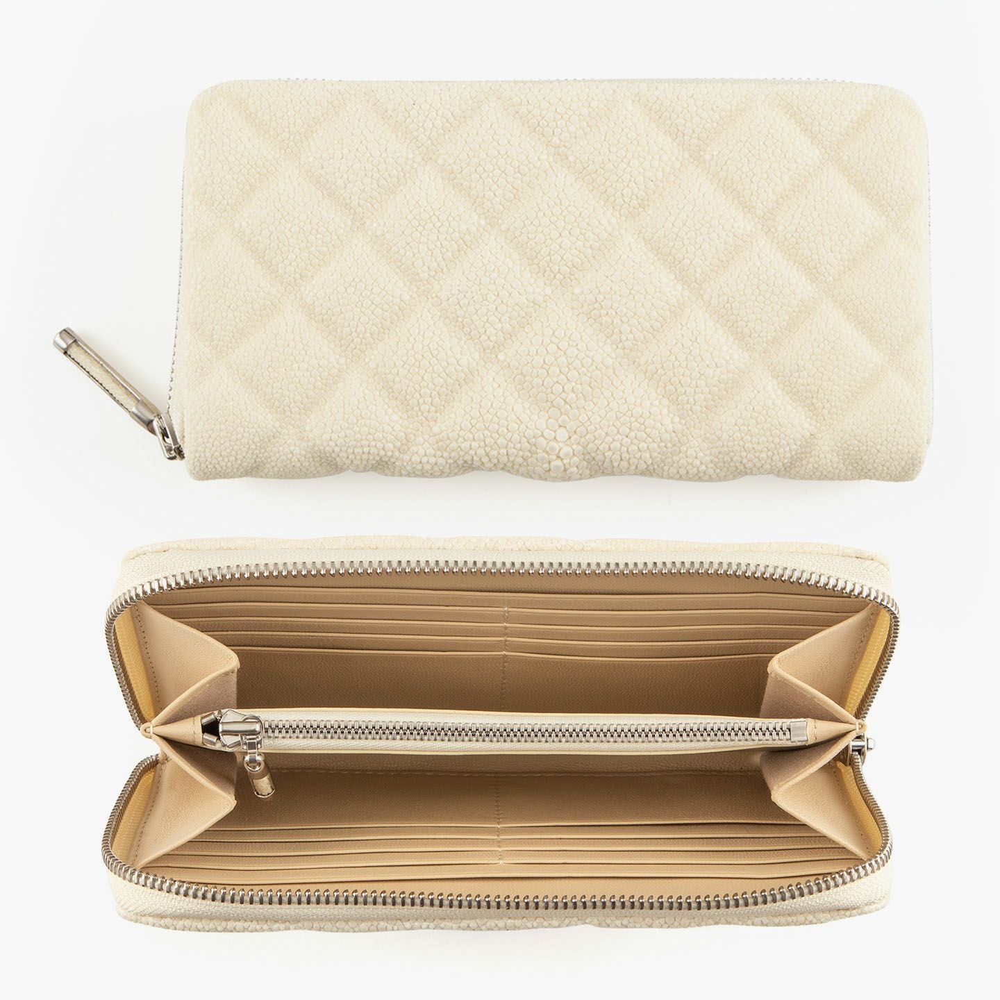 「いつも一緒に人生の旅の時間を刻んでいく革製品でありたい」という、想いを込めているブランド『Atelier AKNAS』のラウンドジップ長財布(ダイヤエンボス)。ガラスビーズを散りばめたような小さな鱗が美しく、縁起が良いと重宝されてきたエイ革「ガルーシャ」の硬い皮革の下に、特殊なクッション材を入れて試行錯誤の末にエンボス加工のダイヤ模様を成功させた、ブランドの真骨頂とも言える独創的なデザインで世界的にも希少なコレクション。贅沢な極上感を纏った高品位でエレガントな外装の魅力とともに、三層に分かれている内装の設計により収納物の整理がしやすい実用性も兼ね備え、大人の感性を満たしてくれる。