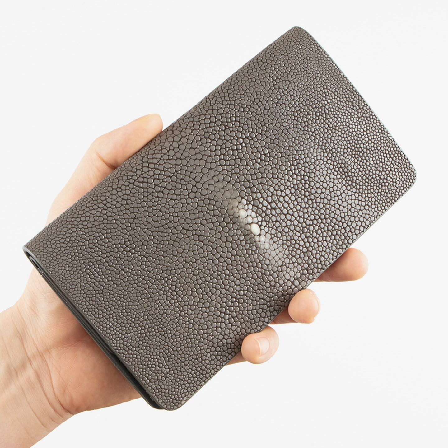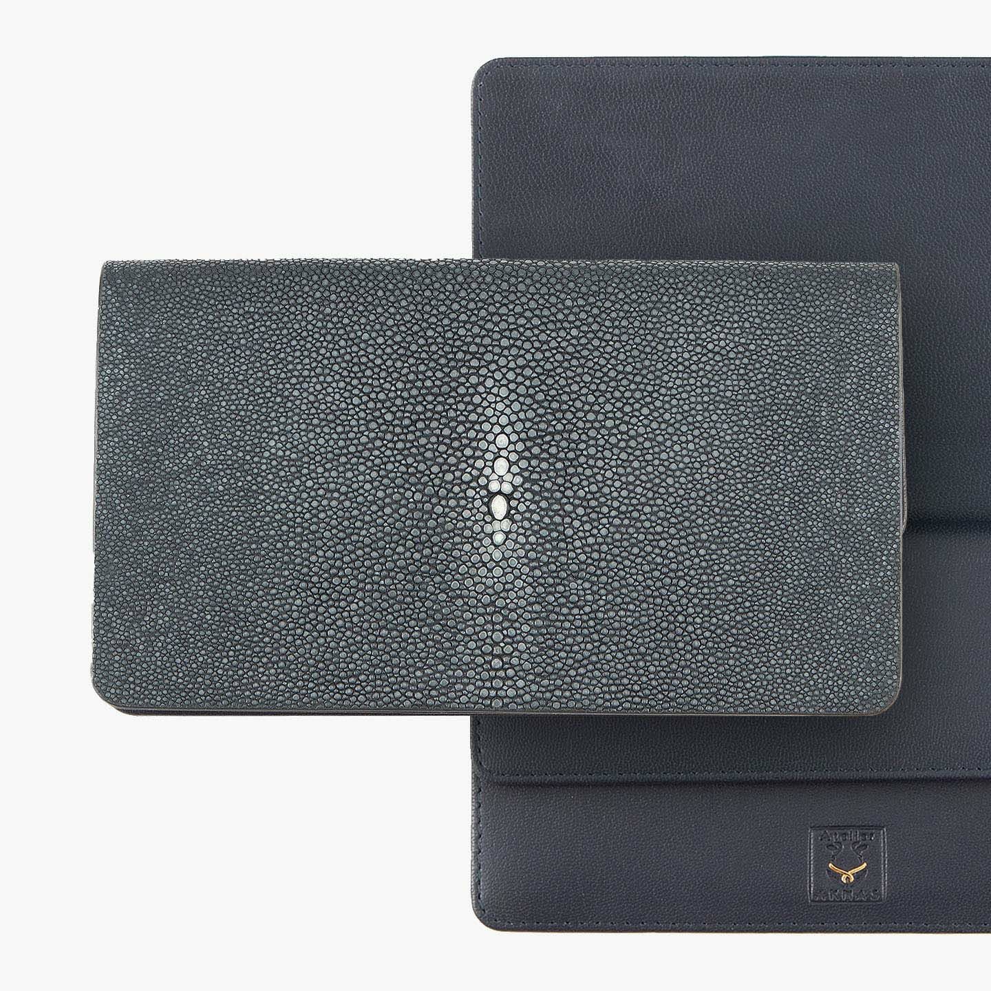フレンチならではの美しいデザインとともに、他の人たちとは違った美学によるクールで洒落た人生の旅へと誘う、ブランド『Atelier AKNAS』の長財布(小銭入れ付き)。縁起が良いと重宝され “海の宝石”とも称される、ガラスビーズを散りばめたようなアカエイの小さな鱗が美しい外装の「ガルーシャ」が、“100年モノ”と言われるくらい強度と耐久性を誇りながら、他のマテリアルでは味わえない美的センスによる唯一無二の存在感で魅了。その佇まいを引き立てる一見シンプルな内装は、小銭入れ・カードポケット共通のカブセを設けて、紙幣入れとセパレートさせた創造的なデザインが、エグゼクティブな印象を秘めさせてくれる。