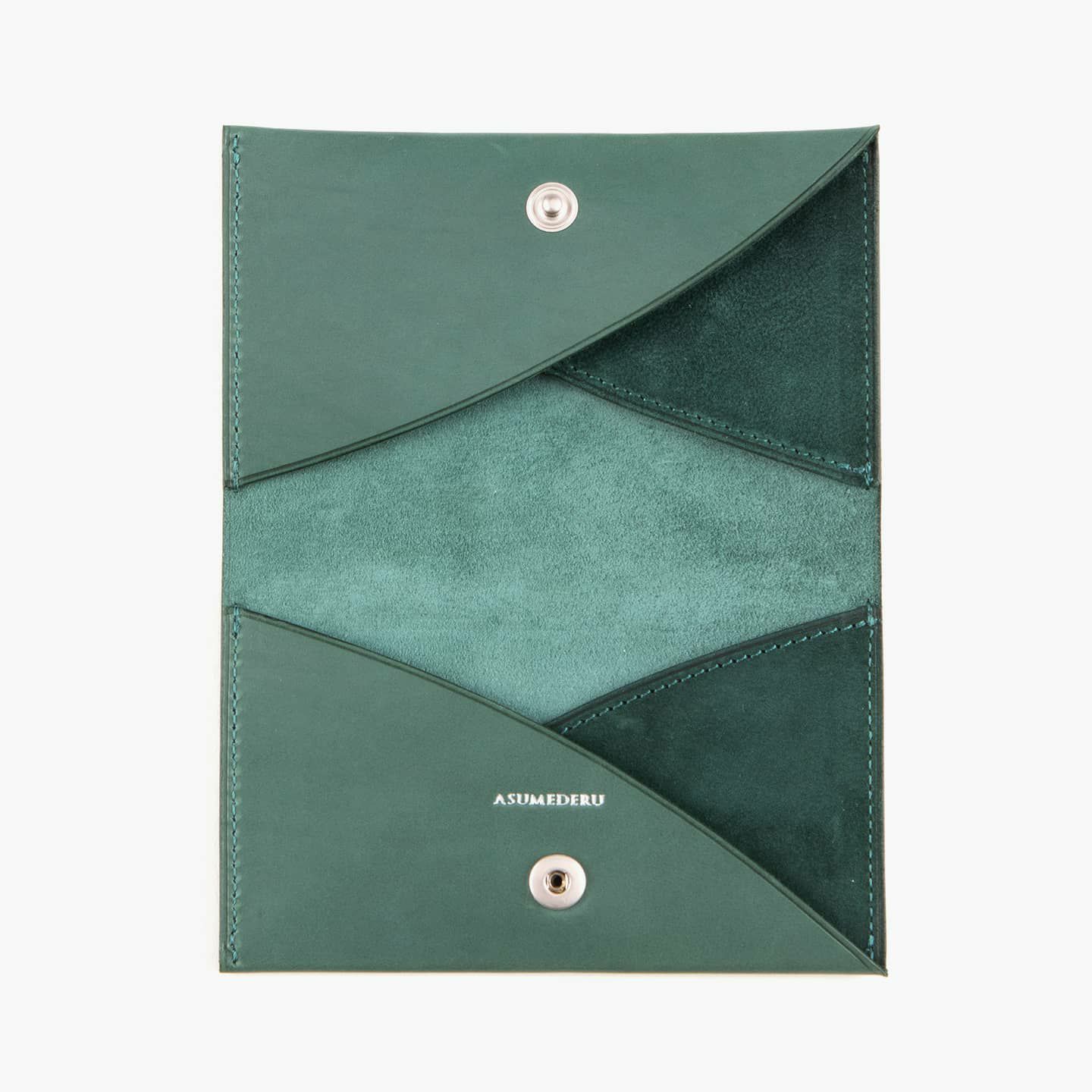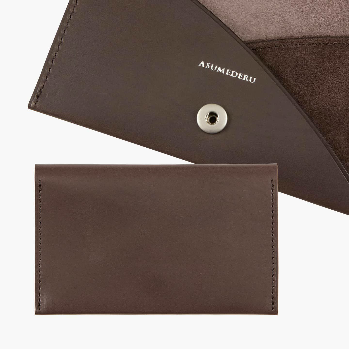 『ASMEDERU』では、40年以上も財布を作り続けている豊富な経験を生かし、一流の技術が必要とされる薄くてシンプルなデザインを実現。本来の革小物は、小さなパーツを多数組み合わせて作られますが、本製品は最小のパーツによる設計で、デザインのアクセントにもなっている美しい縫製も、あえて必要な部分のみに抑えています。