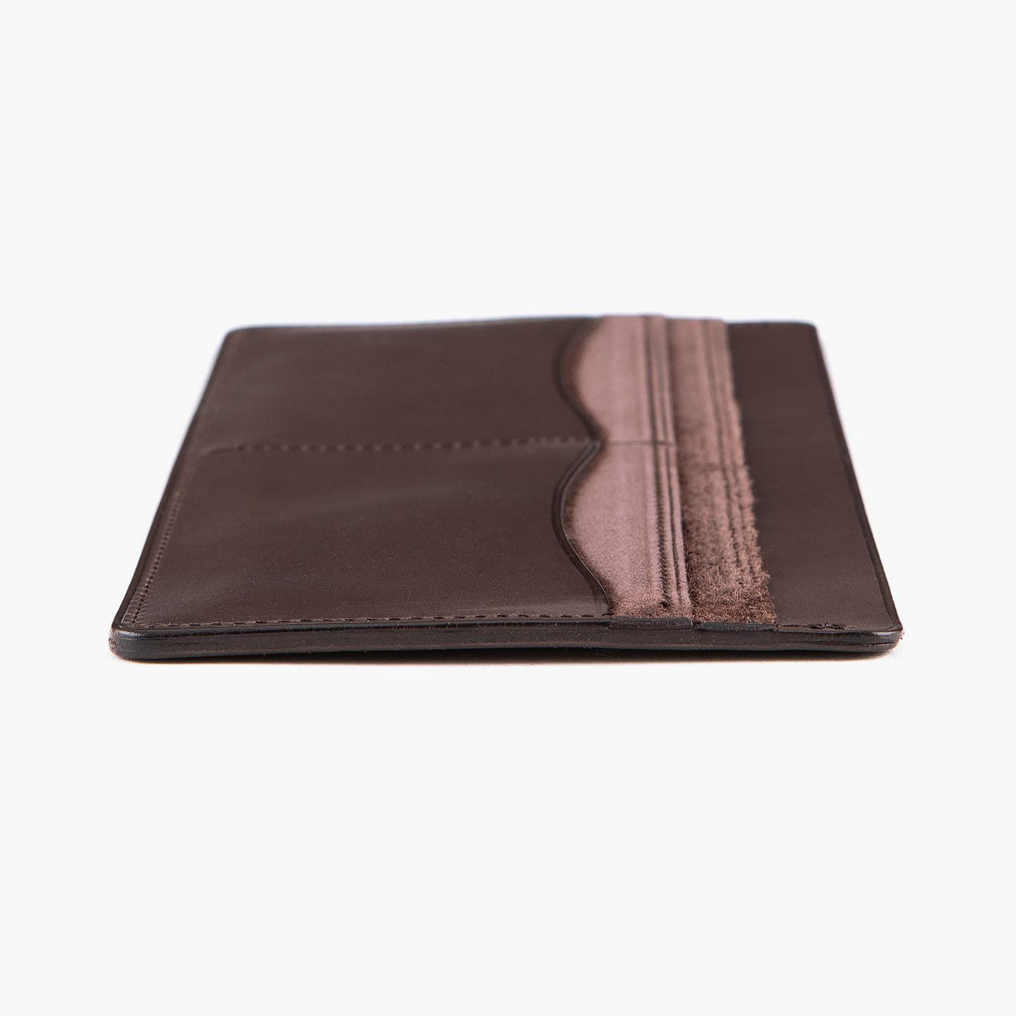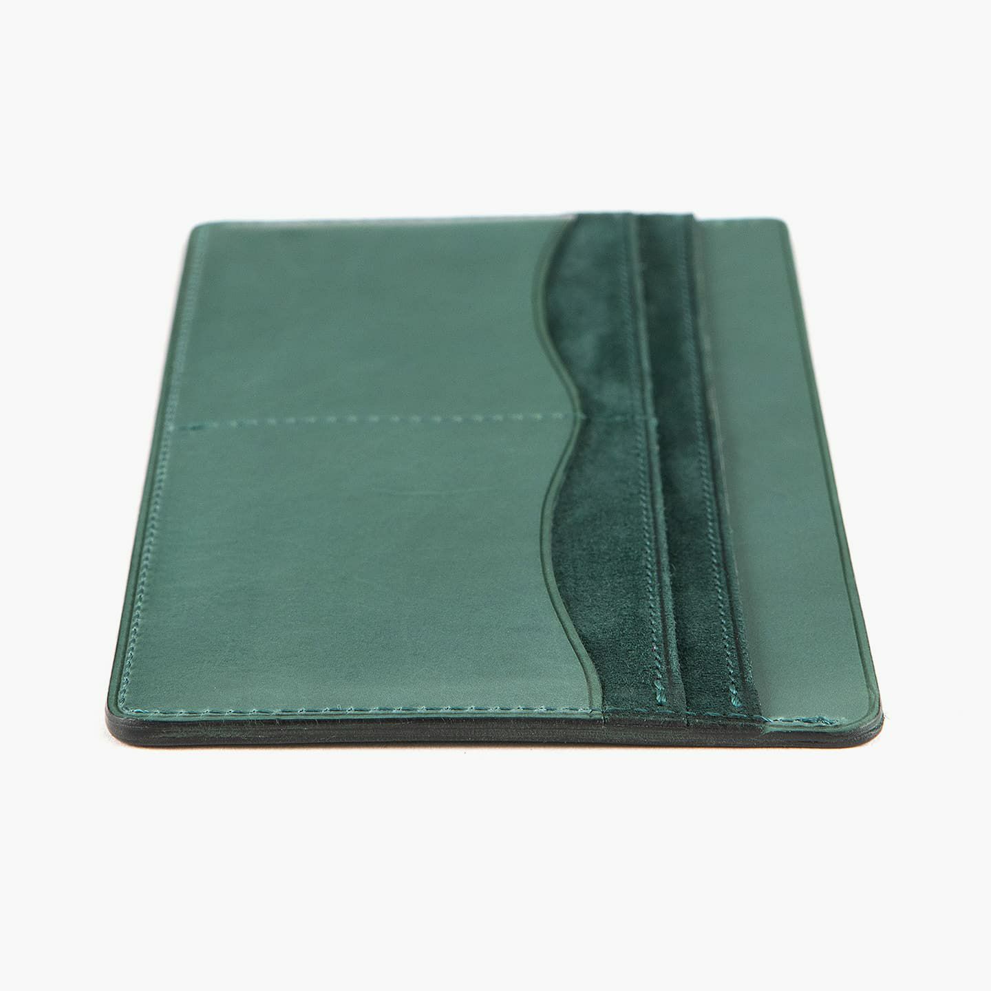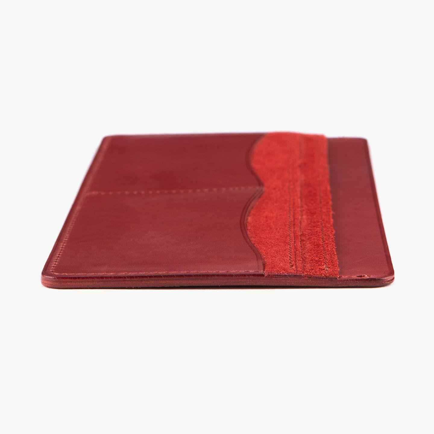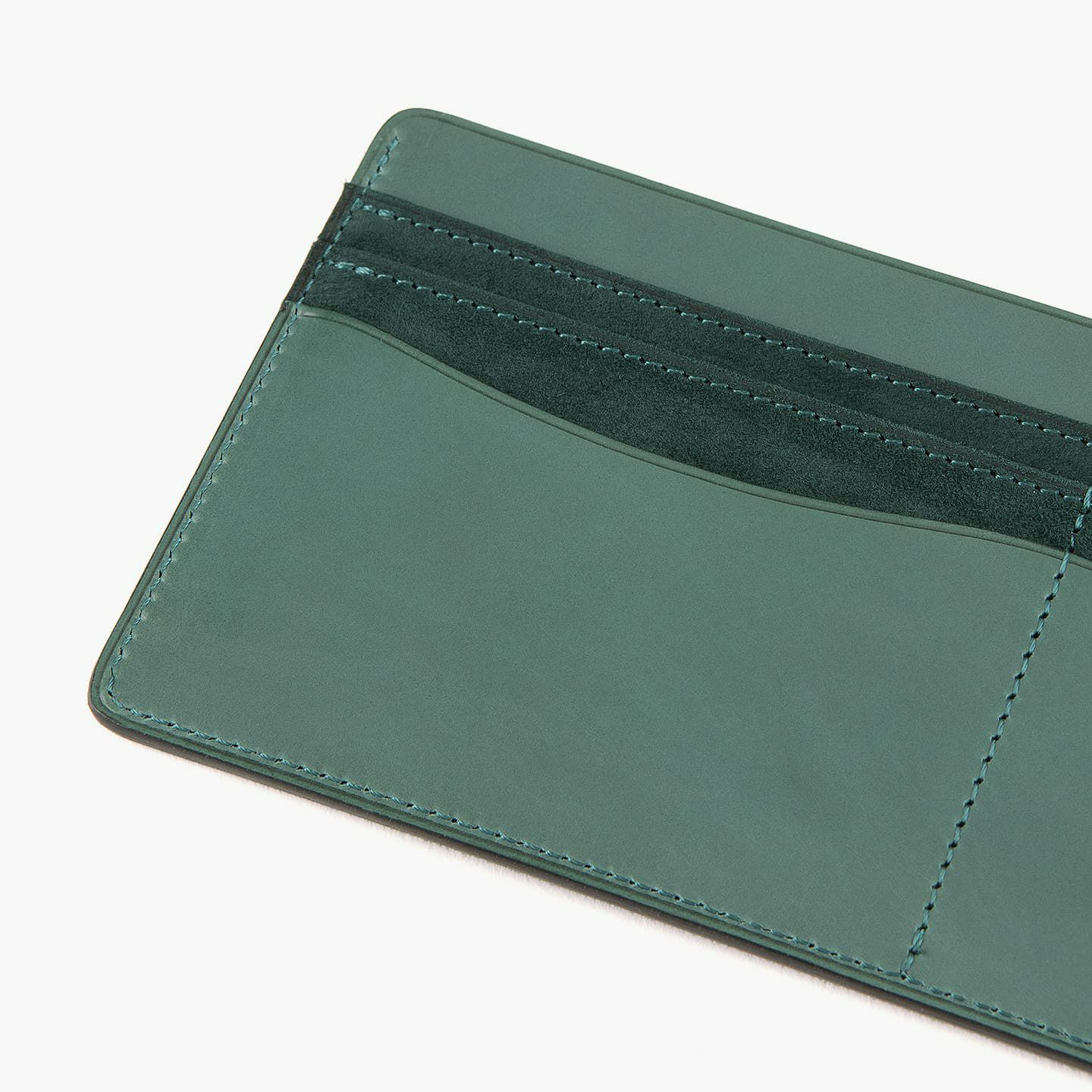 縫製で厚くしない工夫から、裏地も用いずに「ベビーカーフ」の床面を効果的に活用。ツヤのある銀面とスエード調の床面は、色彩に立体感を与えるデザイン性とともに、カードや紙幣などが滑り落ちにくい実用性も兼ね備えています。