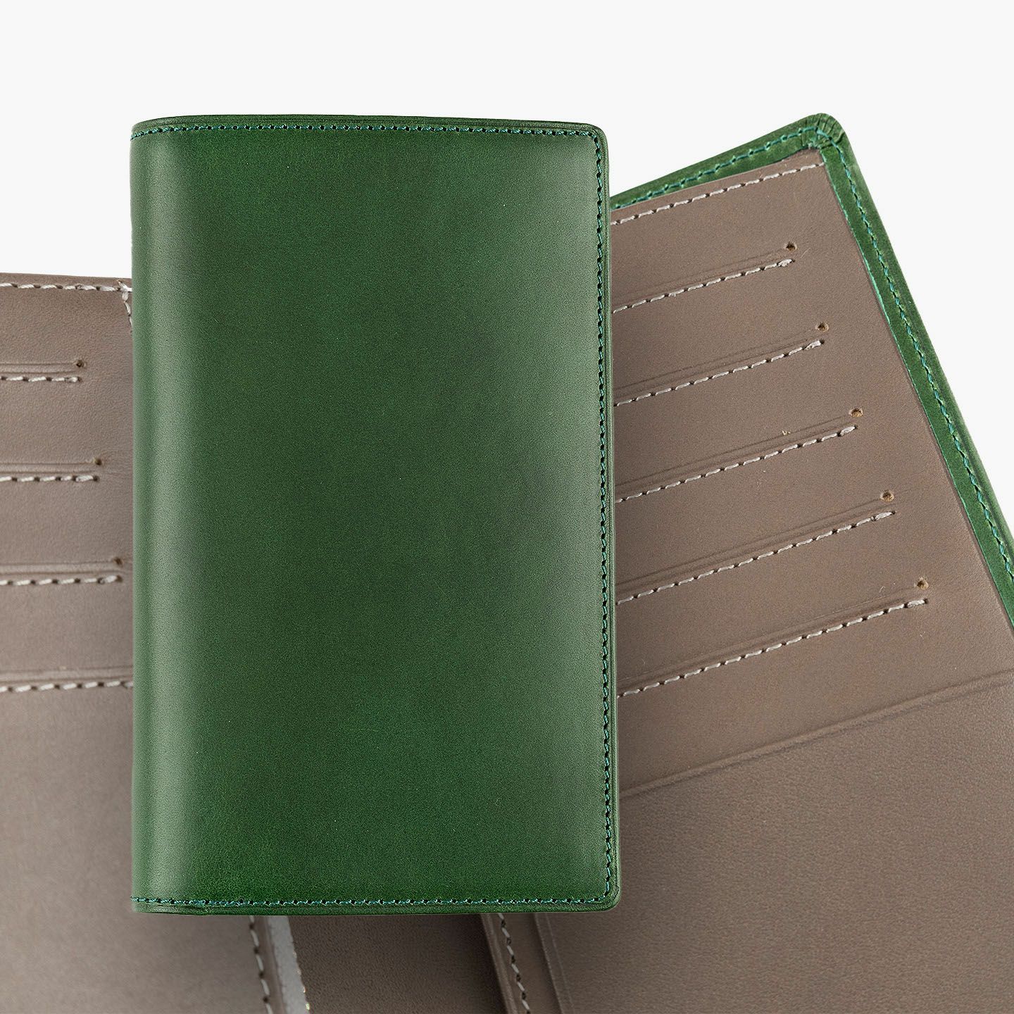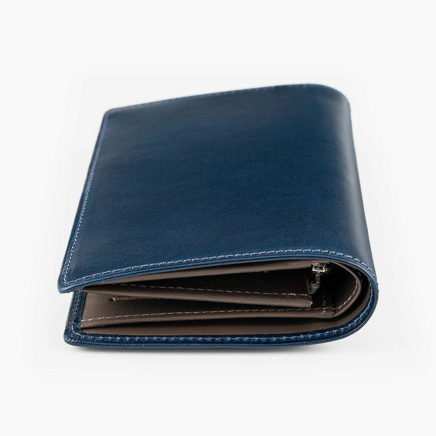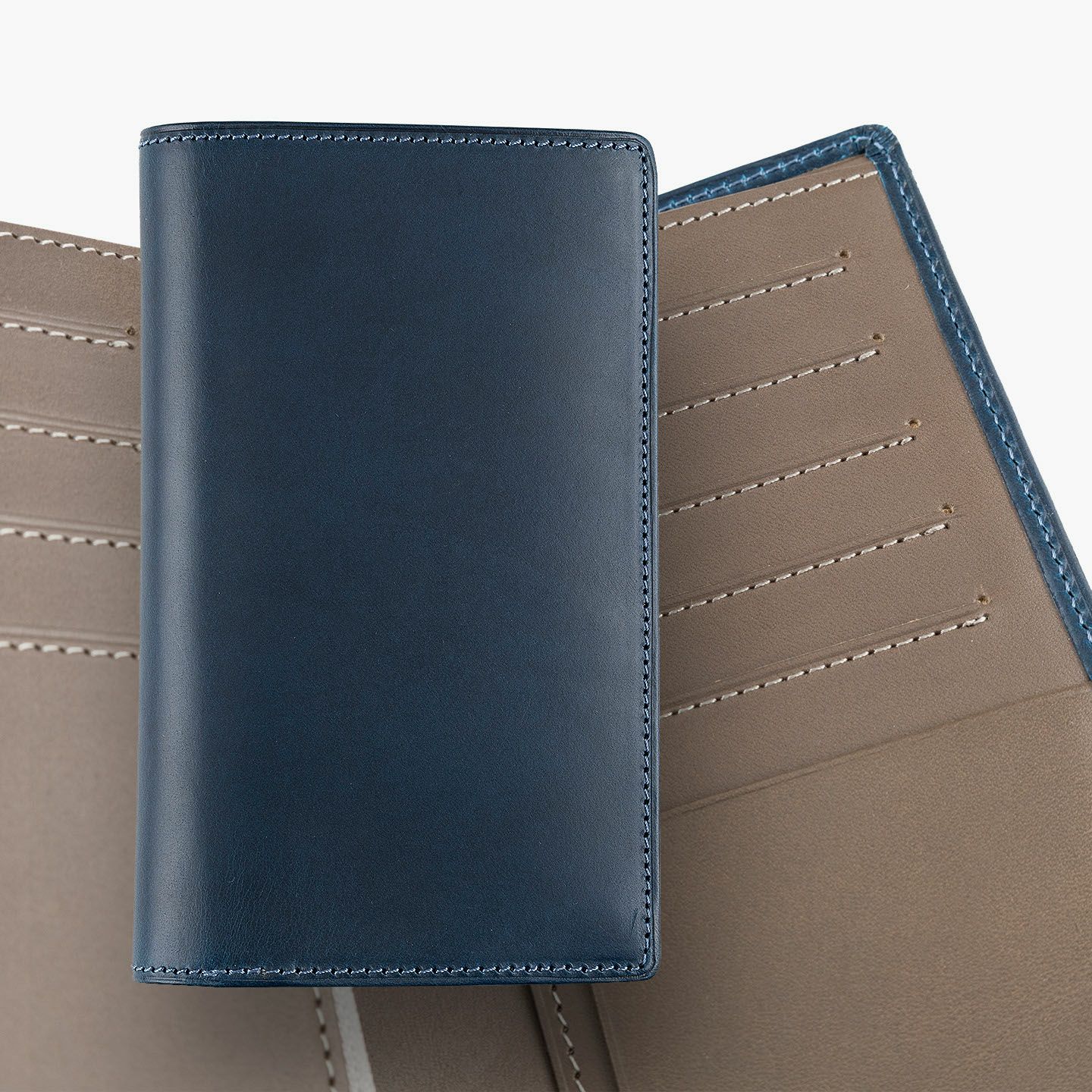 「楽しさ」「楽さ」をコンセプトに、自由で独創的なアイデアを実践し、財布をはじめ革製品の常識を変えていきたいブランド『ASUMEDERU』のミディアムウォレット。パンツのポケットへ絶妙に収まるサイズ感や、手帳や文庫本カバーを想わせるスタイリッシュなデザイン、ICカードの収納に適した切り込みフラップ付きポケットによる外装を、イタリア・ワルビエ社の最高級ヌメ革「ブッテーロ」が、新鮮なツヤ感で引き立てながら魅了。国産牛革「オイルダコタ」のグレーによる内装を、少しL字にさせて使いやすいファスナーポケットが、印象的なステッチラインとともにアクセントになり、感性あふれる大人感を創出してくれる。