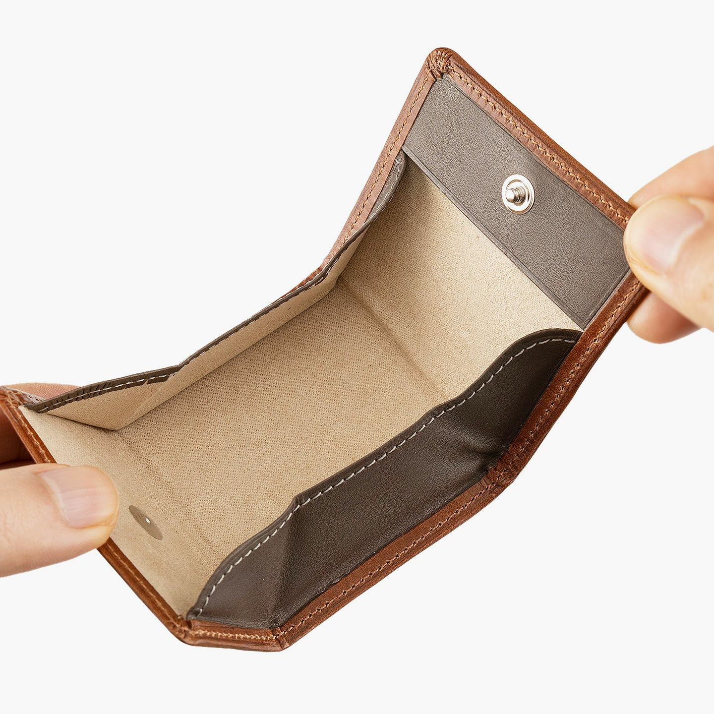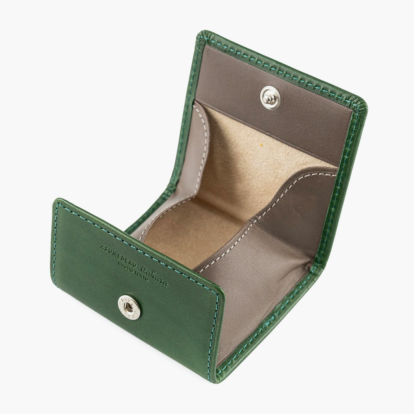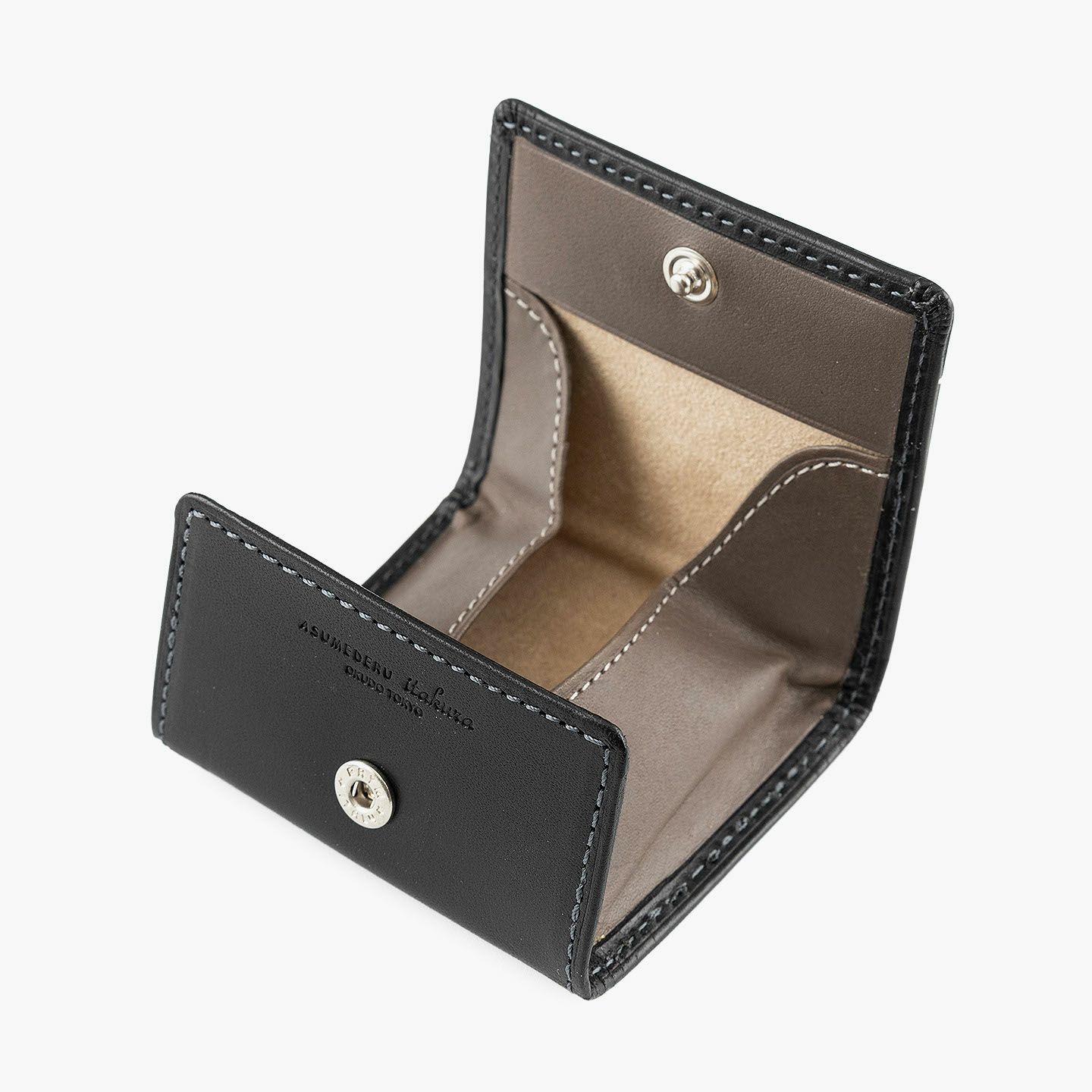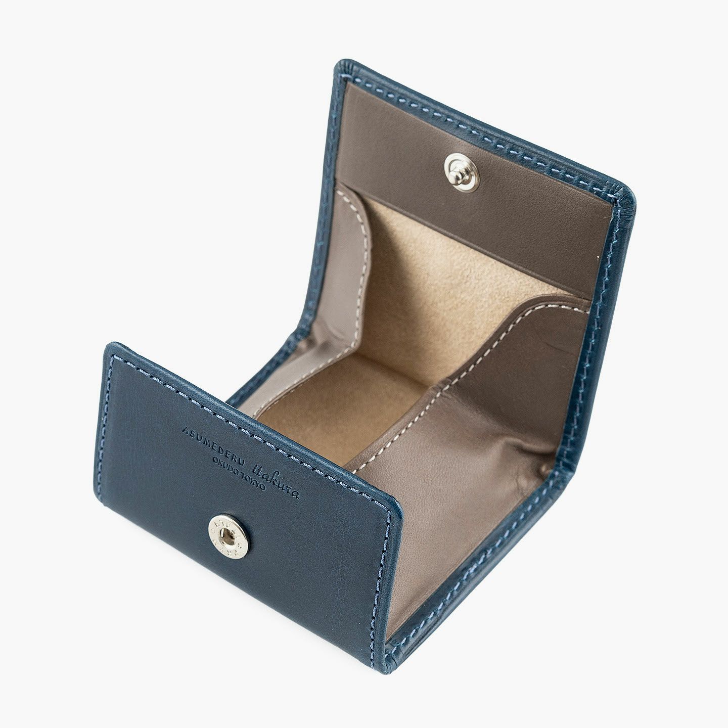 挑戦し続けるという想いや技術・感性を注ぎ込みながら試行錯誤を重ね、40年以上も財布を作り続けている革製品ブランド『ASUMEDERU』のコインケース。収納物の出し入れしやすさを徹底的に追求したボックス型小銭入れは、垂直ではなく斜めに大きく開く舟形の設計にすることで、とても小さいサイズ感ながらマチも倒れず扱いやすい機能美を実現。パンツのサイドポケットにも楽に入れて軽やかに携えられるスマートな外装として、イタリア・ワルビエ社の伝統的な技法による最高級ヌメ革「ブッテーロ」を贅沢に纏わせ、しっかりとした手触りと新鮮なツヤ感による上質感あふれる魅力で、愛らしいフォルムを際立たせてくれる。