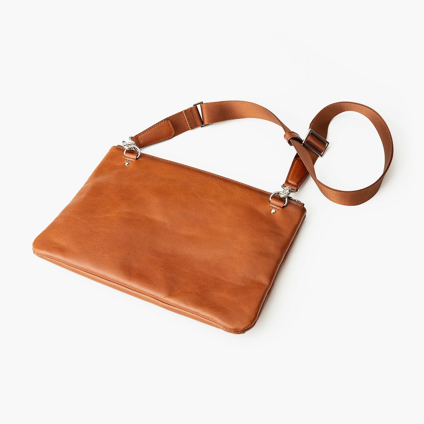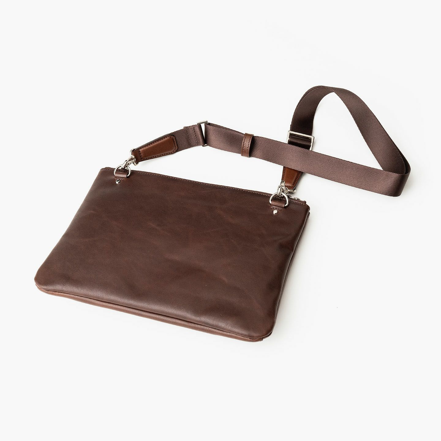 70年にわたる鞄作りで培ってきた技術&ノウハウと、熟知したデザイン&設計アイデアで、独創的な三層収納を叶えさせた2Wayサコッシュ。マチ幅を抑えたスリムなシルエットながら、2つのファスナー収納の間にマグネット付き収納を備えた三層構造で、見た目以上の高い収納力を実現。さらに、ポケット内にも適材適所なポケットを設けることで、自分らしくスマートな区分け収納も。職人の手で1つ1つ吹き付ける希少な特殊加工「シャドウ仕上げ」を施した、外装の「姫路産シュリンクオイルレザー」が1点もののような味わい深いアンティーク感で魅了。ショルダーベルトを取り外せば、クラッチバッグやバッグインバッグとしても活躍し、さまざまなシーンで大人のスタイリッシュさを奏でてくれる。