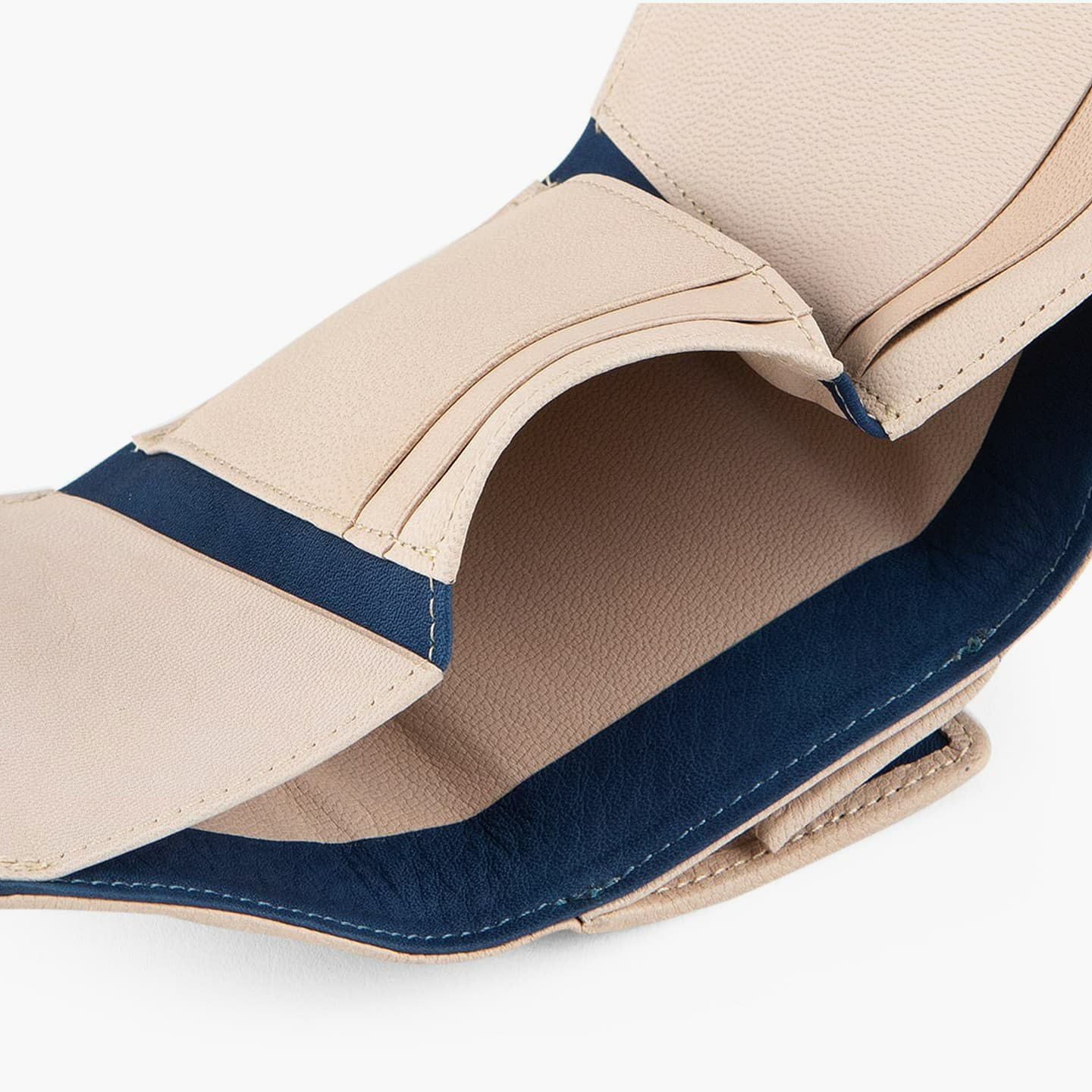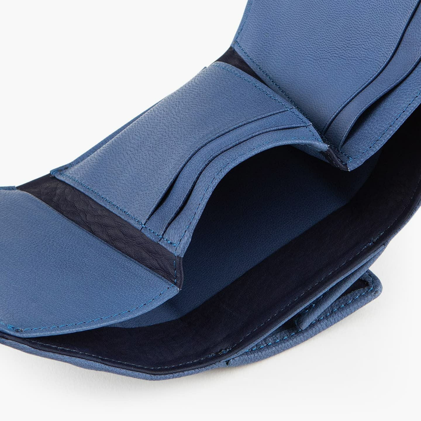 コンパクトな財布を求めながらも、どれも財布としての機能に物足りなさを感じている方のために、『Bluestone®』では財布ならでは機能を残したまま、サイズ感や構造を追求。この三つ折りタイプのコンパクトウォレットには、便利なBOX型の小銭入れをはじめ、札入れ・カードポケットもすべて装備。財布を開いたときに、使用頻度の高いカード類を横並びで確認できる使い勝手の良い設計とともに、周囲から見られたくないカード類や収納物は、カード段の裏に収納できるマルチポケットも設けています。洗練されたユニセックスな美しいデザイン性を実現しながら、快適に使える機能的な収納性も兼ね備えています。