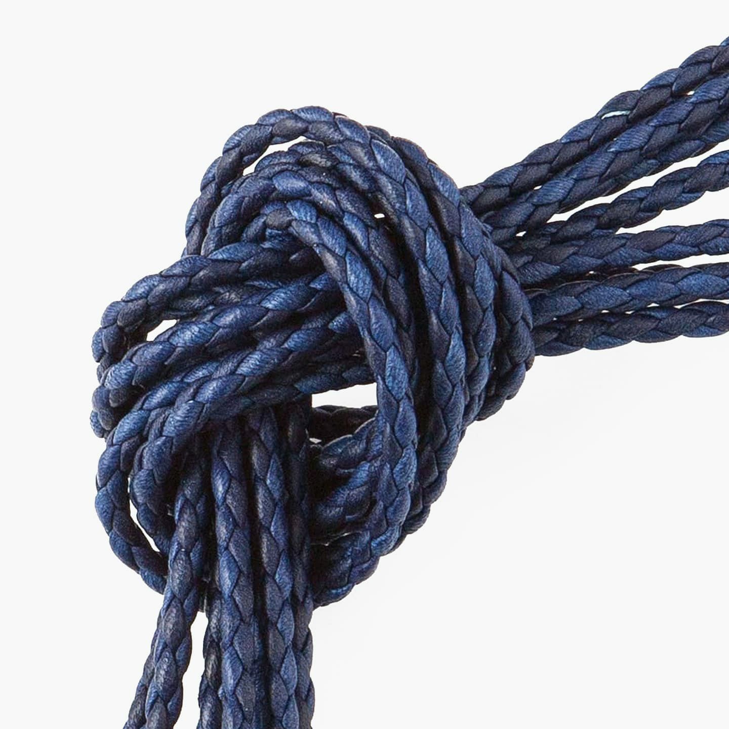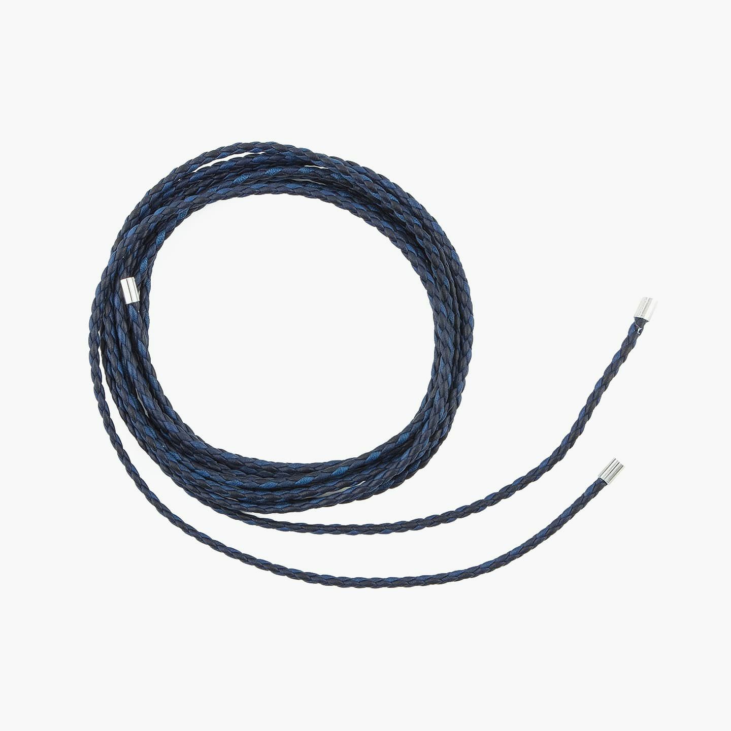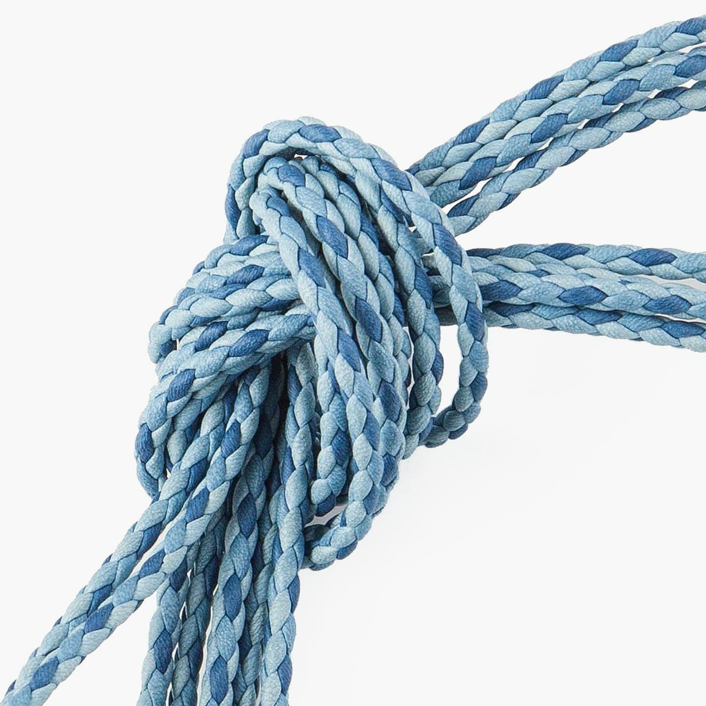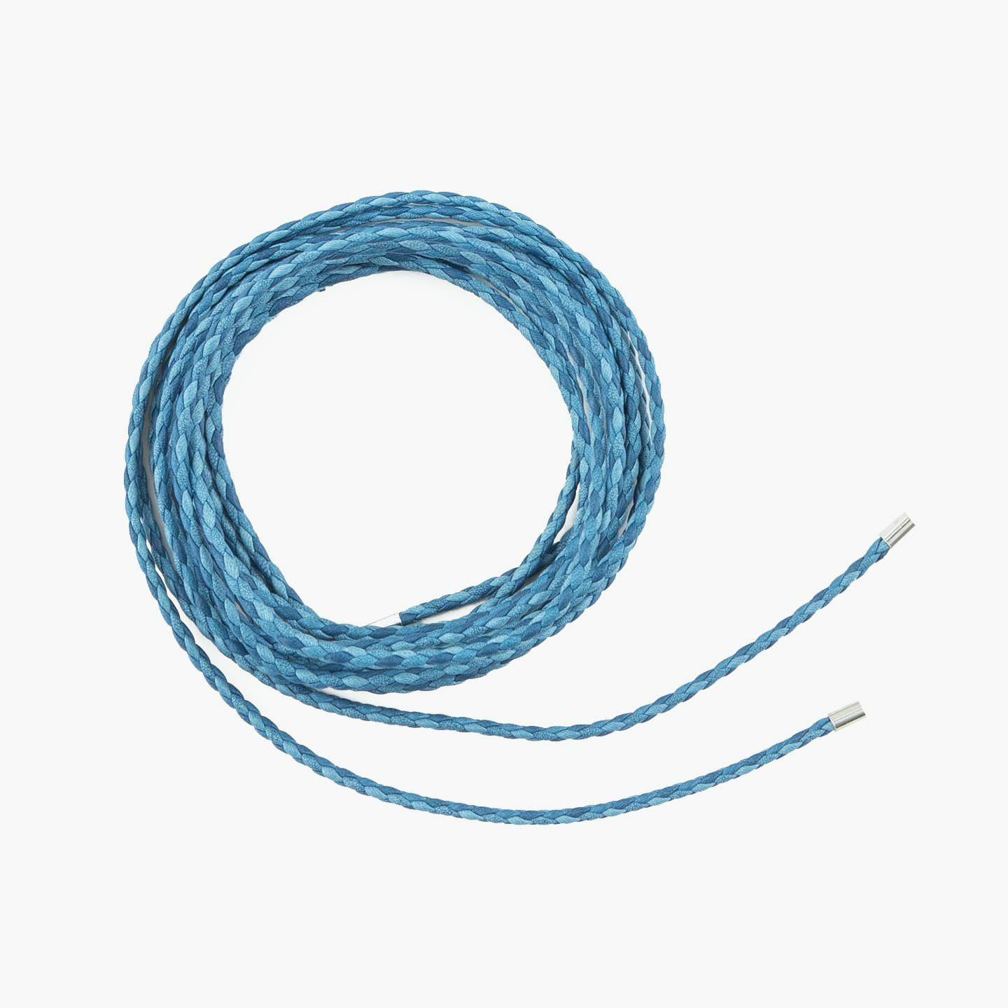 天然色ならではの濃淡の異なる「SUKUMO Leather」4本の革紐が、美しく編み込まれたラウンドシューレース。比類なきブルーの輝きを放つ編み目が、洗練された印象を足元にもたらしてくれます。