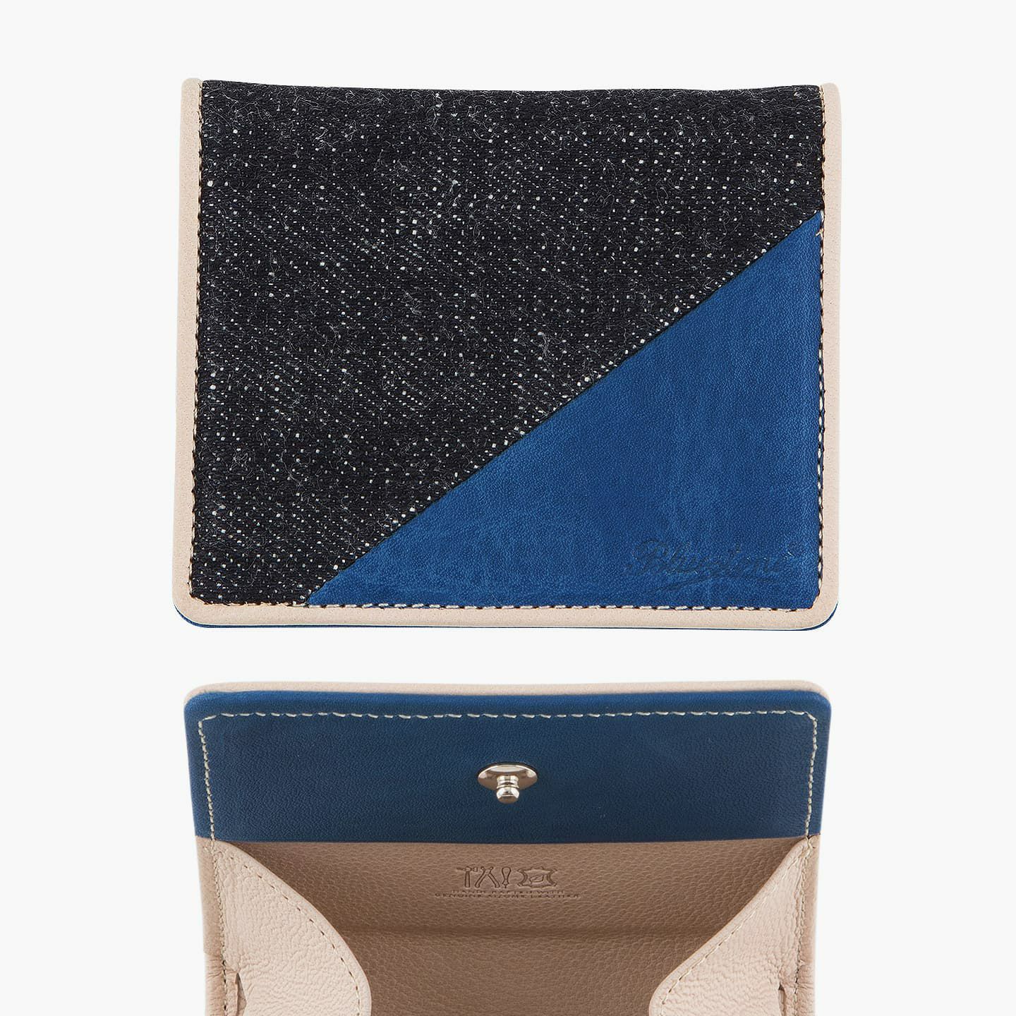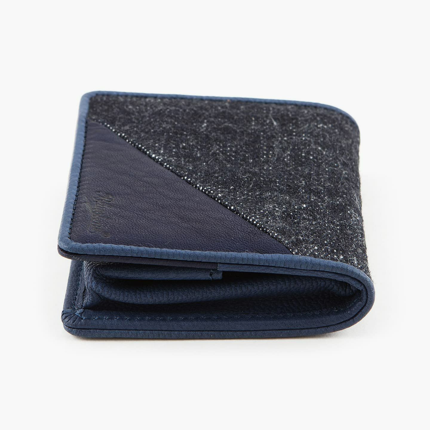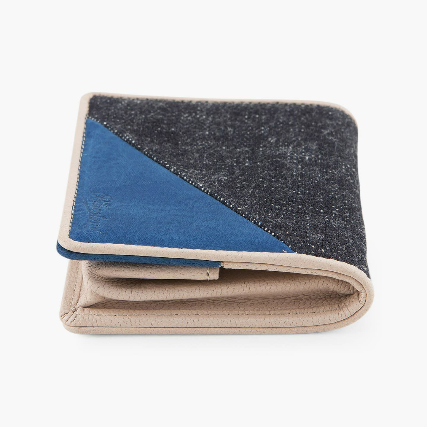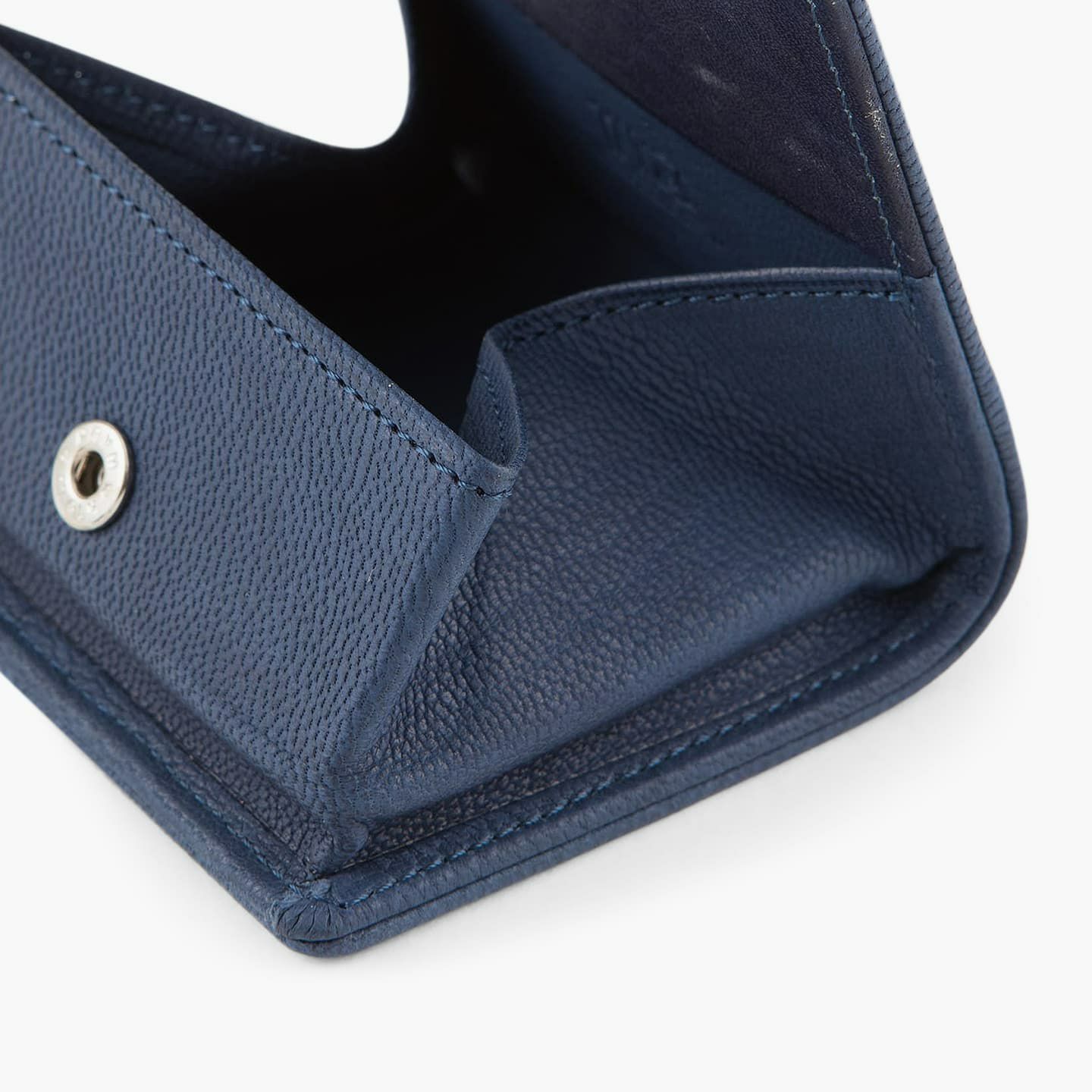 財布の内外ともに素材感があり、デザインの統一性も重視するため、あえてヌバックゴート革の銀面ではない裏面を使用。エイジングにより、手の脂などが染み込み、使うごとに自然なツヤが楽しめます。山羊革自体は、個性的な凹凸をしたシボと、独特な毛穴の形状が特長。薄くても丈夫で、型崩れしにくい特性があるため、高級レザー手袋やブランドのレザーシューズに使われることが多い素材です。また、しなやかで耐久性にも優れているので、身に付けるものやジャケットなどにも多く利用。アメリカ空軍がA-10フライトフローブ、アメリカ海軍がフライトジャケット(M-422)に使っていたことでも知られています。