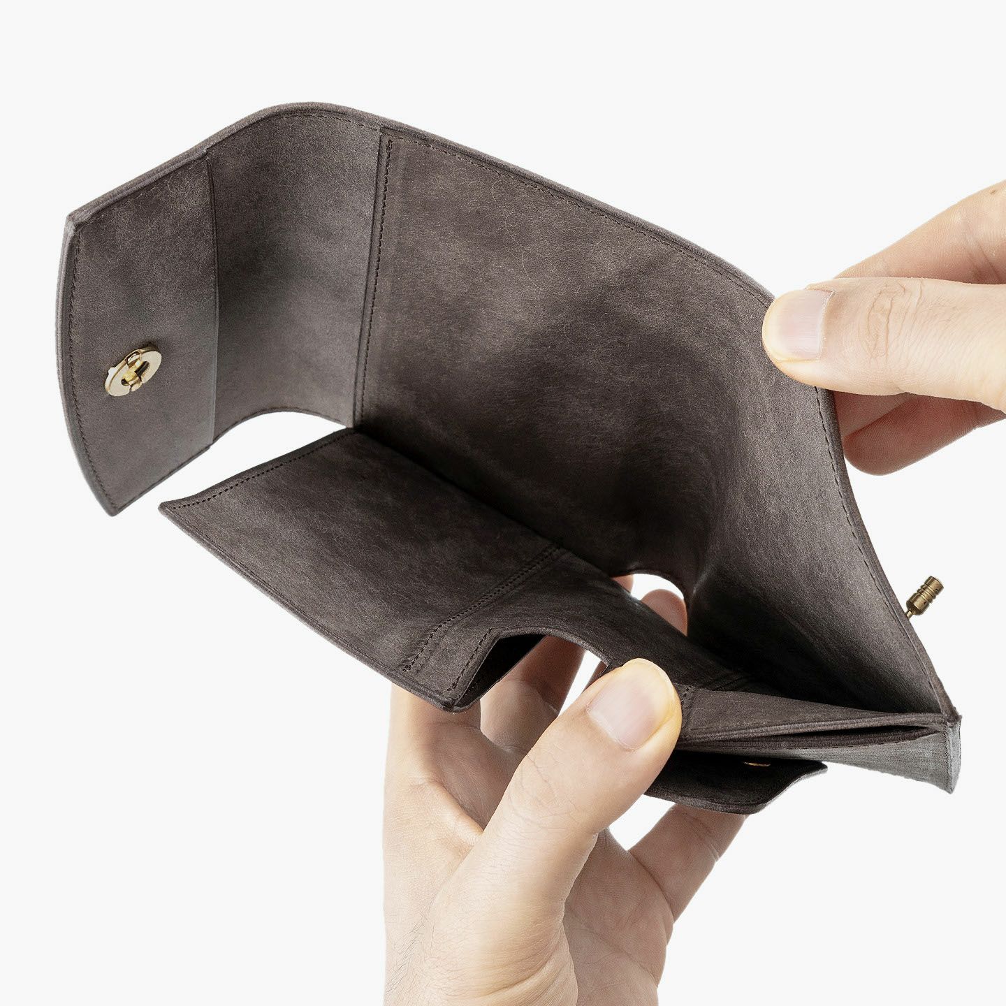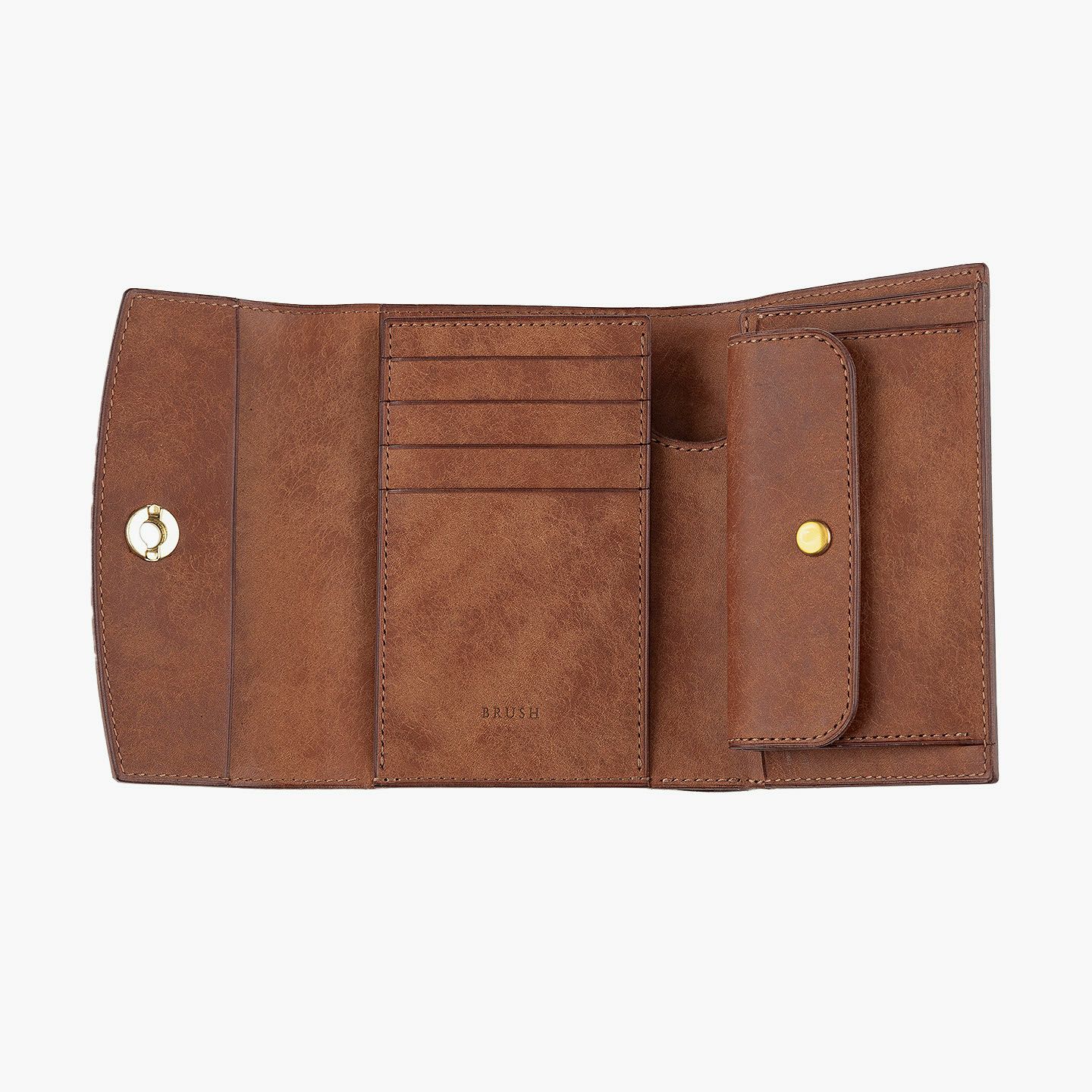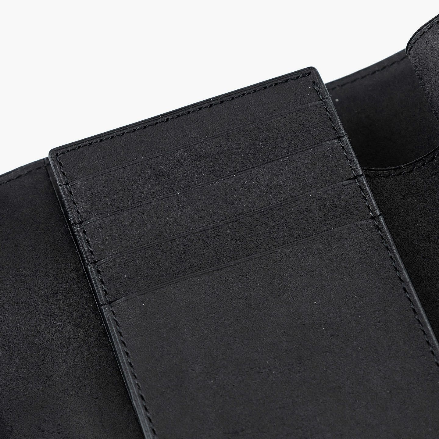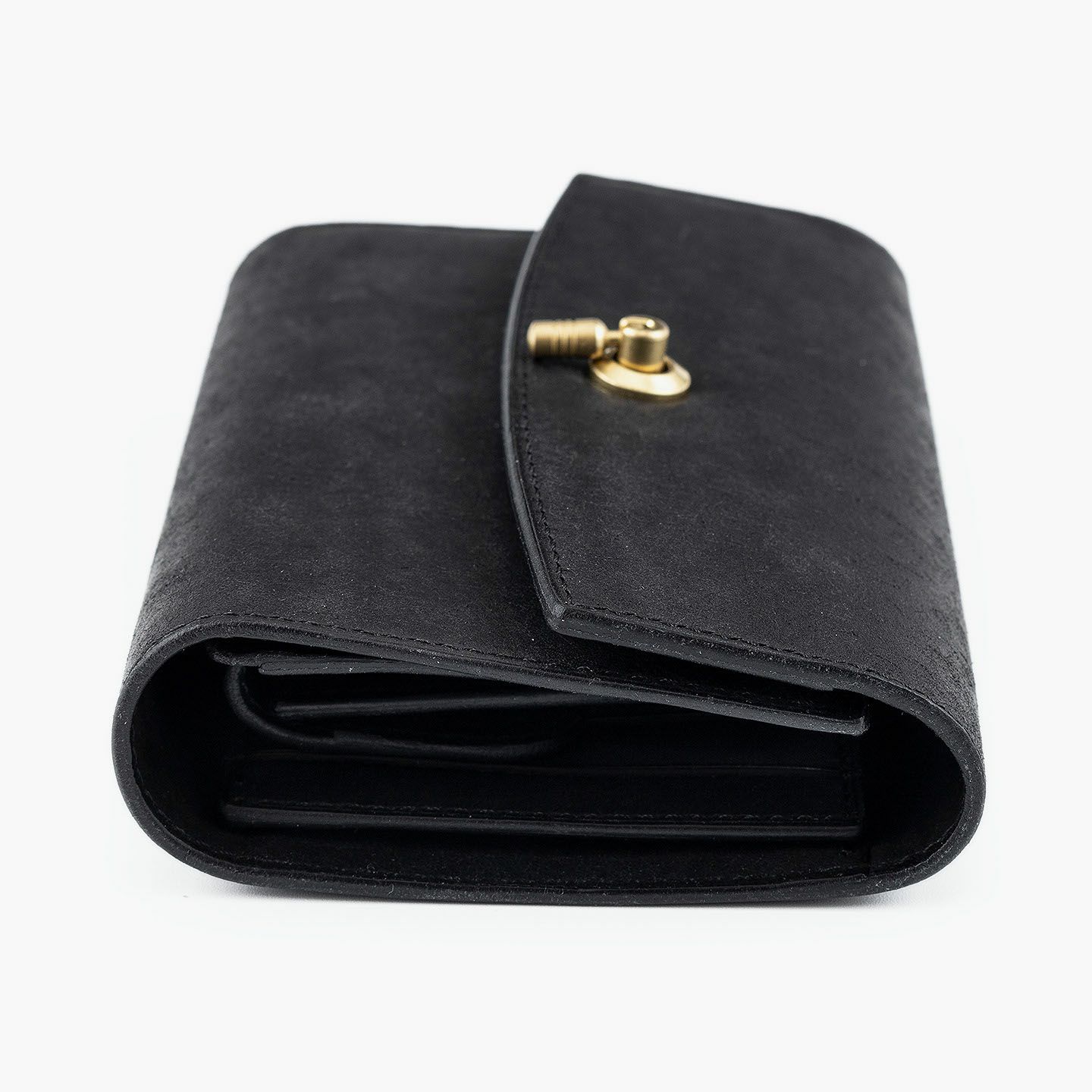 日本の工場にて真鍮の塊を削り出して成型しているフロントのオコシ金具は、丈夫で壊れにくく開閉時の重圧感・本物感も醸し出す挽物。イタリア産レザー「マルゴー」は、MLS別注カラー「Moss Green」とブランドラインナップ3色による、計4色からのセレクトオーダーが可能です。片側をあえて縫い付けていない札ばさみは、大きく開く視認性の良さに加えて、親指を掛けられるU字の窪みを設けることで扱いやすく、窪みの深さも女性の手のサイズに合わせた設計になっているのも魅力。さらに、収納性に優れたコインポケットとともに、カードポケット4つを備えたカード段、そのカード段の裏とコインポケットの裏にフリーポケット1つずつを装備し、充実した収納力も兼ね備えています。