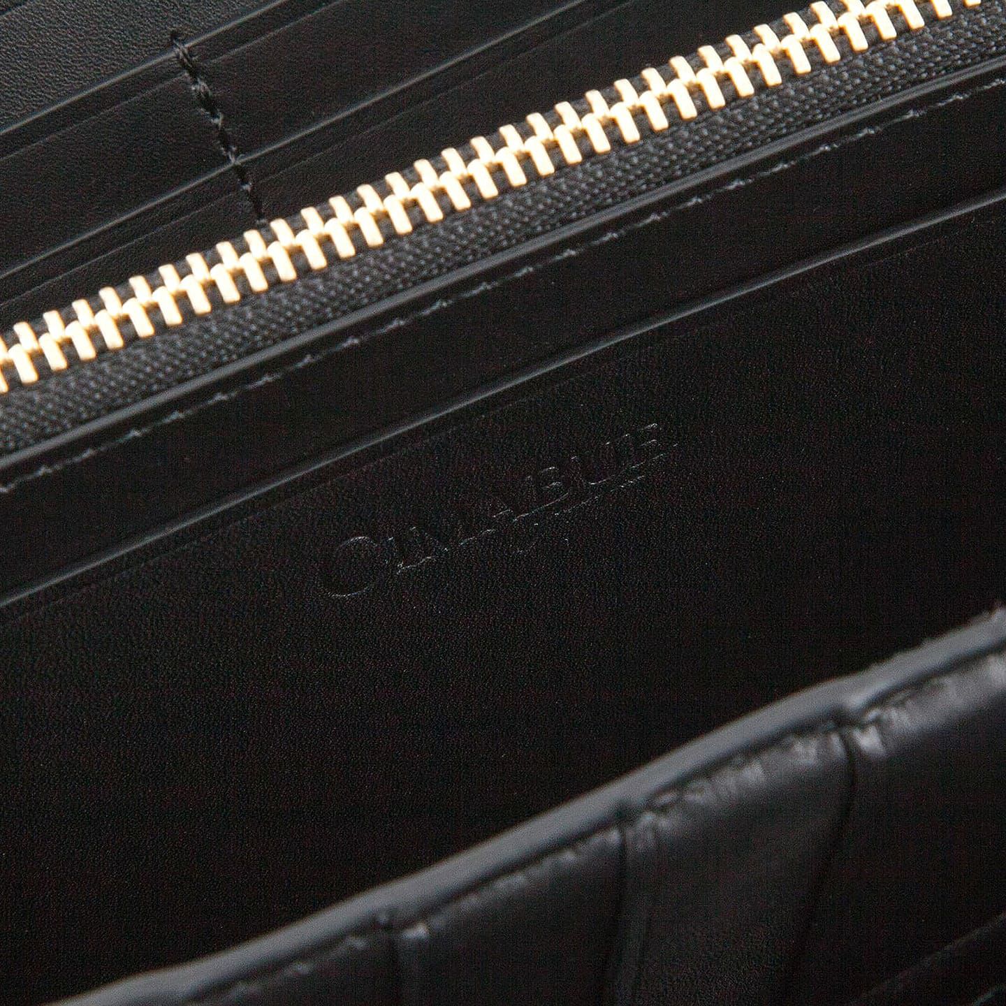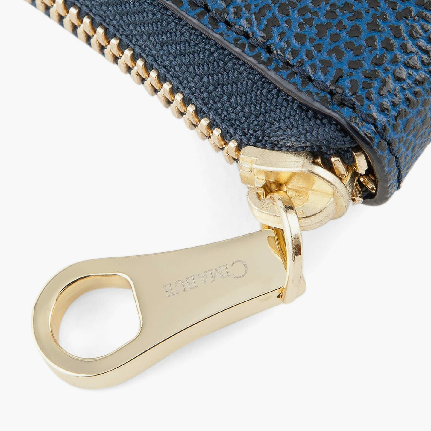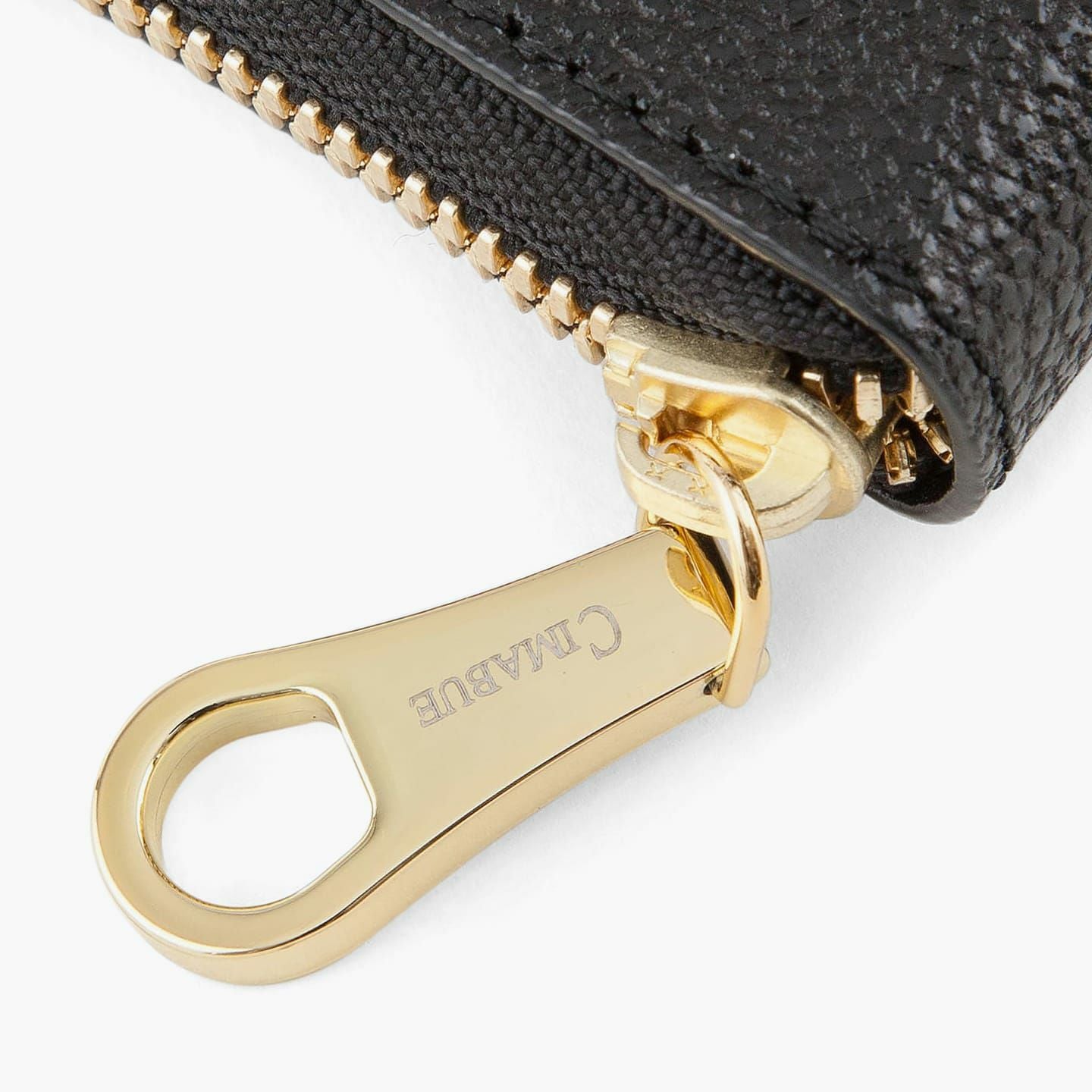 外部のファスナーには、高級感と重厚感のあるゴールドで、指で摘みやすいフォルムのオリジナル引き手を装備。滑らかな曲線を美しく魅せるポリッシュ仕上げで、『CIMABUE』ロゴをサンドブラスト加工で上品に刻印。