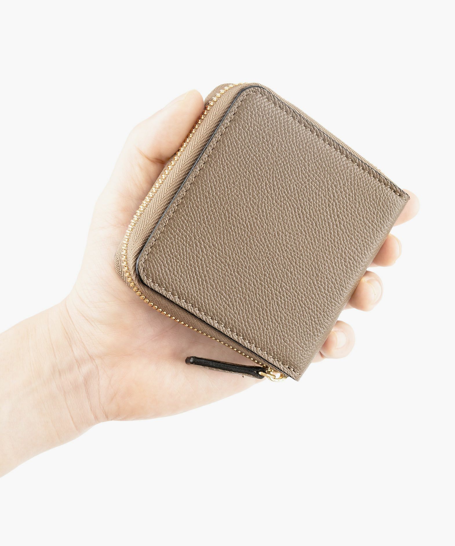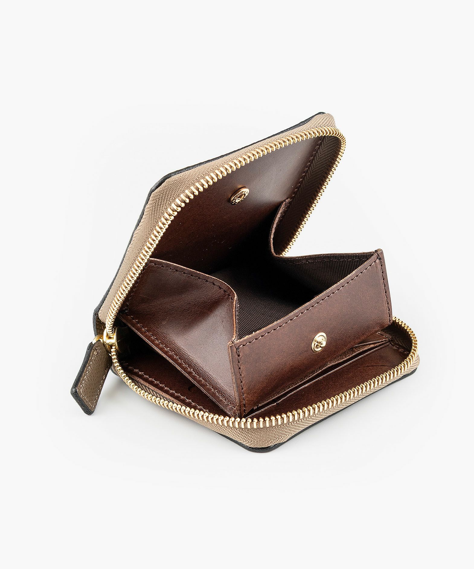 イタリア語で“小さな立方体”を意味する品名のように、厚みを生かした立体的フォルムが特長的で、見た目以上の収納力を実現した、ラウンドジップミニ財布“Cubetto”。ドイツ・ワインハイム社の高級仔牛革「ワープロラックス」の外装は、光沢と陰影が織りなす表情が印象的で、イタリア・ワルビエ社の最高級ヌメ革「ブッテーロ」を内装は、革らしい素朴な風合いが魅力。紙幣を挟み込むように収納できるU字型の札入れや、出し入れしやすいBOX型コインポケット、厚くならずに収まるマチ付きメインカードポケット&背面カードポケット、鍵収納用のスリットまで備え、日常の持ち歩きたいものをしっかり収納。コンパクトながら使いやすさを美しくまとめたバランス設計と、洗練されたジェンダーレスなデザインが、大人の身軽な使いこなしを演出してくれる。