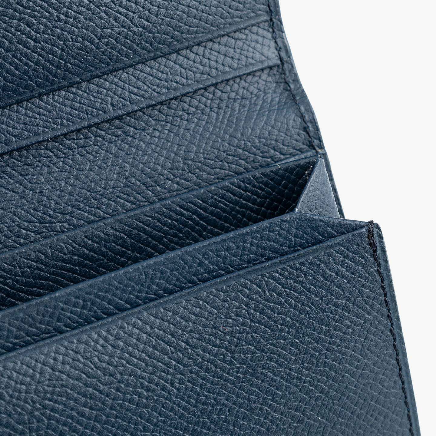 日本独特の高度な伝統技法である風琴マチを、2つ重ねた山型(シェブロン)のデザインが、アイテムの象徴になっているシェブロンカードケース。シンプルな装いの外装とエレガントな佇まいの内装には、小石模様の陰影を想わせる細かな型押しが施された、フランス・アース社製の「ダービー」を採用。ヨーロッパの有名老舗メゾンにも人気がある素材で、マットな表情でハリ感もあり、小キズ・汚れが目立ちにくく水分に強いのも魅力。名刺の端が折れる心配のない、アコーディオンの蛇腹のような独特の意匠と、美しい発色が醸し出す上質な高級感が、ひとつ上の大人のアイテムとして、ビジネスシーンなどをハイセンスに彩ってくれる。