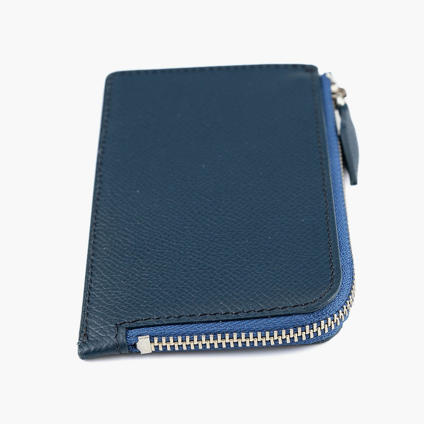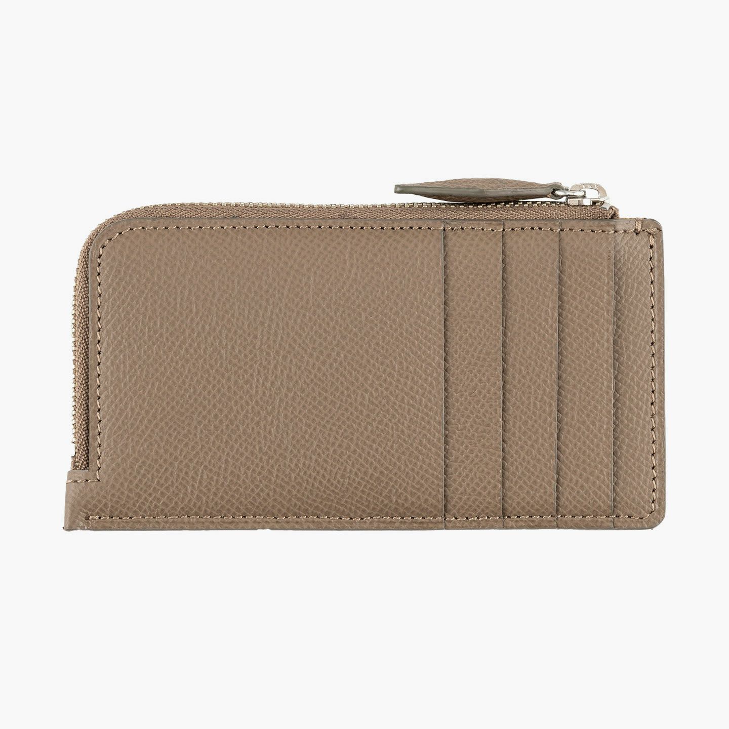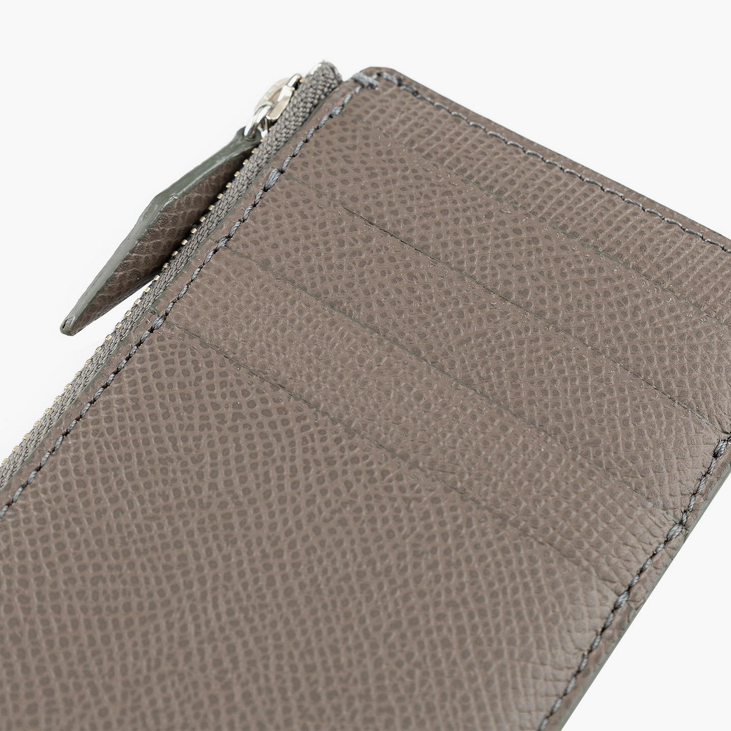 ヨーロッパの有名老舗メゾンにも人気がある、フランス・アース社製の「ダービー」を、外装として纏ったフラグメントケース。宝石のロゼンジカットを模した引き手にも、同じマテリアルを象徴的にあしらい小粋なアクセントに。細かな型押しのマットな表情が、小石模様の陰影を想わせる美しさとともに、小キズ・水分への強さと堅牢さで、ラフに扱える気楽さも魅力。スーツのポケットやバッグのなかに入れてもかさばらないスリムなフォルムと、カード・小銭・紙幣(三つ折り)を収納できる使いやすいサイズ感が、普段使いを楽しくしてくれるアイテムへ。気持ちを上げてくれるスタイリッシュな佇まいが、心に彩りをもたしてくれる。