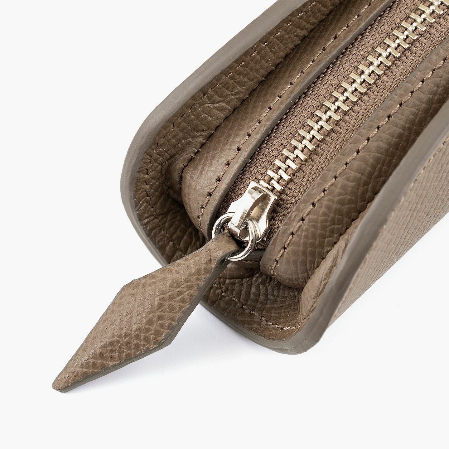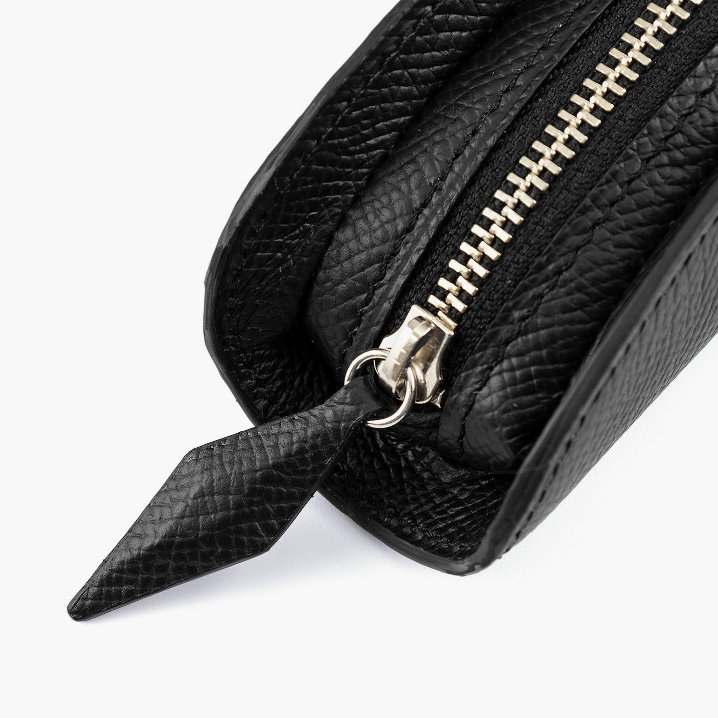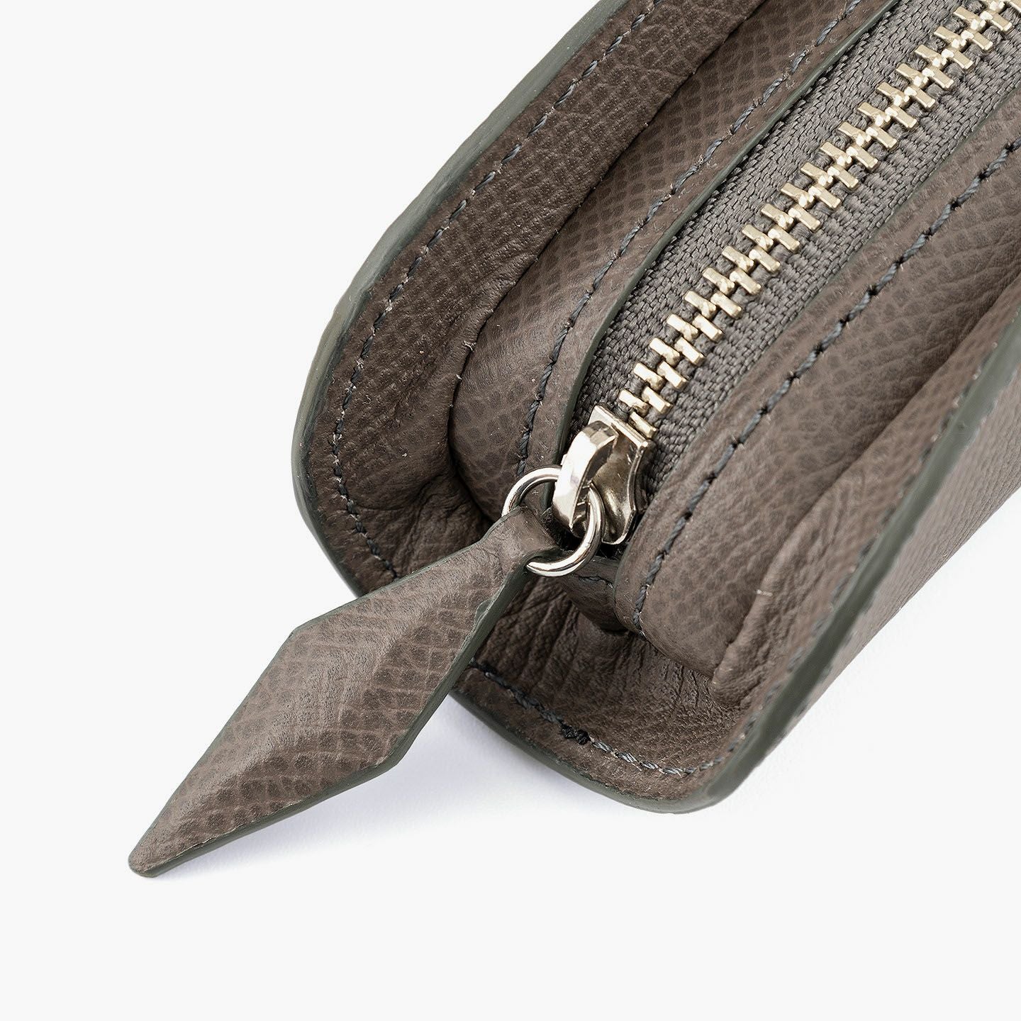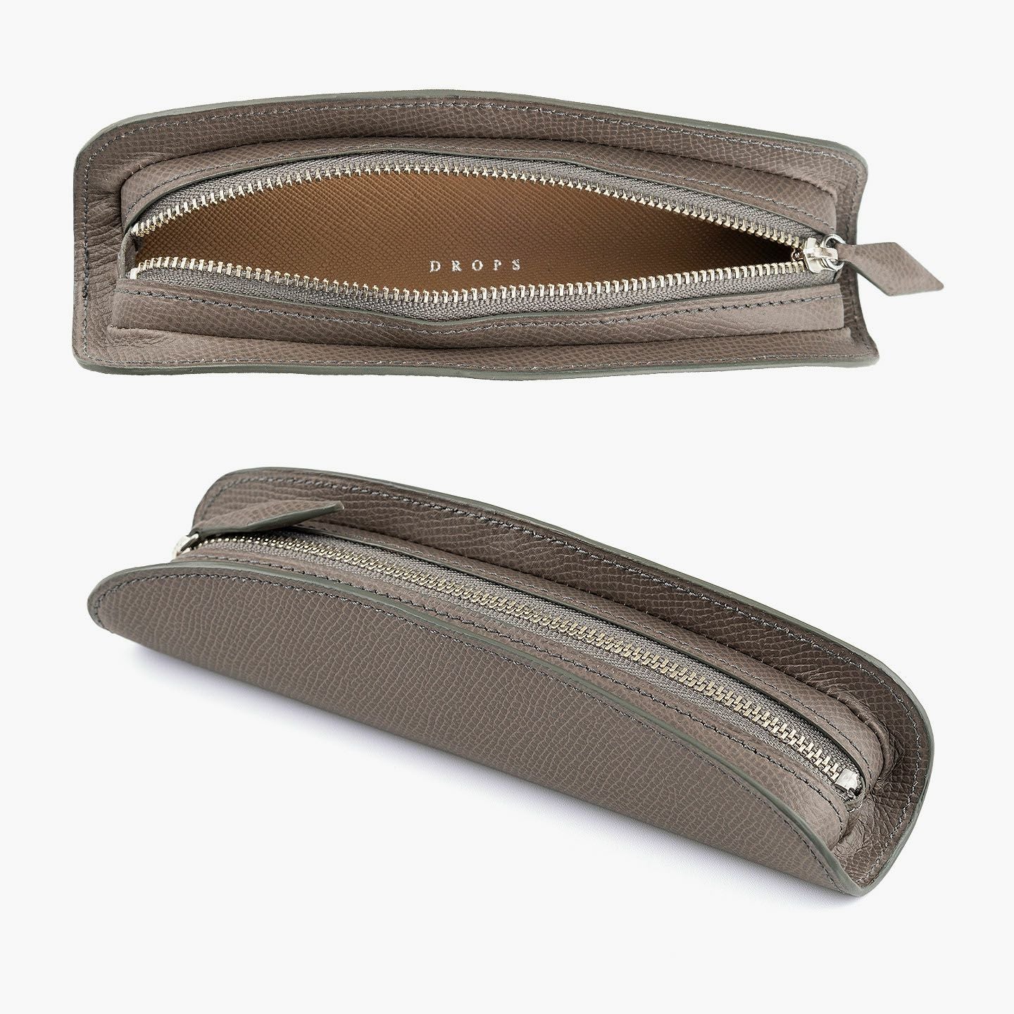 小石模様の陰影を想わせる美しさで、ヨーロッパの有名老舗メゾンにも人気がある、フランス・アース社製の「ダービー」を外装として纏わせた、贅沢なペンケース。宝石のロゼンジカットをモチーフにした引き手を、同じマテリアルであしらいながら、エレガントなアクセントとしてアイテムの象徴に。さらに、細かな型押しが施されたマットな表情で、小キズや汚れも目立ちにくく、水分に強くて堅牢さも備えているので、デイリーユースにも最適。洒落感あふれる飽きのこないデザインと、センターにあるファスナーを包むように丸みを帯びた愛らしいフォルムが、高級な筆記用具・筆入れとして大人のステータスを引き上げてくれる。