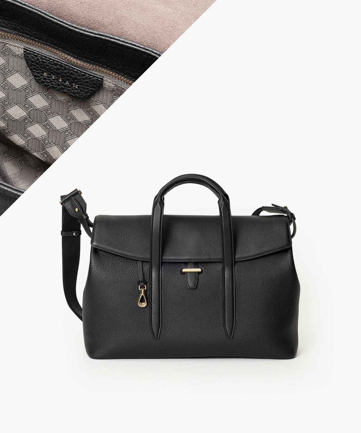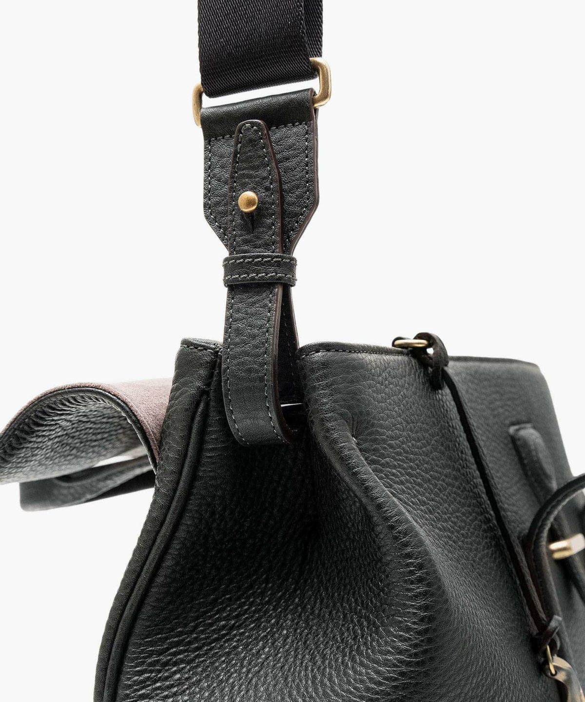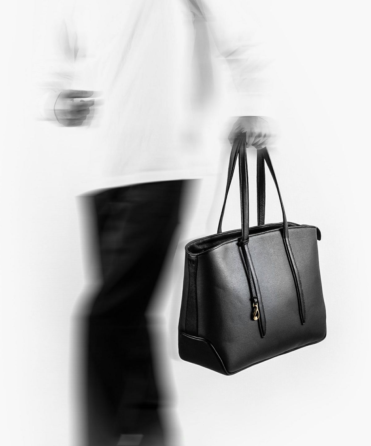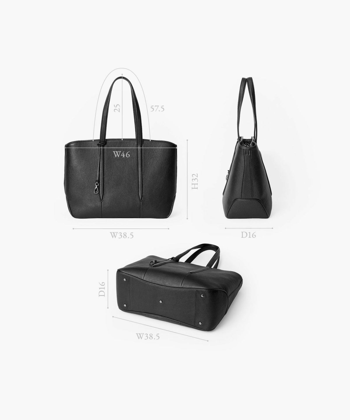 ディープブラック キャンバス ファスナートートバッグ(L)“Flexi”