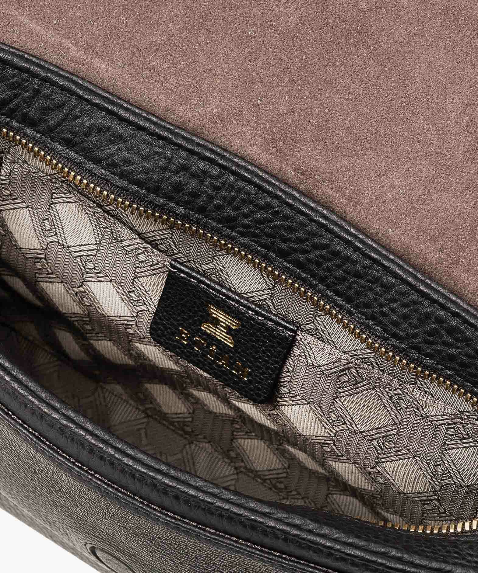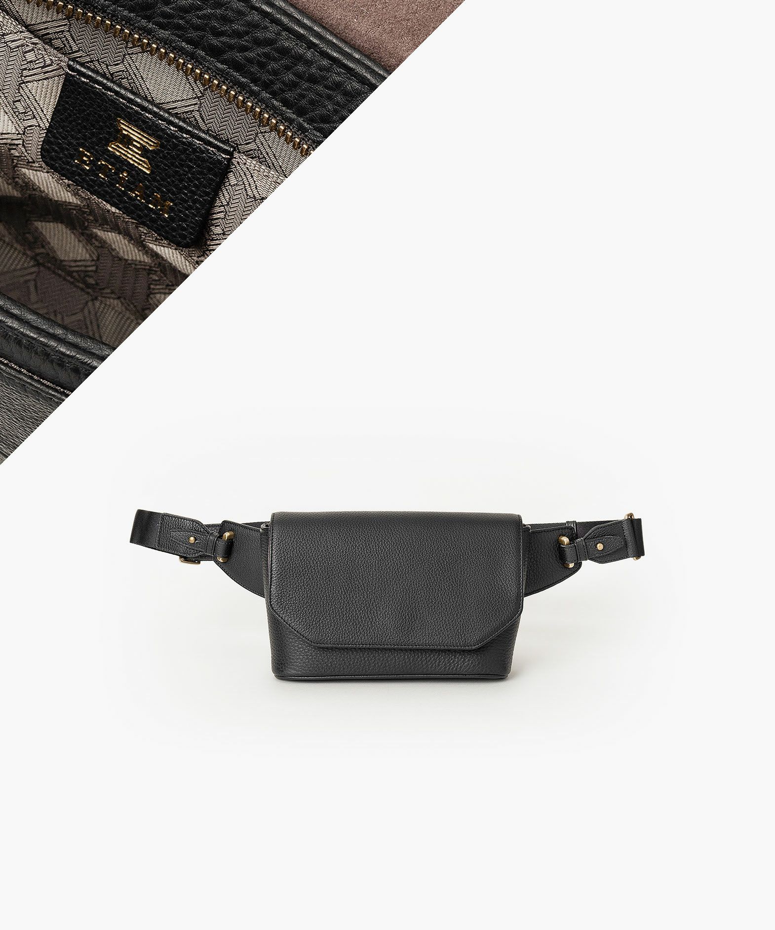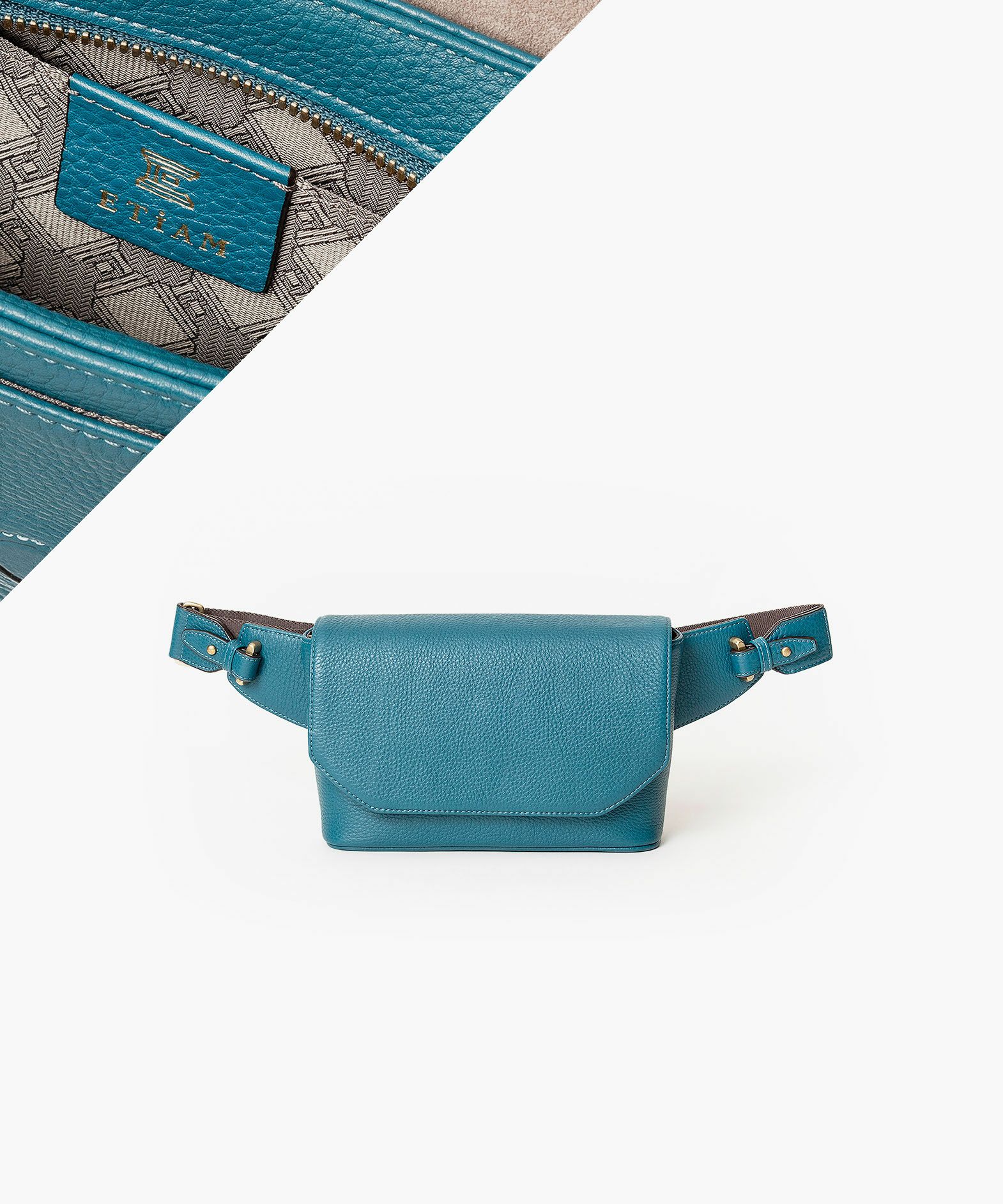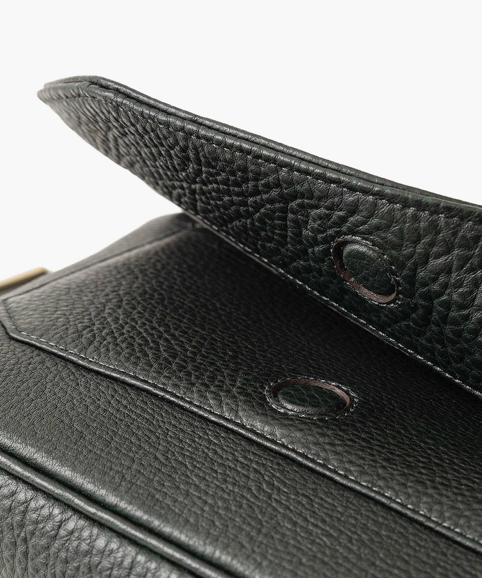 クラシックなデザインのフラップは、マグネット式で簡単に開け閉めができ、天ファスナーを設けて荷物の落下も防止。フラップで隠れている前面には、素早く出し入れしたいパスケースなどを入れられるフリーポケットを装備し、背面に設けたファスナーポケットは、革で覆った柔らかいコイルファスナーで洋服などにダメージを与えず、チケットなどの貴重なものを収納するのに最適です。また、背面と底面の間の繋ぎ目をなくした設計で、肩掛け時に体あたりがソフトになるように配慮。さらに、コーディネートを左右するショルダーベルトは、シルクのように上品な中空糸ナイロンテープを採用して、コートやジャケットにも合わせられるなど、軽量な機能性とともに見た目にもこだわっています。