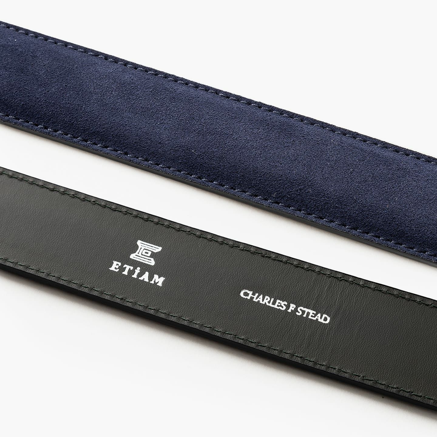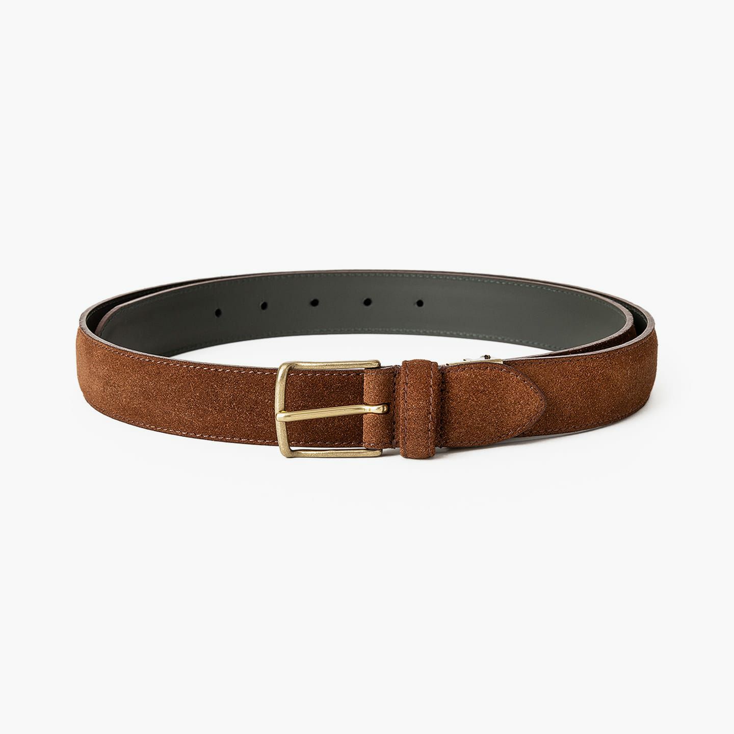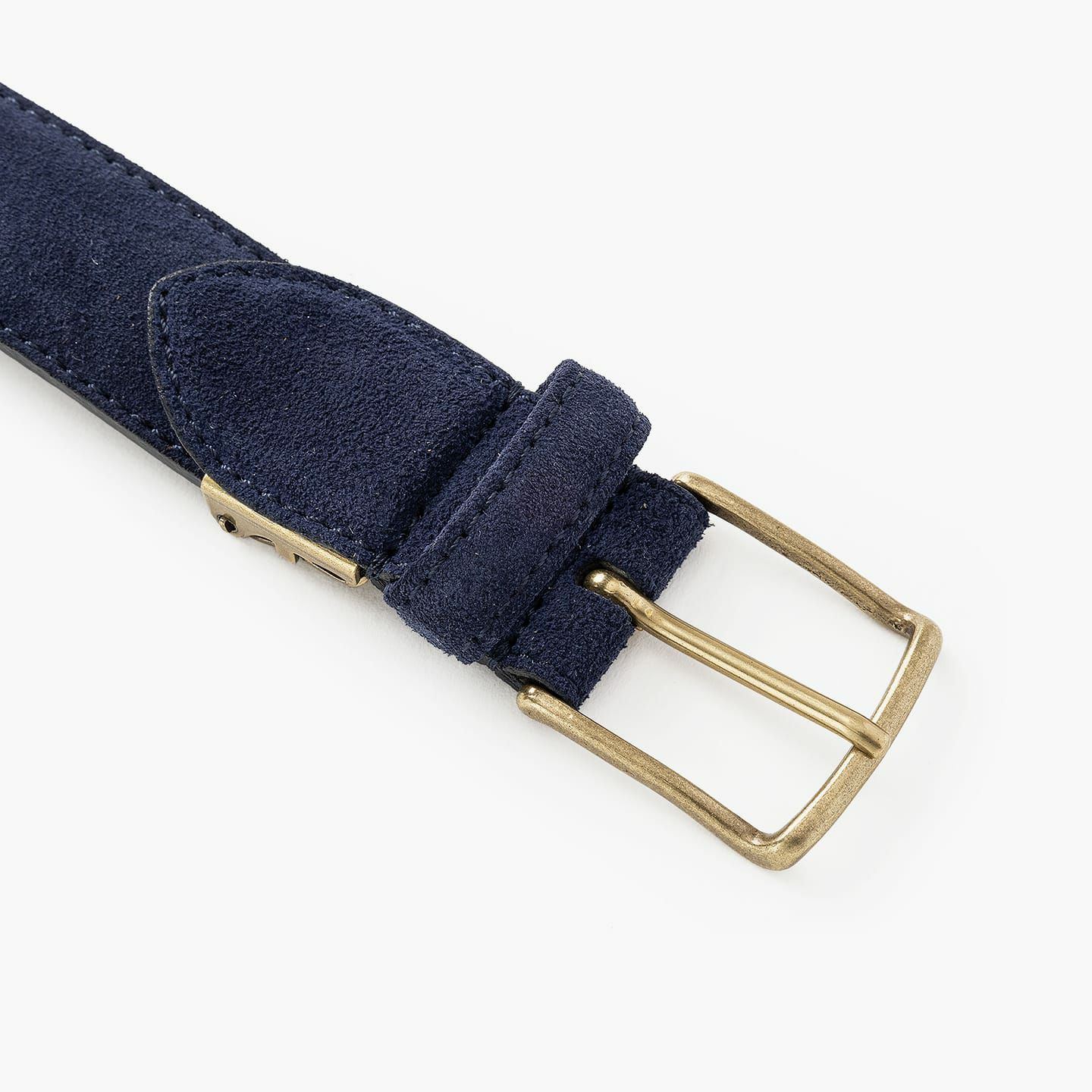 剣先の形状は、定番のV字をベースにしたモダンなデザインを採用。スエード革のコバをきめ細やかに仕上げるために、通常の2倍の時間を費やして、熟練の職人が丁寧に磨き上げています。また、ゴールドメッキを施した真鍮製のバックルが、動かずに安定させるために、バックルのすぐ脇を縫えるハンドステッチにしたり、その他の部分を縫っているミシン針も、15本ごとに交換したりなど、職人のこだわりが凝縮。さらに、パンツ側には堅牢性・耐久性が高い牛革を採用し、色落ちしにくい仕上げを施すなど、工程や細部のクオリティも追求しています。