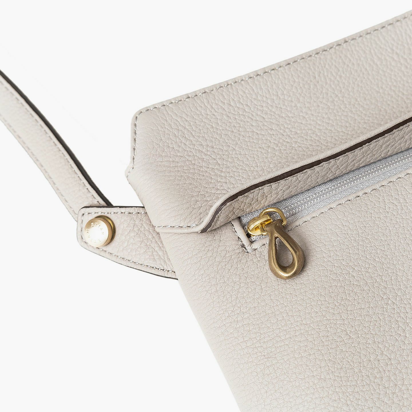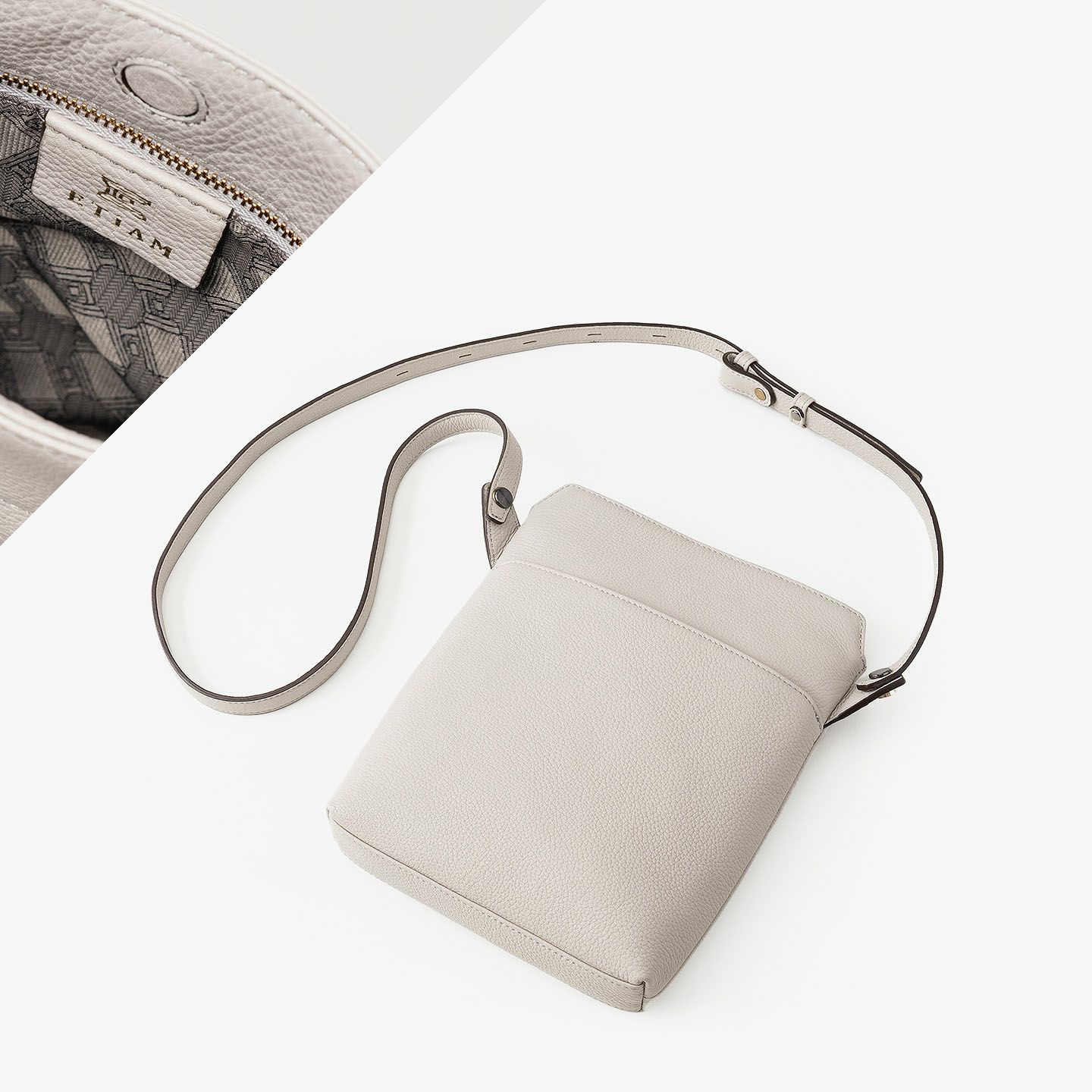 コーディネートを追求した流線形の立体的なデザインが、持ち歩く人たちのスタイリングを際立たせる、バッグブランド『ETiAM』の縦型ショルダーパック“Grace”。マグネット式のメインポケットをワンアクションで開閉して、バッグを見ずに出し入れできる利便性と、体に寄り添う程よいサイズ感ながら、しっかりと長財布を入れられる収納性が、ポケット感覚で優美に使いこなせる機能性へと昇華。シボ感が魅力的な外装「シュリンクレザー」から、ちらっと見えるオリジナル「真鍮金具」によるチャームの佇まいが、細めのショルダーベルトやカフスボタンのような接続金具とともに、さり気ない存在感でエレガントな印象を演出してくれます。