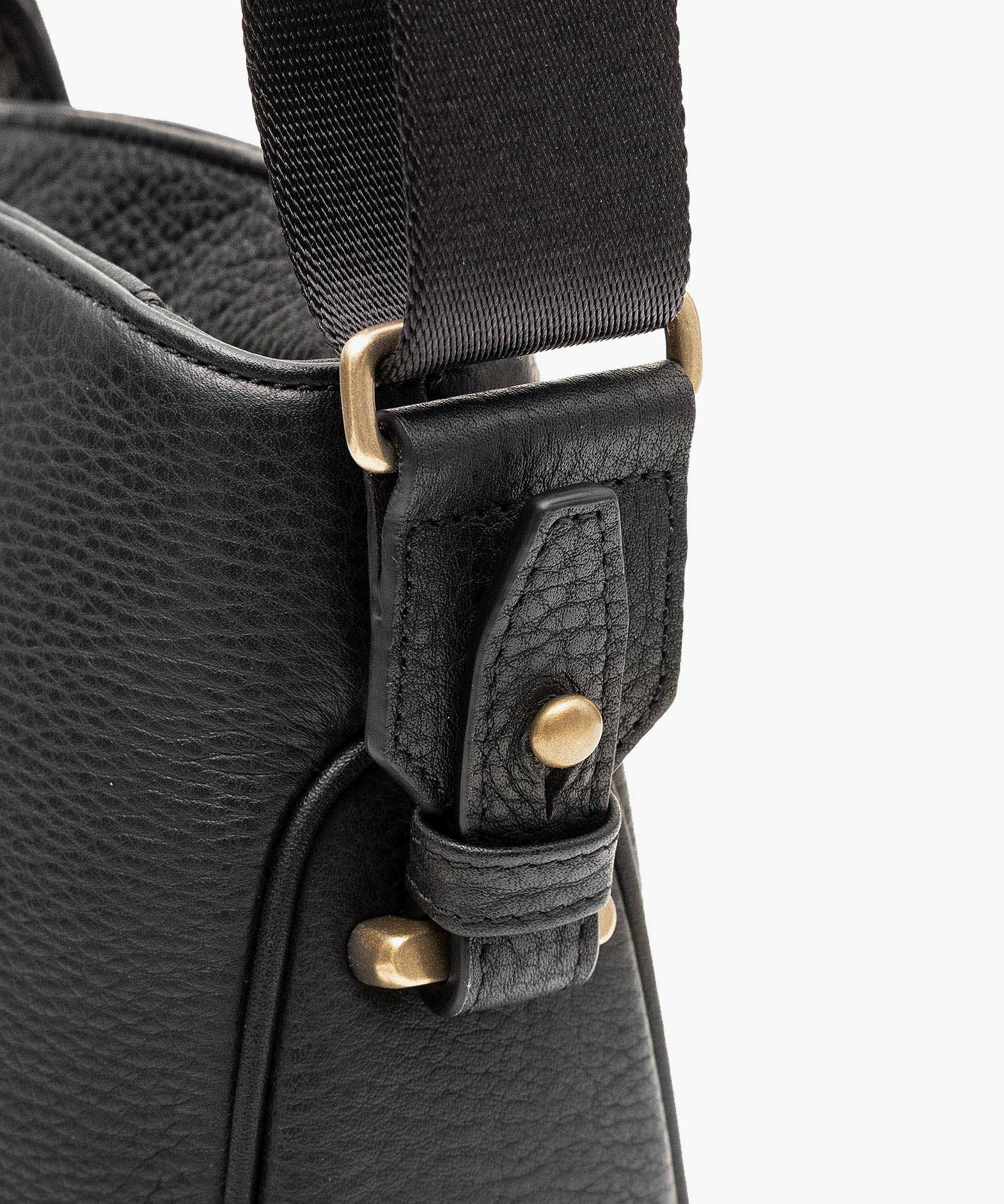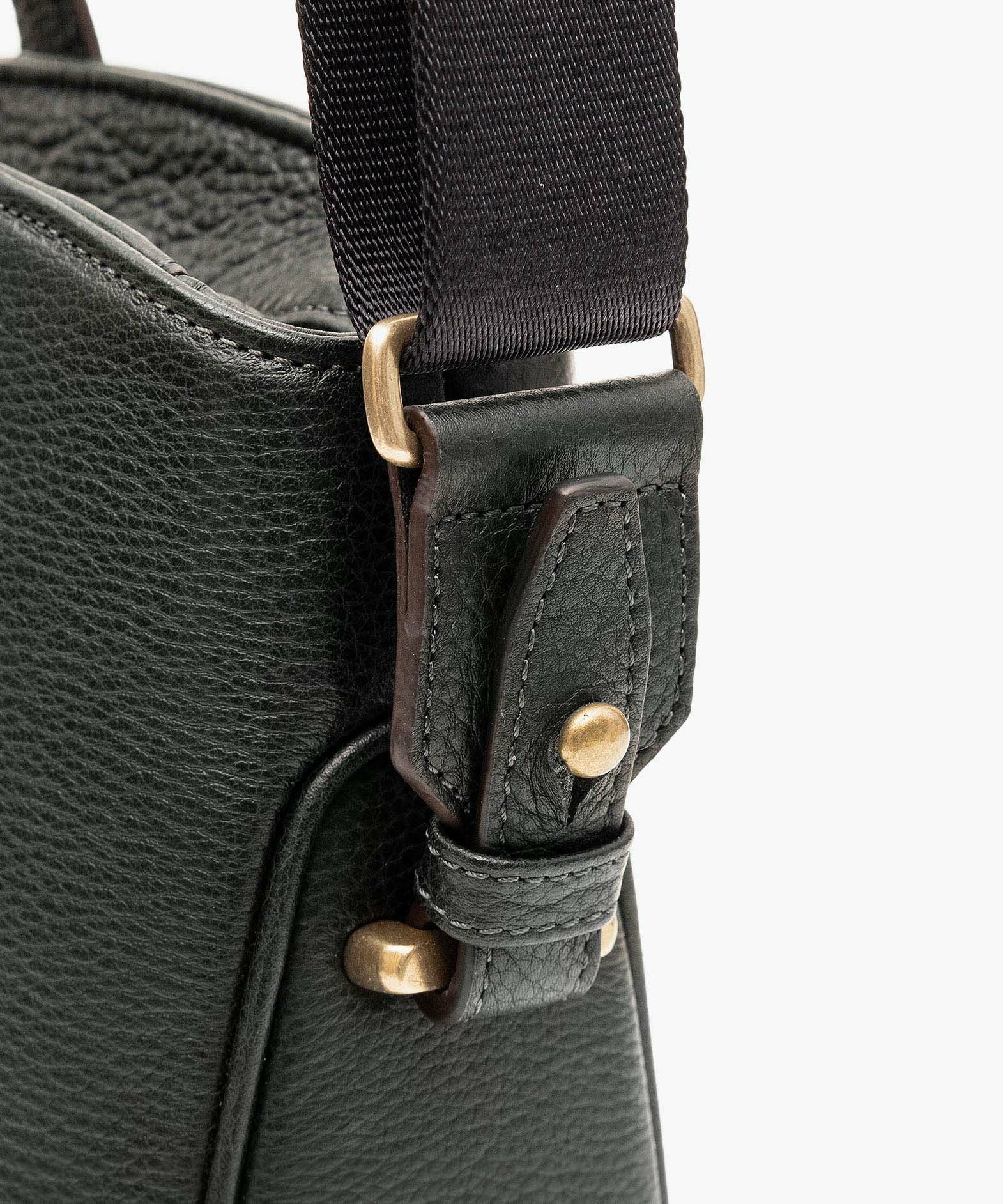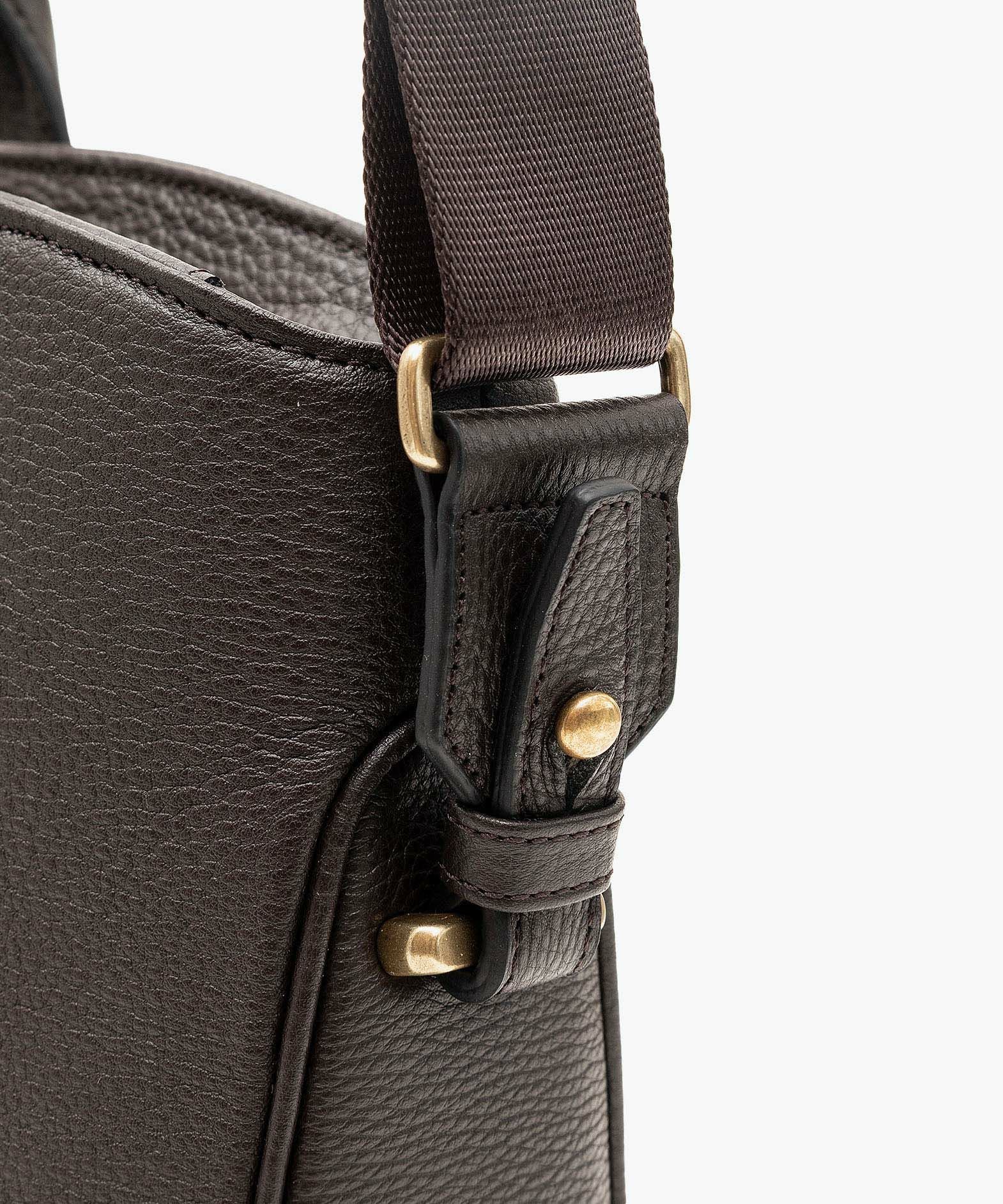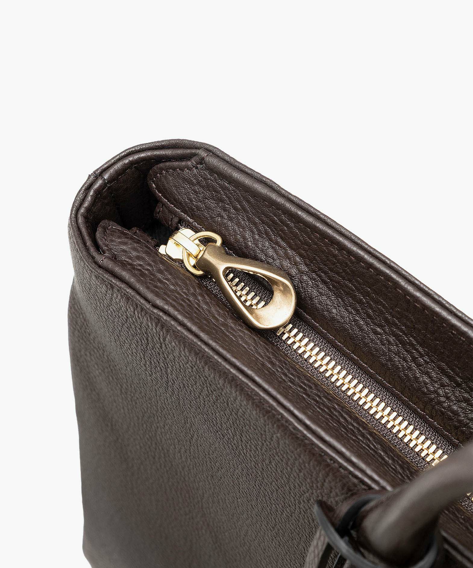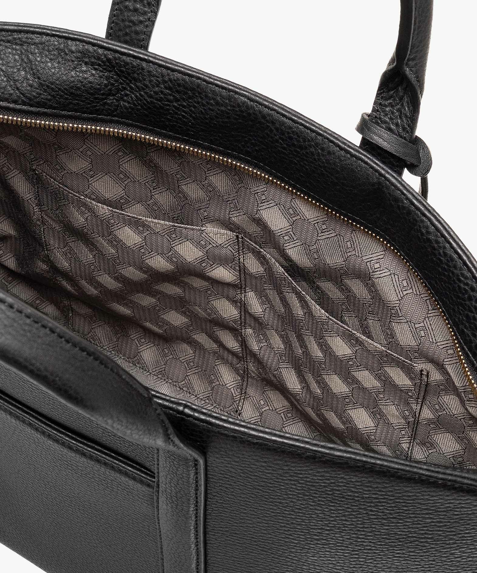 カジュアルなビジネススタイルにも似合う、凛とした佇まいと柔らかな曲線を併せ持つ、スタイリッシュなブリーフケース“Glide”。出し入れしやすい広めの上辺と、コンパクトに見える狭めの下辺が、滑らかに携えて行けるシルエットを実現。上面のファスナーを一段下げて、小さいカーブを描く両端のデザインにすることで、「シュリンクレザー」のボディとの隙間から中身が見えない細かな配慮も。間を狭くして緊張感のある2つのハンドルは、二つ折りのグリップ部分で握りやすく、手首にも掛けやすい長さを追求。スリムなマチの上部にある真鍮金具に、付属のショルダーベルトを装着すれば、スマートな2Wayも叶えてくれる。