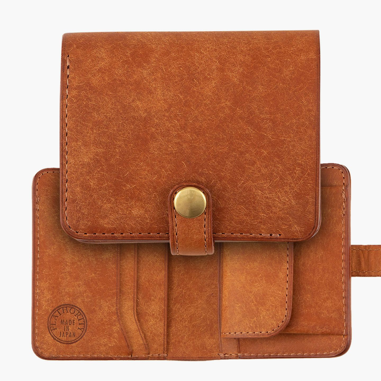 国内有名ブランドの鞄を製作し、数々のコンテスト受賞歴を誇る鞄メーカー岩瀬が、企画・製作すべてを一貫して行うファクトリーブランド『Flathority』のミニウォレット(ベルト付き)。まるで和紙のような独特の味わいが魅力的な外装・内装の「プエブロレザー」が、ザラザラした独特の風合いからツルツルした美しいツヤ肌へと経年変化していく楽しさとともに、ベルトタイプのクラシックな感とふっくらフォルムのジェンダーレス感をさらに引き立て、革小物としての価値をより一層アップデート。紙幣を折らずに収納できる限界までコンパクトにしたオールインワンのサイズ感が、他では感じられない軽快な使い心地を奏でてくれる。