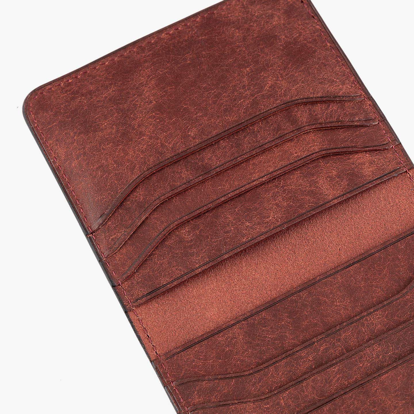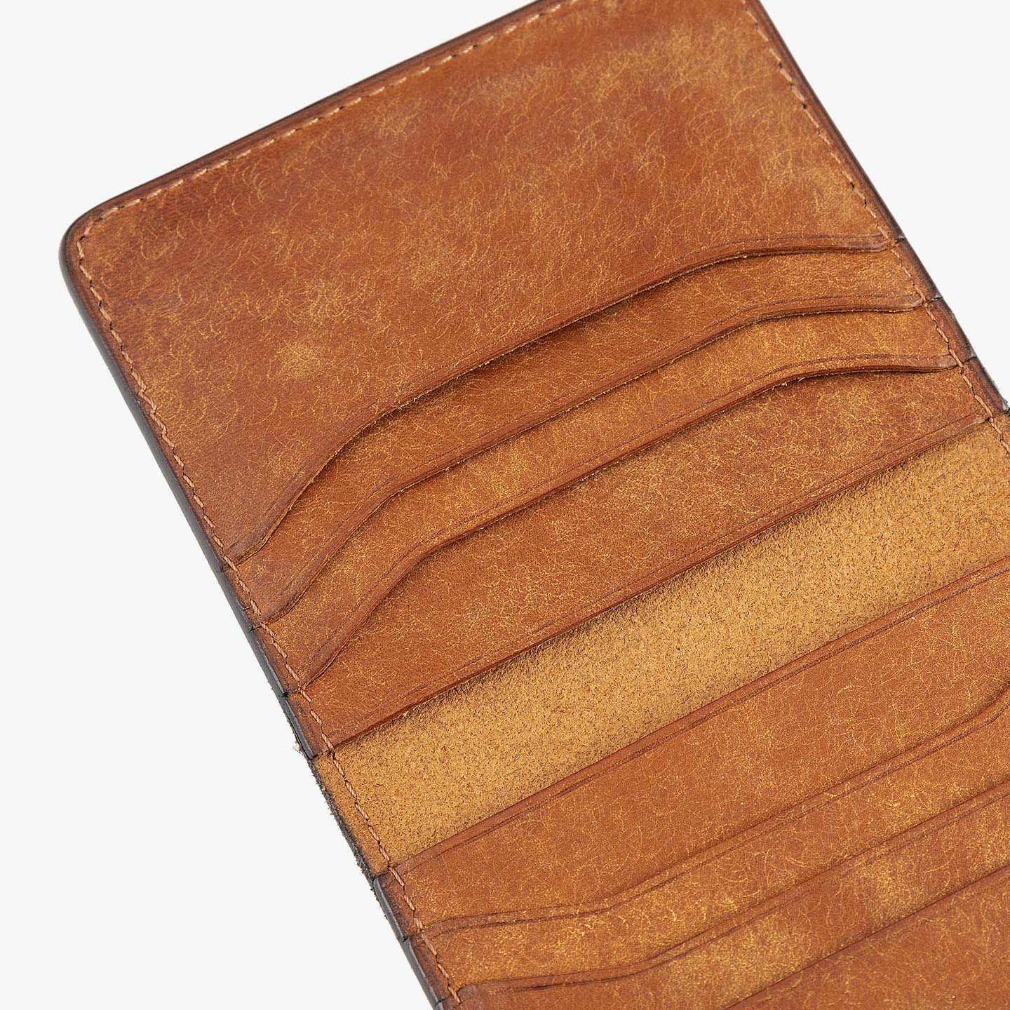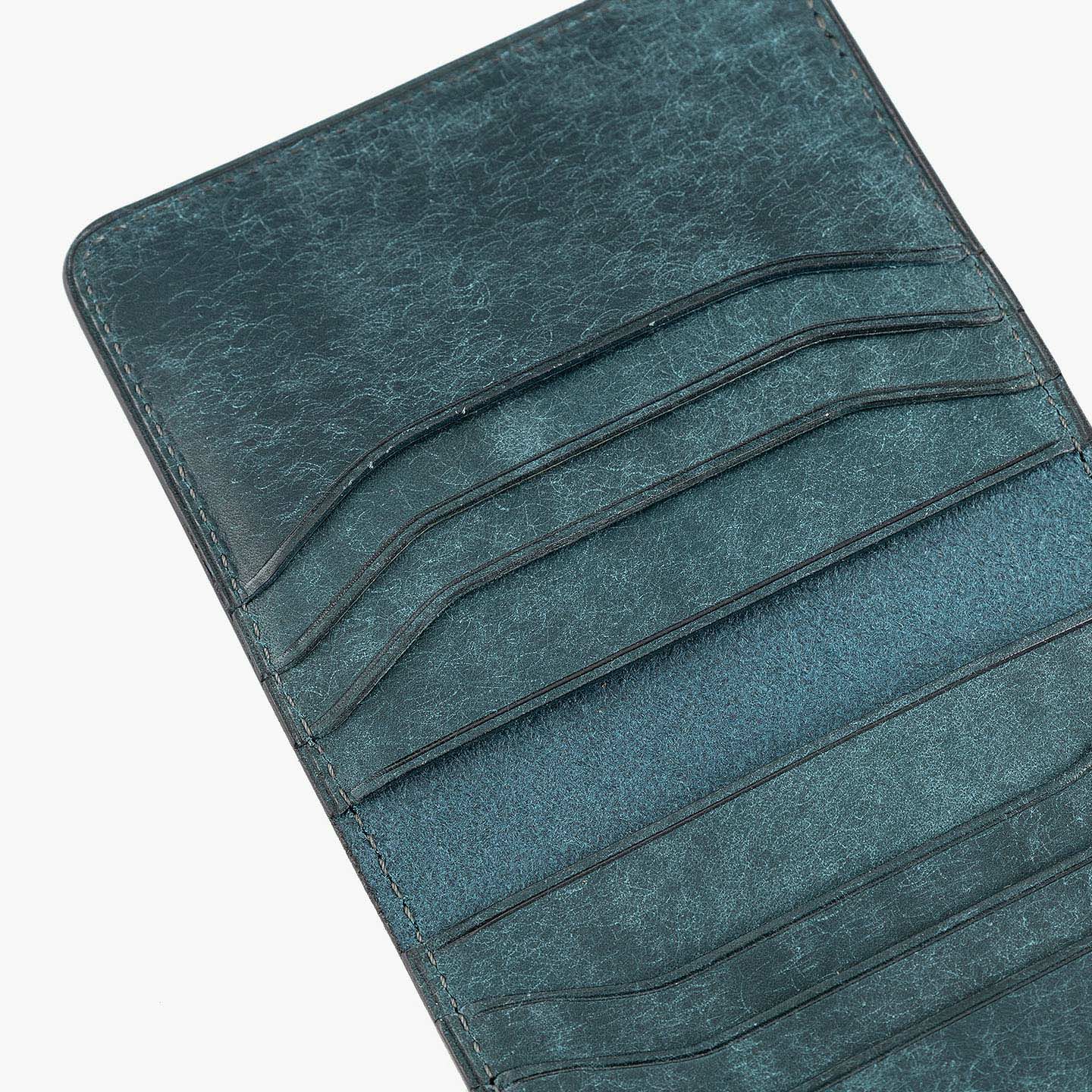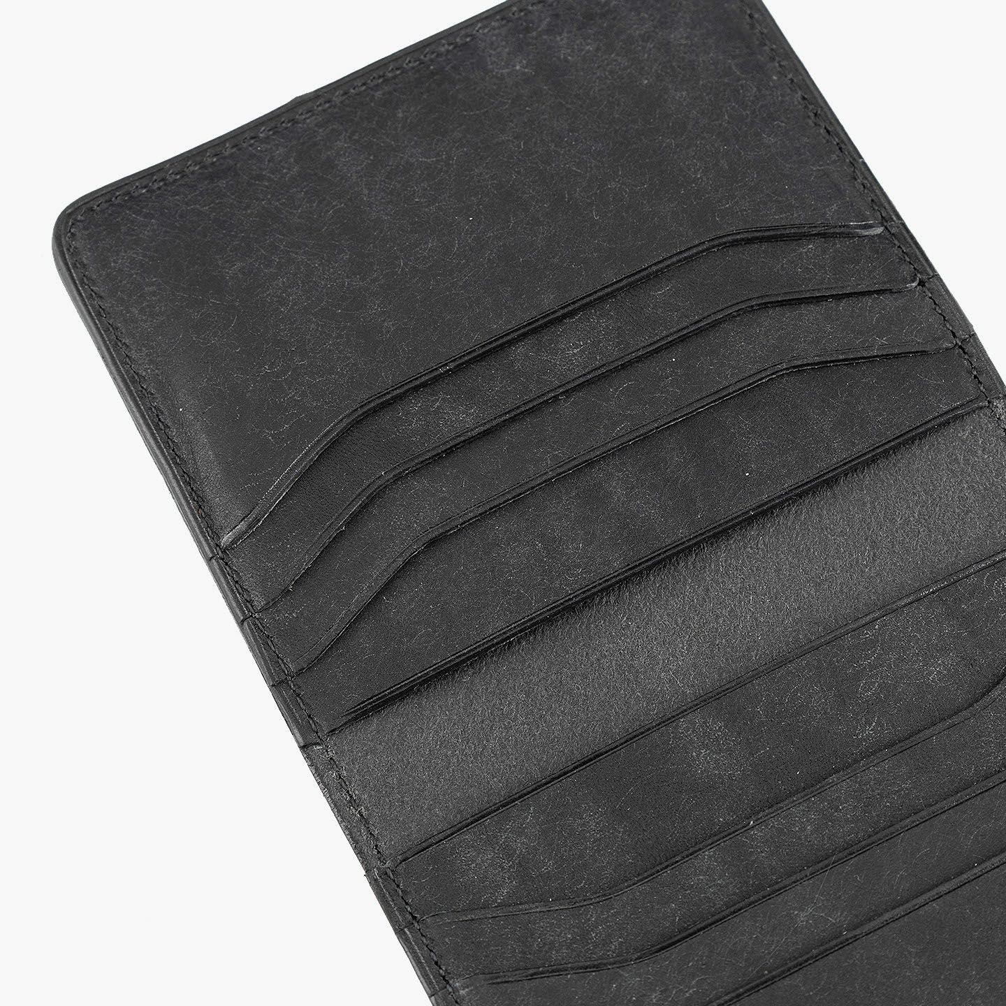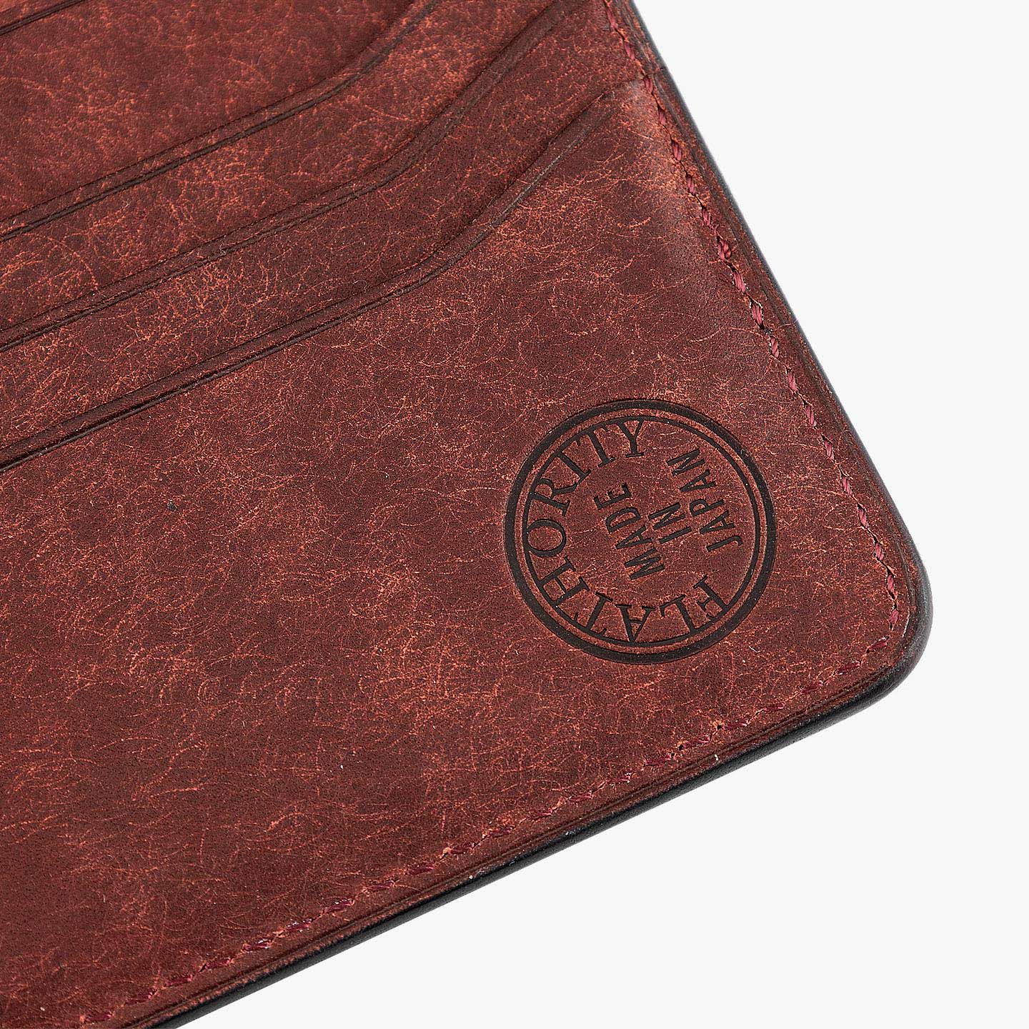 ハイクオリティで量産できる鞄メーカー岩瀬が、どこにも真似のできないレザー製品を生み出したい想いを込めている、ファクトリーブランド『Flathority』のカードケース。和紙のように表面を起毛させた外装・内装の「プエブロレザー」が、ザラザラした独特の風合いから、ツルツルした美しいツヤ肌へと経年変化していく楽しさと、ふっくらとしたフォルムやジェンダーレスなデザインも魅力。スリムな手のひらサイズを追求しながら、左右シンメトリーで向かい合わせたカードポケット6つは、その数よりも出し入れのスムーズさにこだわり、折り畳んだ紙幣も収納できるマルチポケット2つとともに、扱いやすい気軽さをもたらしてくれる。