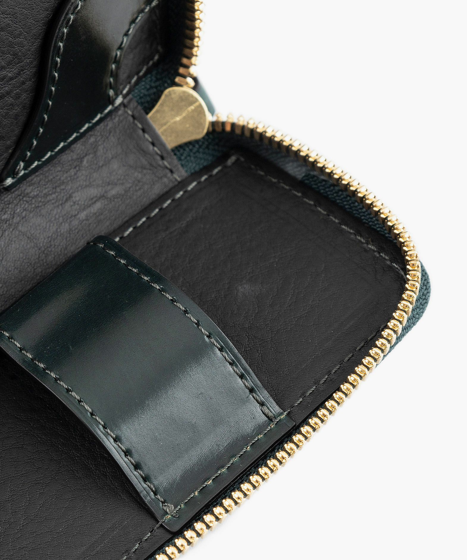 世界の名だたるトップメゾンに選ばれ続ける世界随一のコードバンタンナーであり、100年以上の歴史を誇る老舗タンナーでもある、アメリカ・イリノイ州シカゴのホーウィン社(Horween Leather Company)製の「シェルコードバン」。約半年間の手間と時間をかけて、ベジタブルタンニンで丁寧に鞣していく製法により、長時間かけた加油によってしっとりとしたハリを保ちながらも、柔軟性やしなやかさにも富み、使い込むほどに高品位な味わいを醸し出します。また、じっくりと鞣されているため、革の内部から奥深い色合いを表現しているような雰囲気も魅力。オイルが十分に浸透していて、表皮からオイル・脂が入りにくく抜けにくいため、ケアを余りしなくても自らのオイルで小キズなどを修復する特長もあります。新品時にはギラリと光るような圧倒的な表情で、自然な仕上げのため表面に小キズやピンホールと呼ばれる毛穴・毛細血管の形跡が残ることがありますが、使い込むほどに繊維が寝て徐々に目立たなくなるなど、エイジングも素晴らしくて楽しんで育てられるマテリアルです。さらに、そのような表面はもちろん、製造した証となるロゴスタンプが一枚革に1印のみ記されている背面(裏面)も、世界中の多くの愛好家からは人気。背面(裏面)の使い始めは、しっとりサラサラとした手触りですが、使い込んでいくと次第に艶やかに経年変化していくのも特長的です。
