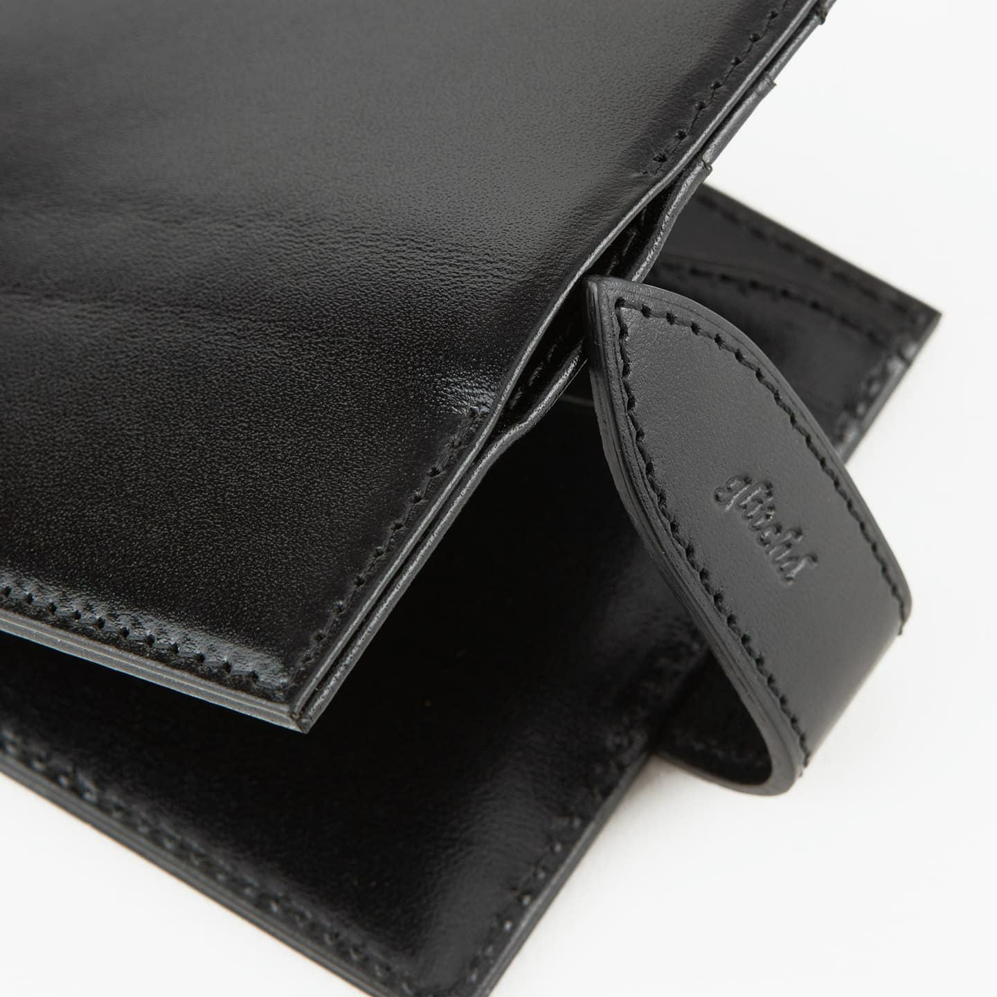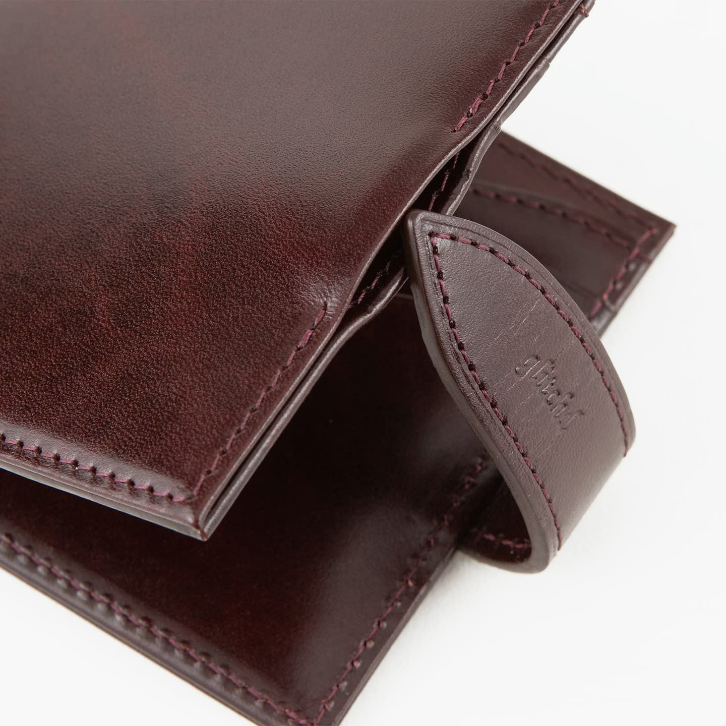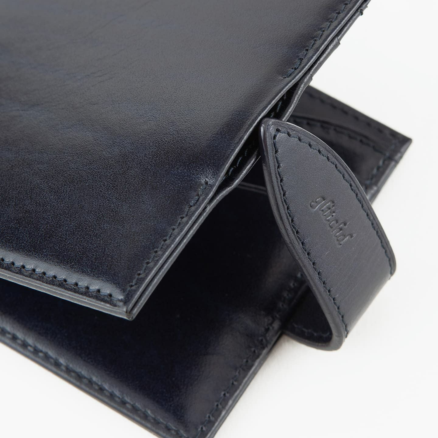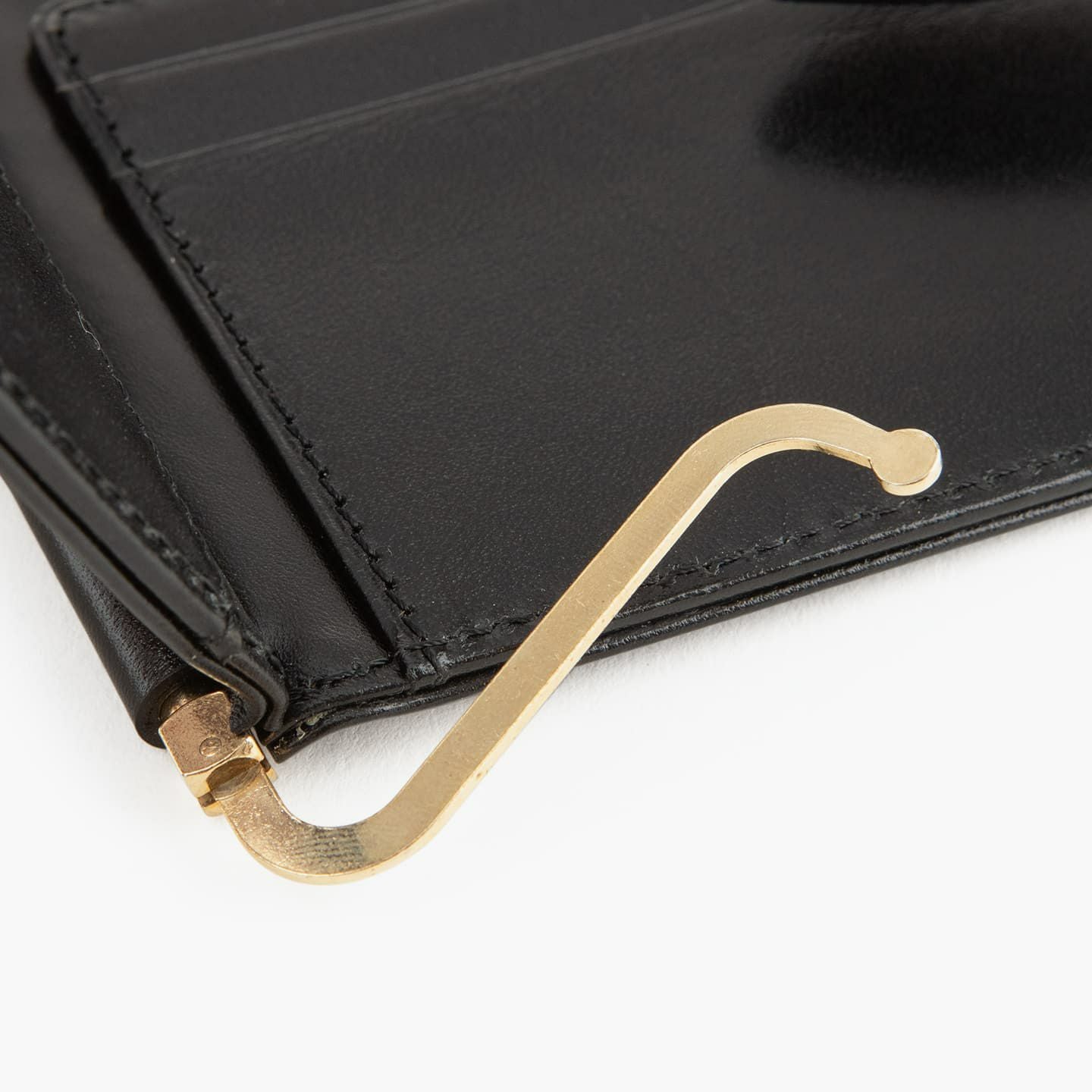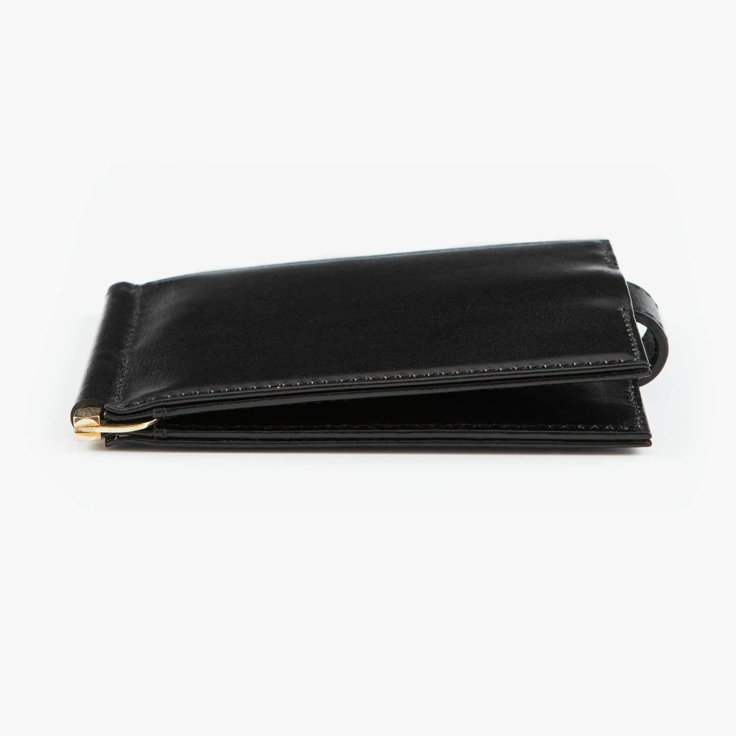 紙幣をクリップする金具だけでなく、両サイドにフラップのカードポケットを装備。これにより、カード段の背面に、紙幣と領収書を分けて収納することも可能。また、マネークリップとしてのスリムさを追求しながらも、強度を維持するために、コバの処理は返し合わせで仕上げています。角の丸まりを抑えるとともに、表革のアタリを極力出さないようにしながら、芯材を2枚入れて強度を保持。さらに、二つ折り財布に近い使用感を追求し、オン・オフ問わずに愛用できるデザインにしています。
