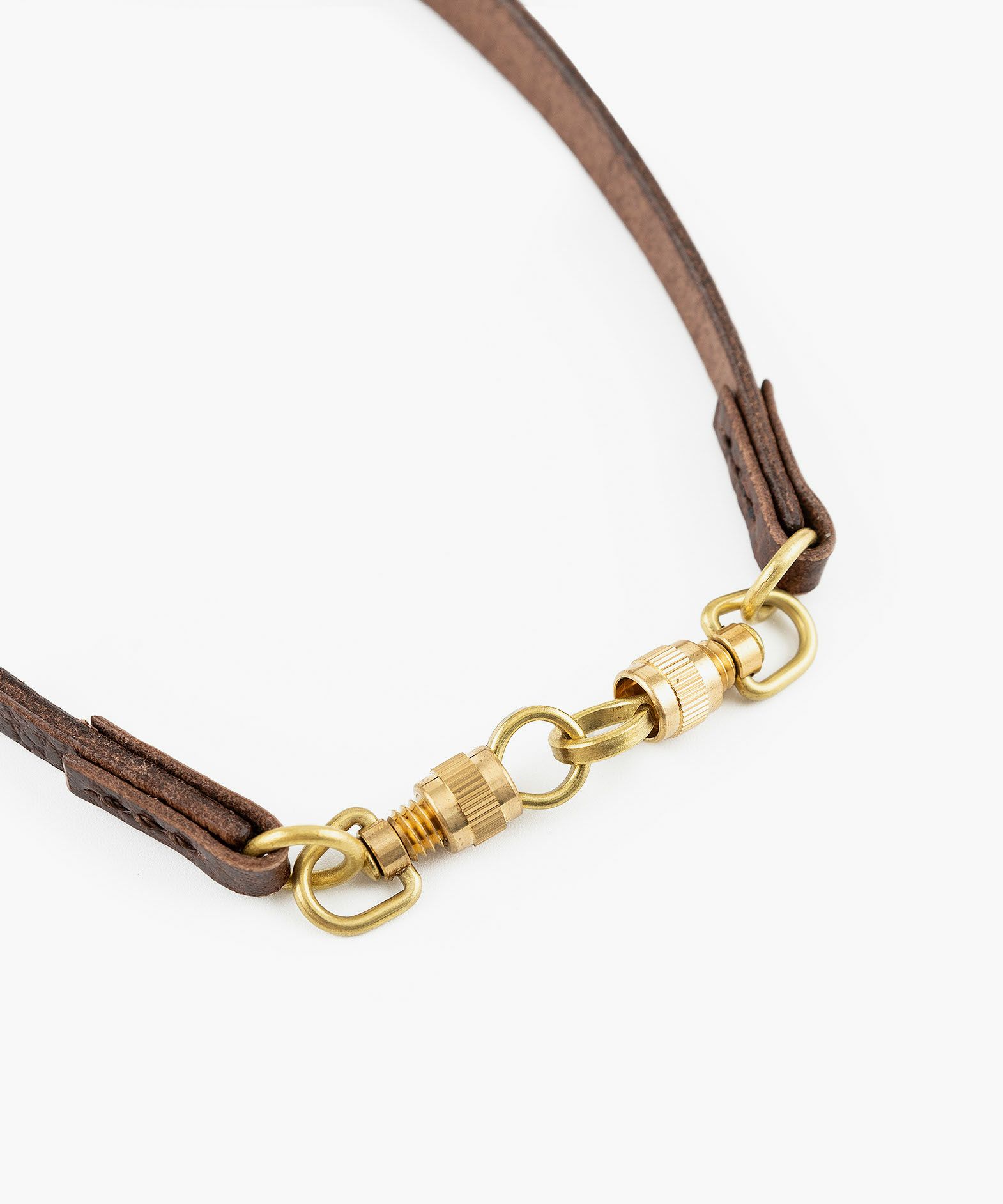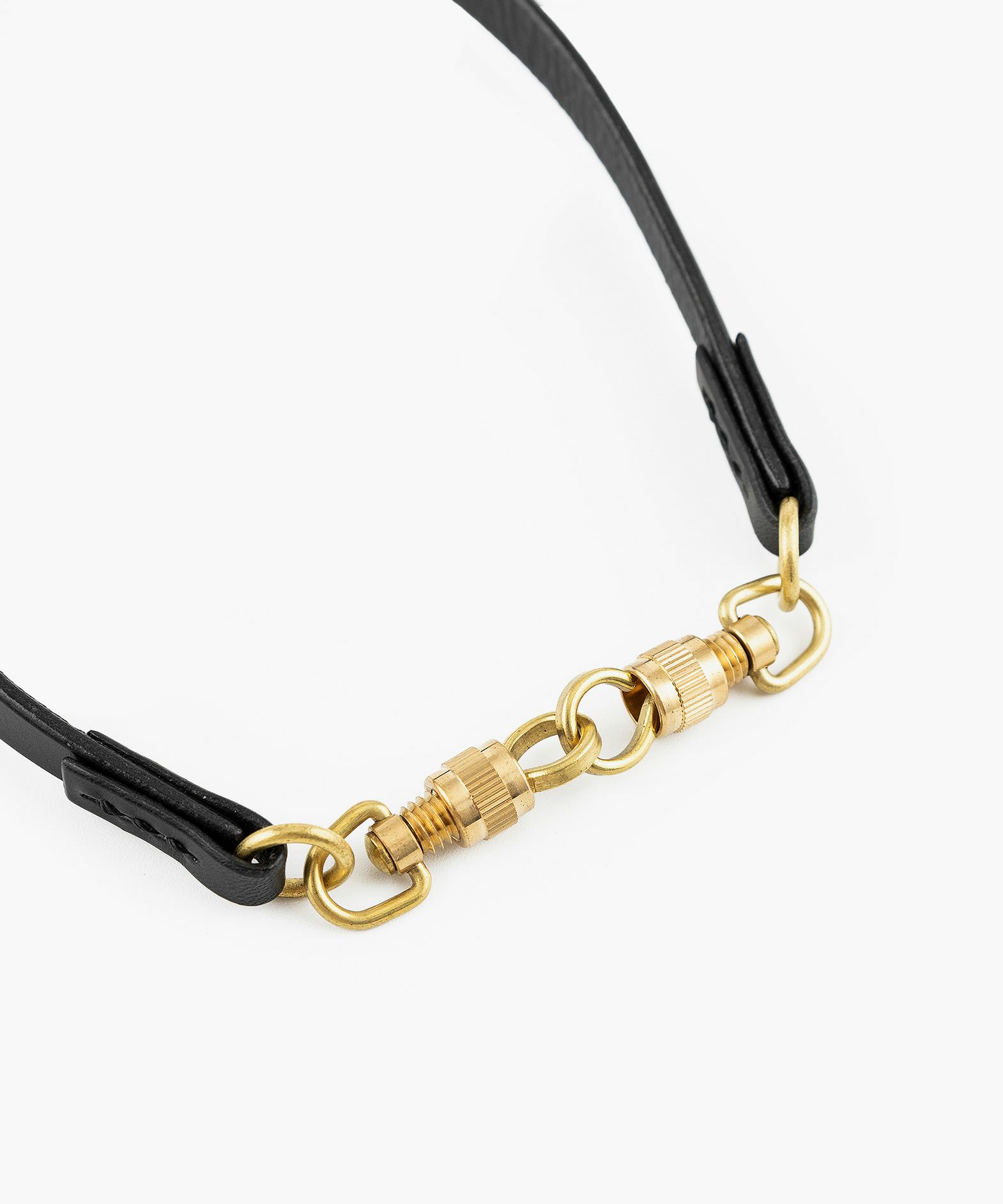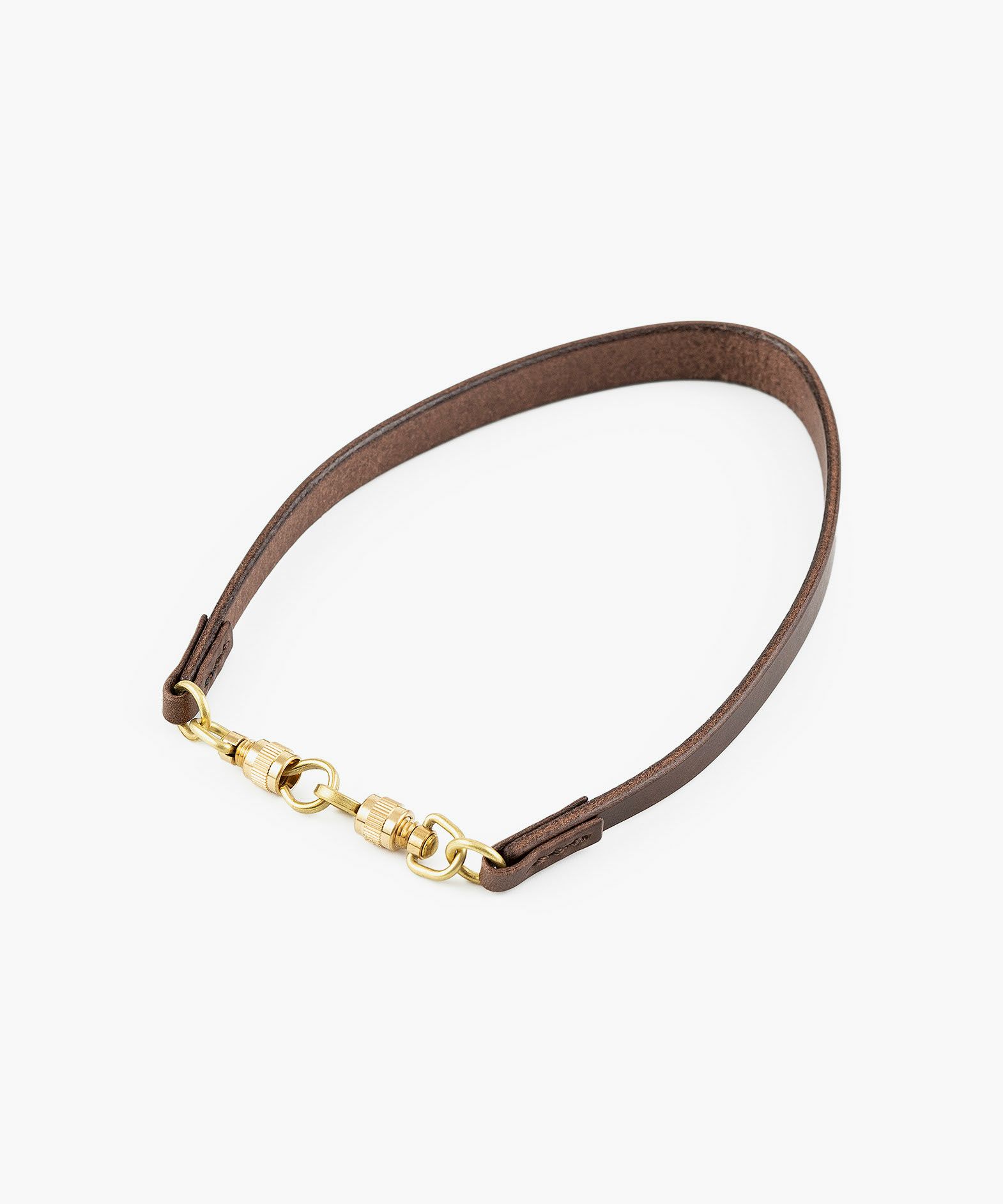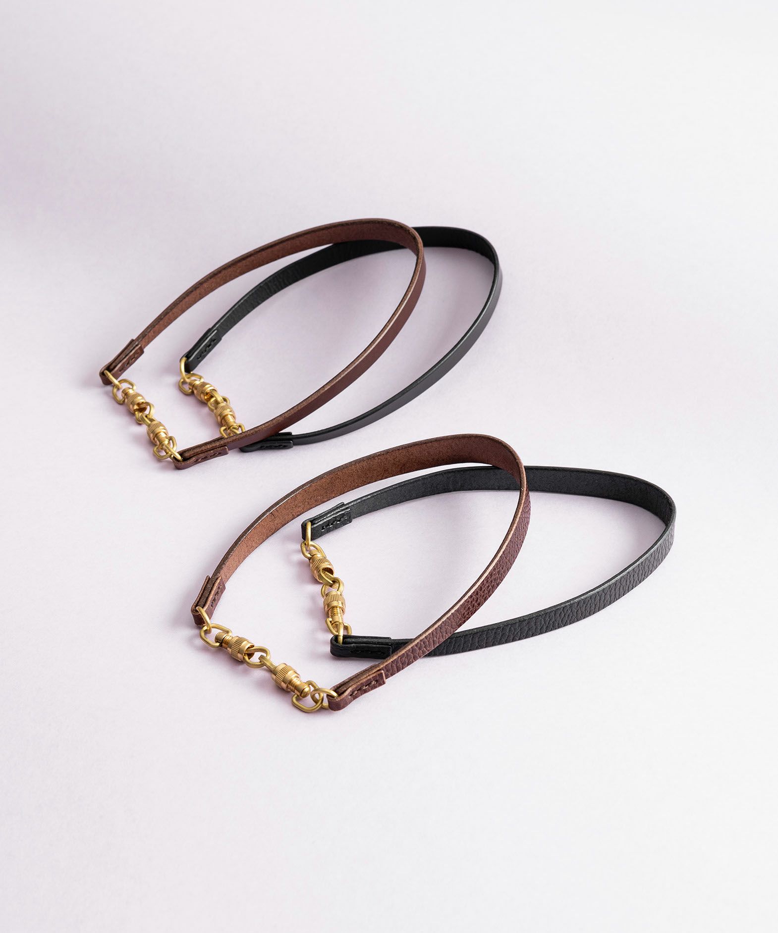 巾着バッグ“AKATSUKI”に装着することで、ハンドバッグやショルダーバッグのように使うことができる、巾着バッグ“AKATSUKI”用アタッチメントストラップ。本体の巾着バッグと同じく、ブラック・ダークブラウンの2色から、スムース・型押しの2タイプと組み合わせてセレクトオーダー。カジュアル感のある革紐ではなく、ストラップを手持ちハンドルとして扱えば、フォーマルな場面にも似合うハンドバッグのようなエレガントな印象に。ストラップを革紐の結び目と繋げて長くすれば、ショルダーバッグの肩当てみたい使いこなせて斜め掛けすることも。このアタッチメントストラップを装着することで、巾着バッグの概念を超えた、さまざまなシチュエーションで持ち歩ける機会を広げてくれる。