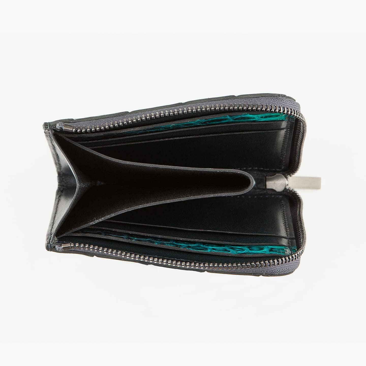 内装には、肌触りが良い堅牢な牛革をセレクト。正確な断裁と繊細なコバ仕上げで切り目を表現し、無縫製による高品位な上質感を創出しています。小銭入れは、内装の中央にファスナー・ボタンを設けないポケットして配置し、外装のファスナーを閉じることで快適な収納が可能。オーソドックスな形状でコンパクトでありながらも、紙幣を入れた際にファスナーを巻き込まない高さに計算された設計で、使いやすさとともに収納力も兼ね備えています。