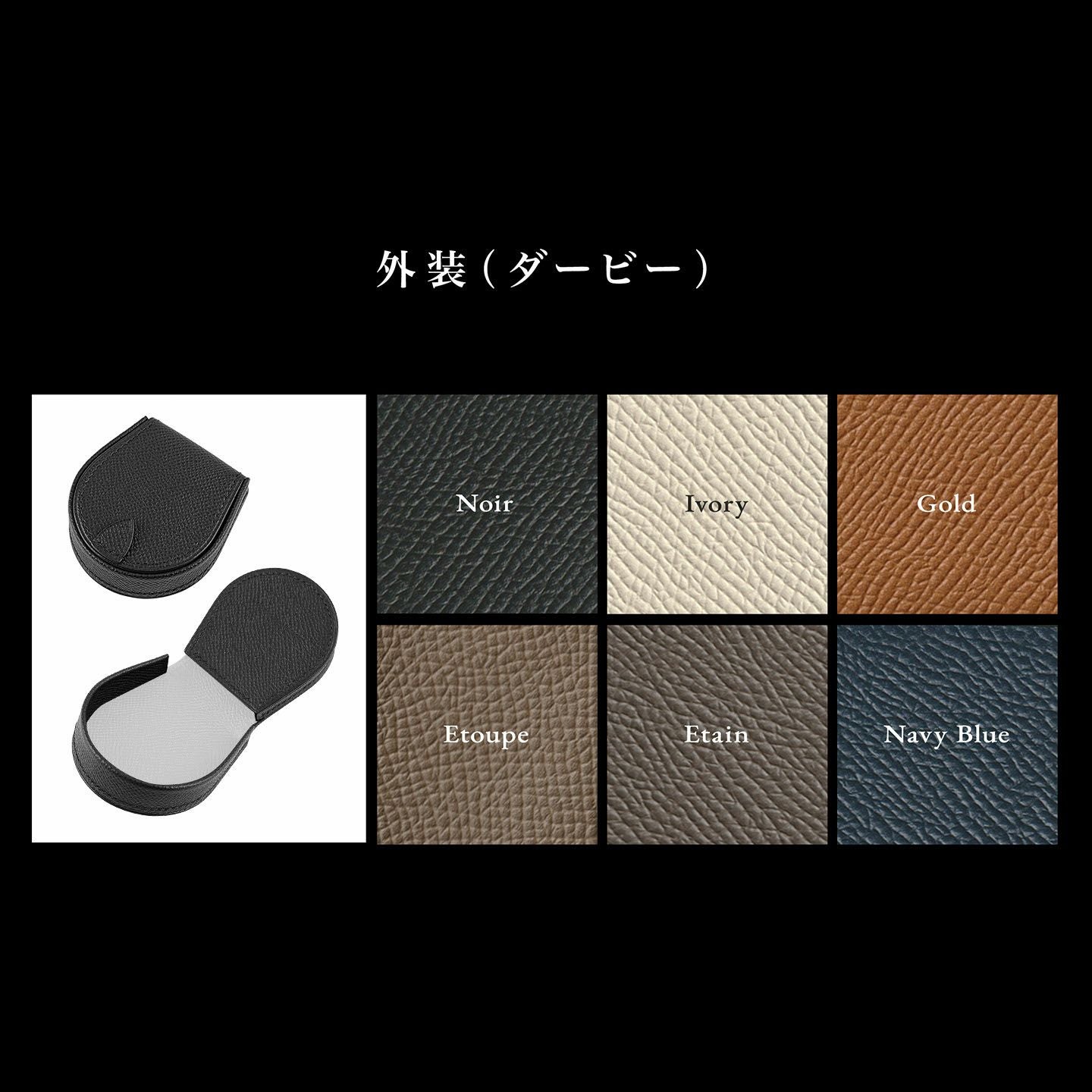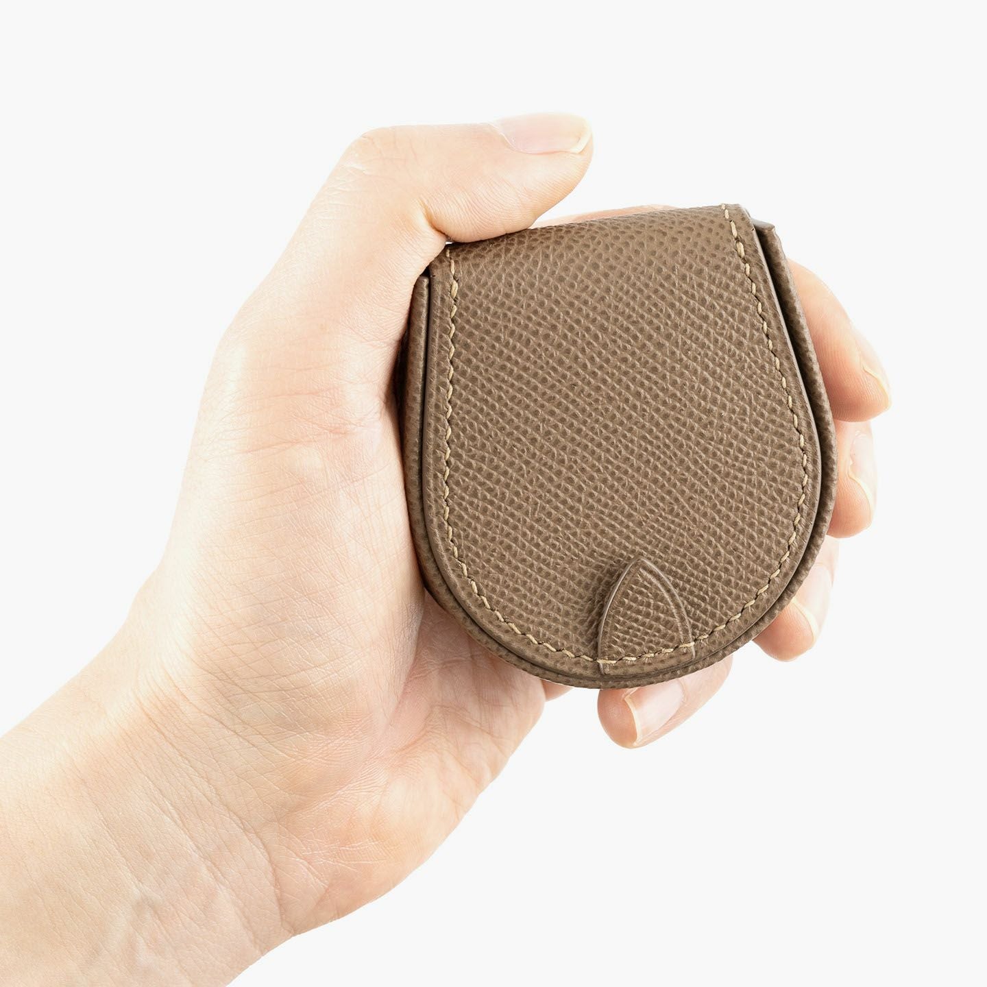 オーダーメイドで培った独自の技術を存分に駆使して、シェイプの効いた本格的な美しい馬蹄型のデザインを追求したコインケース。幸運をもたらすお守りとして親しまれてきた造形を、曲線と直線をバランス良く組み合わせることで、甘くなり過ぎないエレガントなシルエットへと昇華。マチと底部を直角に縫い合わせる特殊な駒合わせは、熟練の職人技による高度な総手縫いが求められるため、世界的に希少なアイテムながらも、本体とフタとの密閉性を最適化させ、留め具を一切使わずに摩擦のみで留める構造を実現。マットな型押しの表情が美しく、軽くて小キズ・水分に強い「ダービー」が、ちょっとした近所への買い物や、現金しか使えないお店などで、小粋なこなれ感をさらに引き立ててくれる。