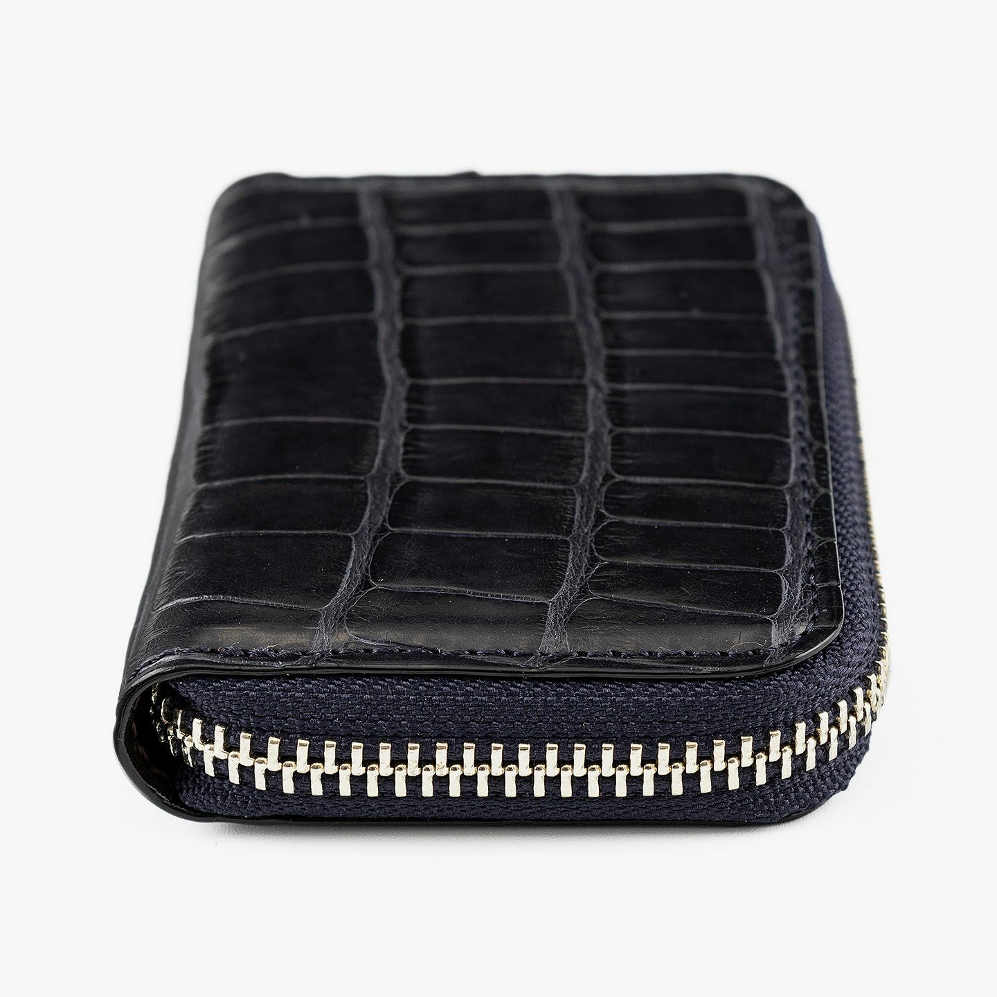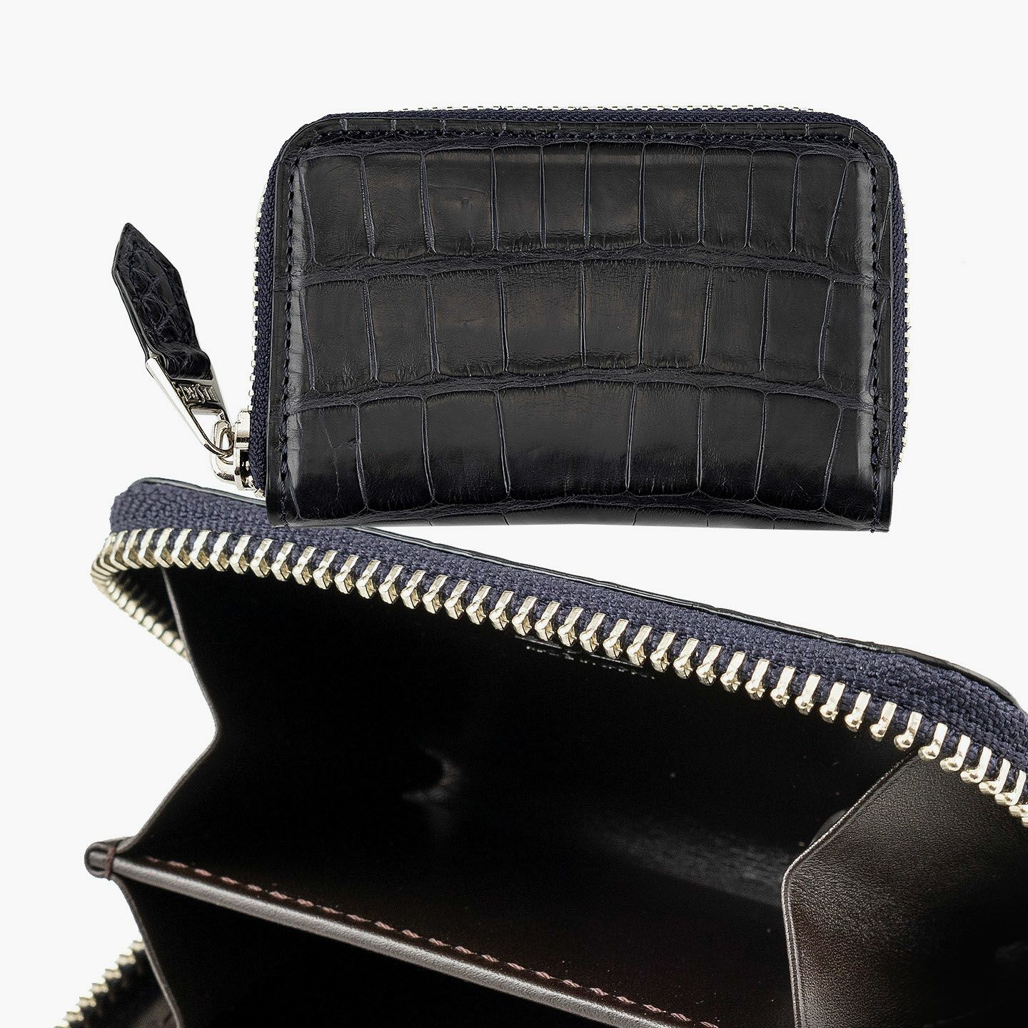 原価・サイズ・等級・鞣し・染色・デザイン・仕立てのすべてにおいて、独自の価値基準を設けている、エキゾチックレザー専業ブランド『LE’SAC』のミニラウンドジップ財布。高級皮革のワニ革「アリゲーター」を贅沢に纏った外装による、美しく連なった斑模様と人気カラーのGreen・Navyとのバランスが、使うほどに光沢感を漂わせながら味わい深くなっていき、唯一無二の存在感へと昇華。全体のアクセントとして引き立てているシルバーのファスナー&オリジナル引き手に、同じ「アリゲーター」による剣先の引き手をあしらった洒落感と、内装の牛革による落ち着いた色合いと実用的な使用感が、上質な大人感を高めてくれる。