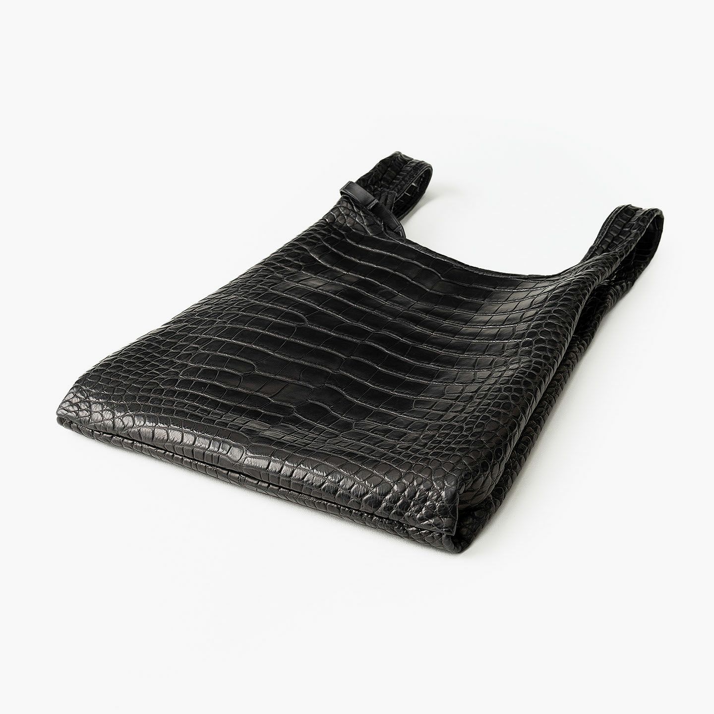 エキゾチックレザー専業ブランド『LE’SAC』による、希少価値の高い最高級の革と、熟練の職人による最高峰の仕立て・加工が、大人のステータスを高めてくれるマルシェバッグ“COLOGY-S”。レジ袋・エコバックをモチーフにしたデザインを、最高級素材であるワニ革「アリゲーター」2枚を贅沢に使用して表現し、美しく上質な斑模様とともに、唯一無二の極上感を創出。使うほどに味わい深いBlackへと光沢感を纏う魅力が、スマートフォン・鍵などを入れてバッグに収納できる同素材の付属ジップポーチとともに、内装の「ピッグスエード」とのモノトーンのコントラストにより引き立てられながら、大人のモード感を響かせてくれる。