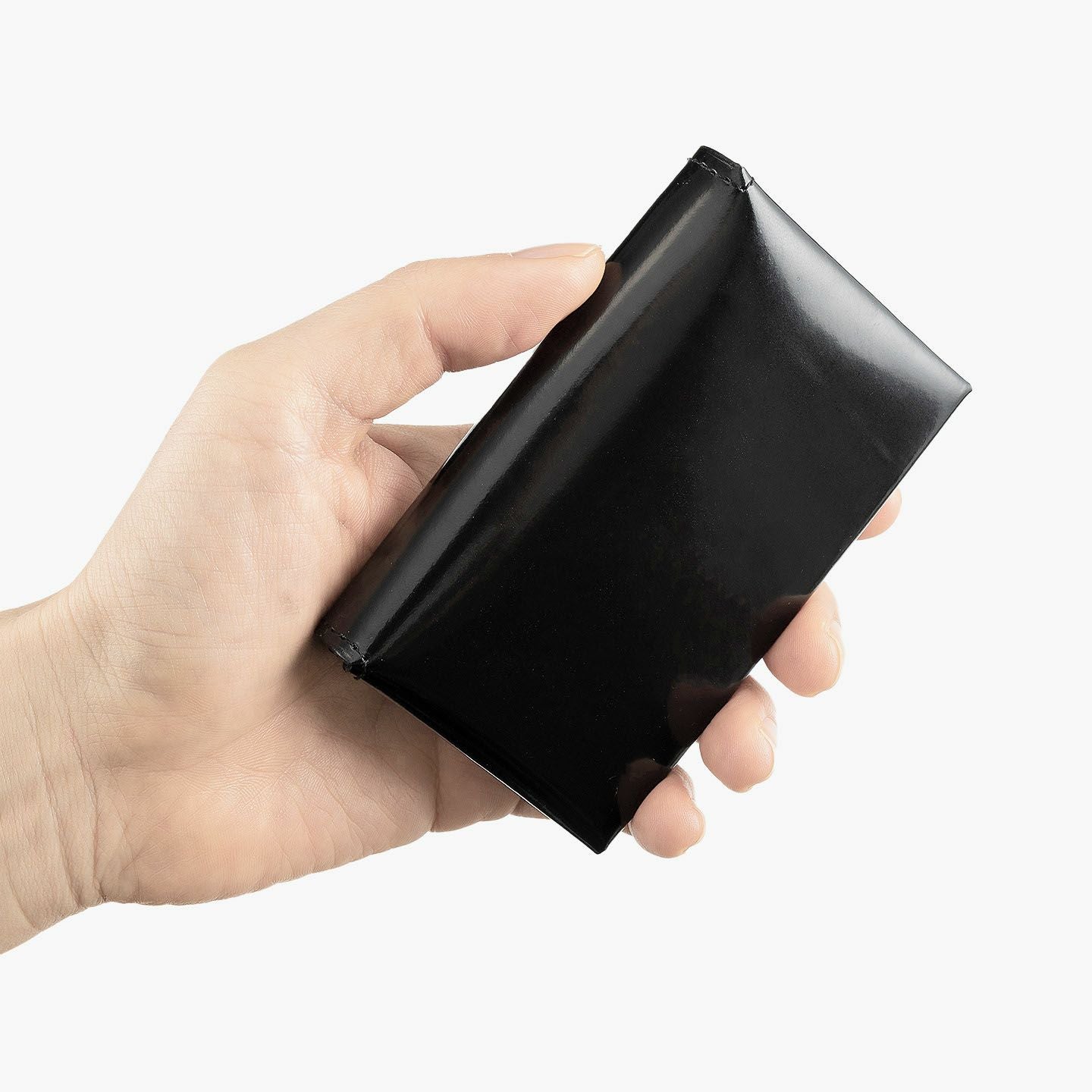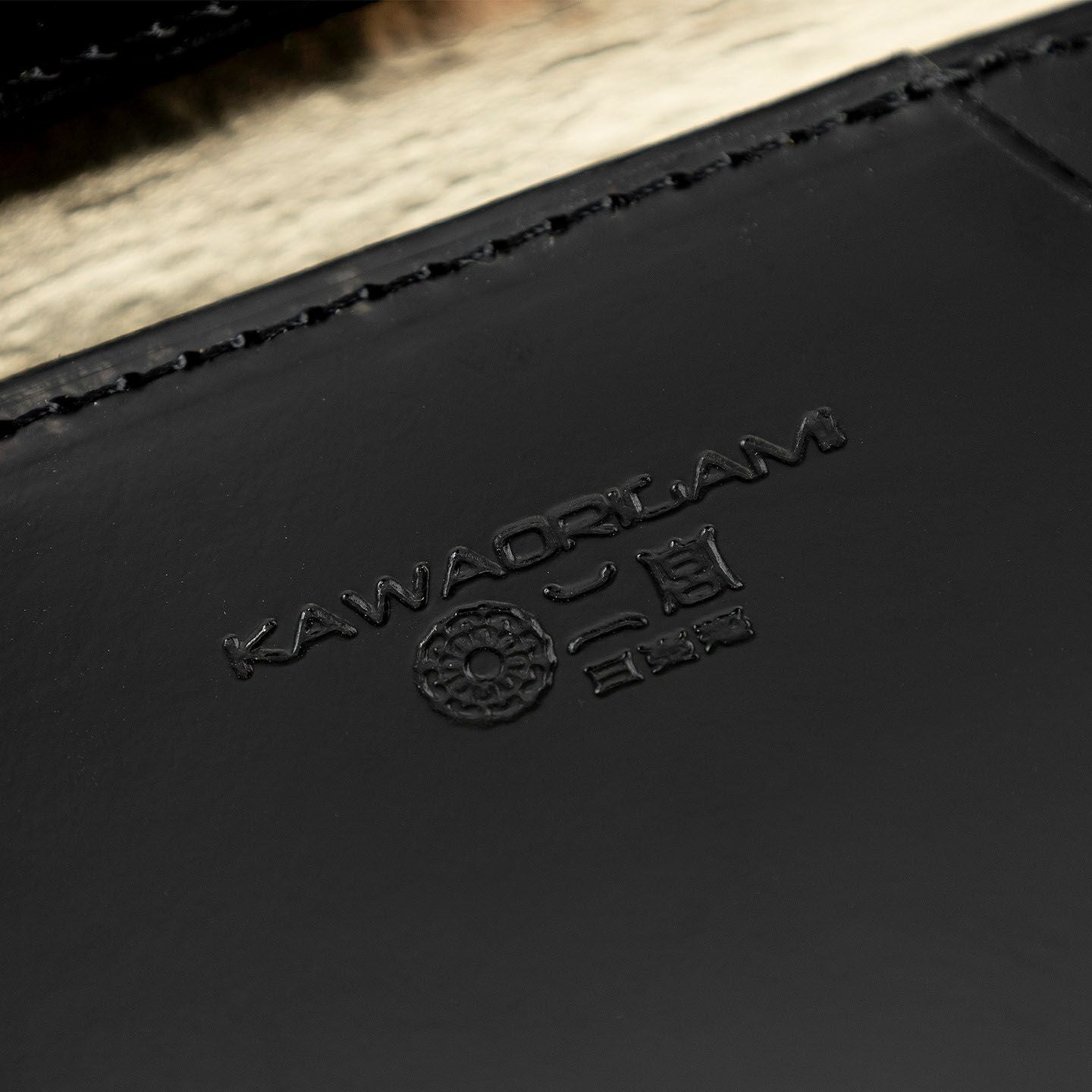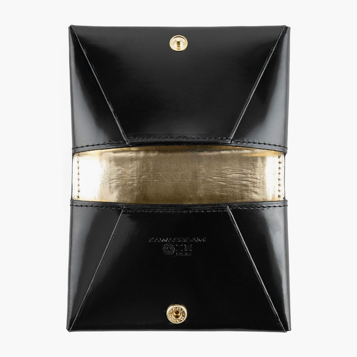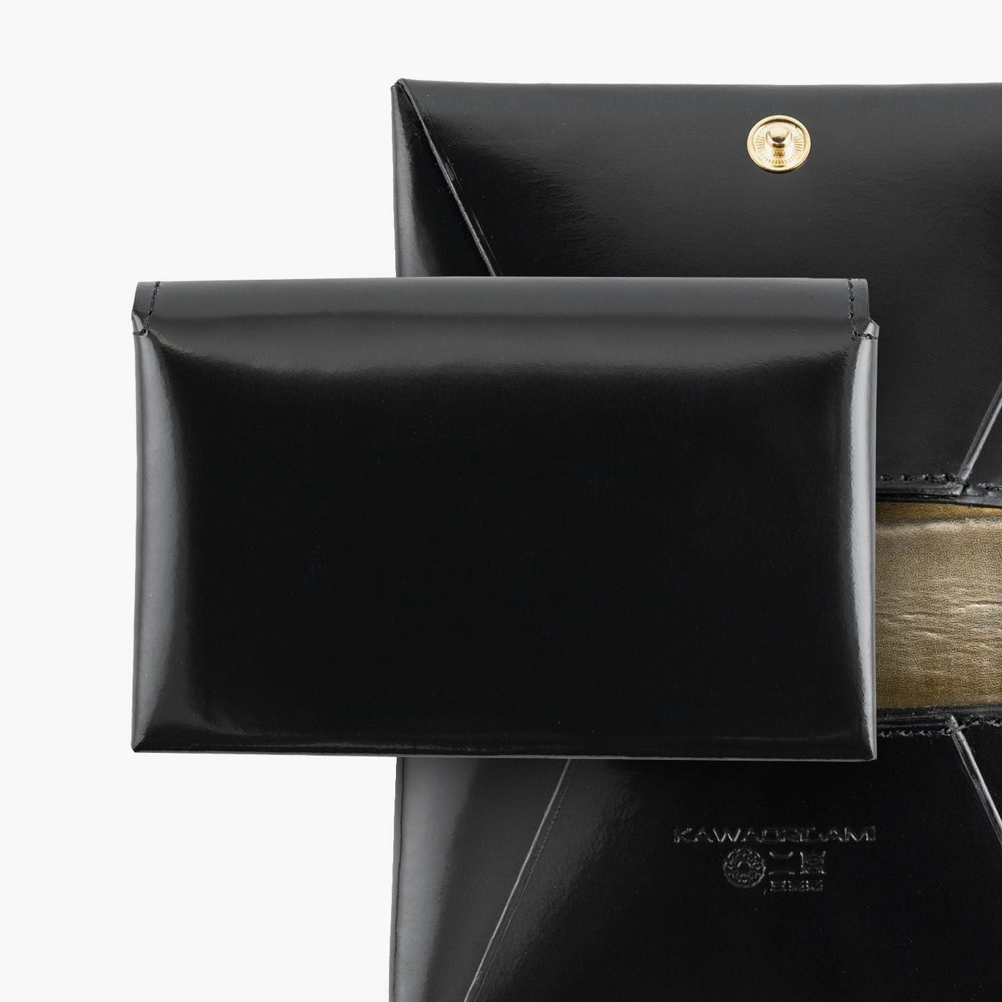 職人たちが妥協なき高品質の革製品を生み出し続けている、老舗レザーメーカー『二宮五郎商店』によるブランド『KAWAORIGAMI®』の名刺入れ。日本の伝統文化「折り紙」をモチーフにして表現し、独自の職人技を存分に注ぎ込んだ、商標登録・意匠登録済みのブランド製として唯一無二の魅力を輝かせながら、漆器のような最高級の漆黒を極めたキメの細かい外装「アメリカンキップレザー」と、高級感を引き立てるゴールドのドット調に加工を施した内装「イタリアンキッドスキン」で魅せる、極上感あふれる逸品。一枚革と最小限の部品のみで仕上げる究極の日本美が、この上ない個性でビジネスシーンを引き立て、エグゼクティブな大人のステイタスを満たしてくれる。