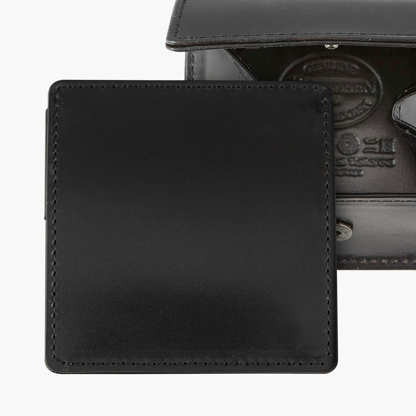 使用する前のクオリティだけでなく、使い込んで馴染んだ後の素材と形状の最良なバランスも追求。最適な糸の選定や縫製のピッチ、美しく正確なネン引きは、卓越した職人技の証です。細部に至るまで美しいステッチが施され、樹脂や顔料を一切使わずに切り目を染料で何度も染み込ませながら磨き込んだコバは、職人の手仕事が感じられるとともに、トラディショナルな印象を演出。内装には、外装の「シェルコードバン」と同じホーウィン社の「クロムエクセルレザー」を採用することで、全体的な漆黒のツヤ感に美しい調和が生まれ、重厚感をより一層映えさせています。