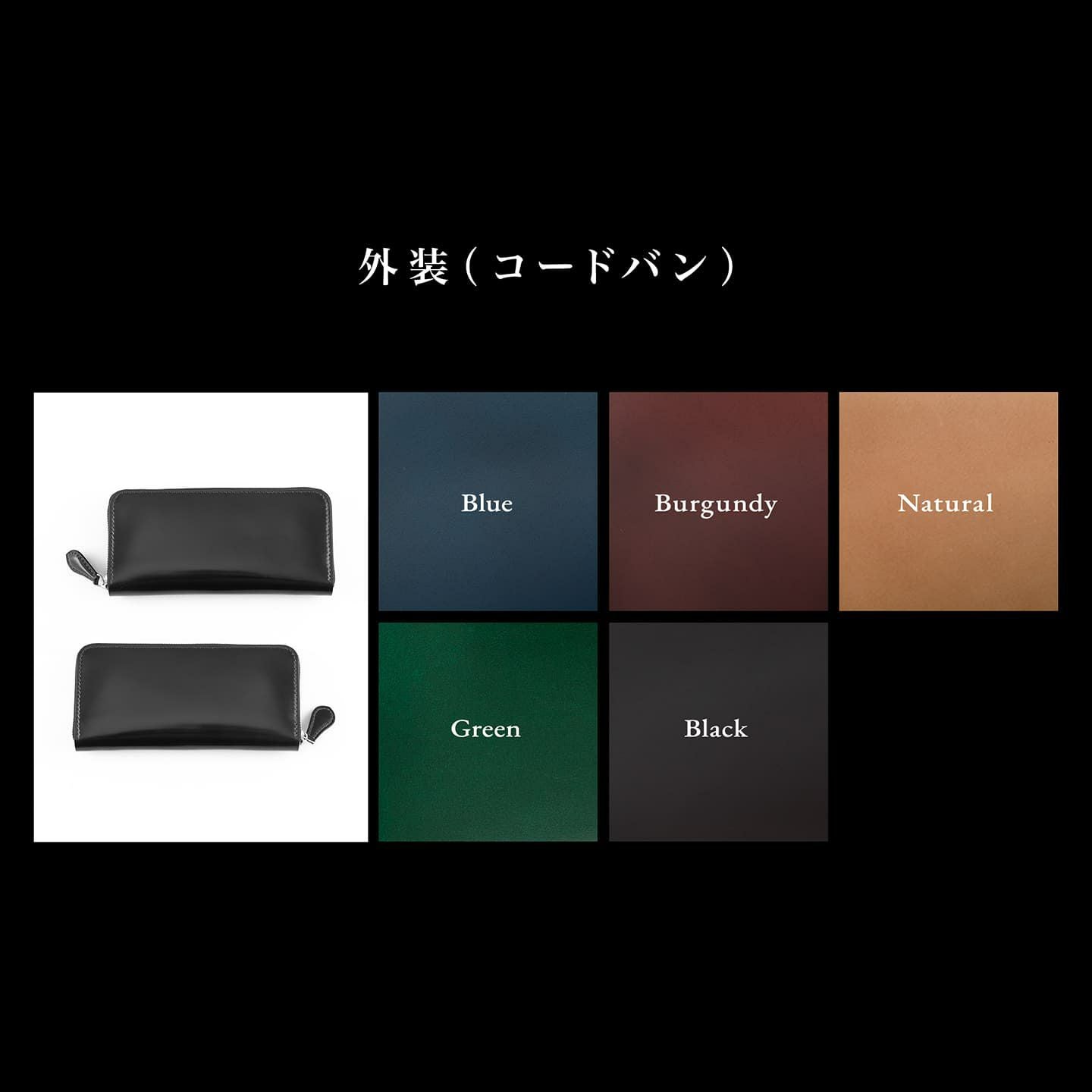 外装の「オイルグレージングコードバン」は、5色からセレクトすることが可能。内装とカード段装飾に使われている「ブッテーロ」は、16色から各カラーを選んで内装全体をバイカラーにできるとともに、ファスナー金具は3色、ファスナーテープは18色からカラーオーダーできるので、自分好みの色合いを自由に組み合わせたオリジナルのカラーリングでカラーオーダーできます。