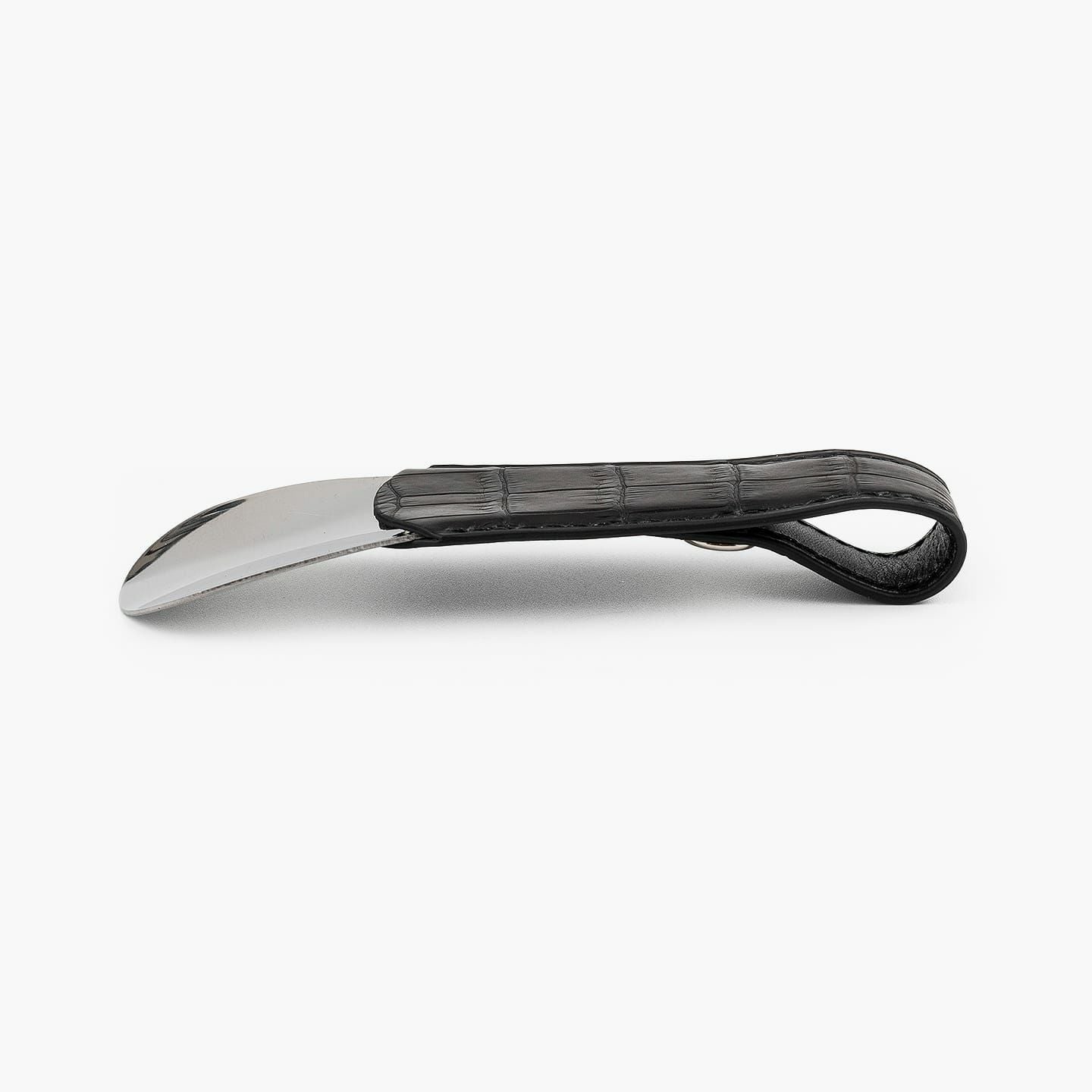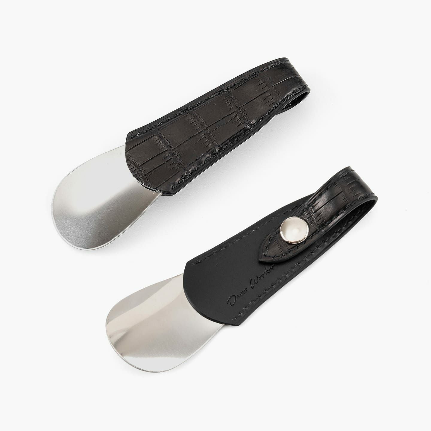高度な職人技の少量生産にこだわり、皮革から金具まで最高の材料を使うことで、所有する歓びが感じられる作品へと導く、『ONES WORKER』のシューホーン。最高級マテリアルである皮革の宝石「クロコダイル ポロサス」の表革と、最高級ヌメ革「ブッテーロ」の裏革による、贅沢を尽くしたマテリアルの共演が、表裏を同系色で統一させた5色から、カラーオーダーできることも魅力。高級感あふれるアクセサリーのような佇まいと、アイテムとしての気軽さが、相反する独創性を高品位に纏いながら、比類なき上質感を醸し出させてくれる。