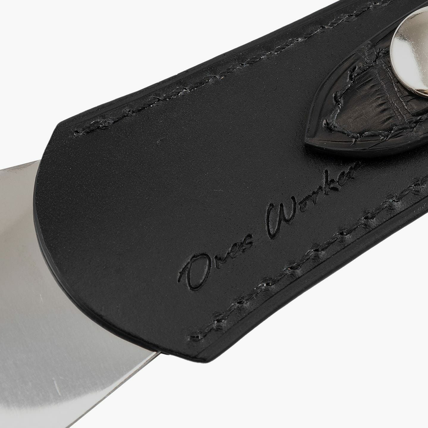 使いやすさと携帯しやすさを併せ持つ、ホックを備えた設計。靴ベラとして使用するときには、ホックを外してレザー部分を長く伸ばすことで、握りやすい持ち手としてのフォルムを追求しています。また、ホックを留めることで、収納時にコンパクトにできるとともに、キーリングを付けたり、バッグの取っ手やベルトループなどに吊り下げたりすることも可能。さらに、『Mens Leather Store』別注の仕様である、手書き風ロゴの刻印も魅力になっています。