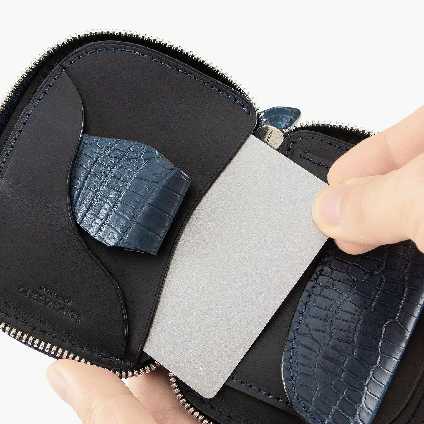 皮革から金具まで入手できる最高の材料を使い、すべて手作業で製作している、高度な技術を誇る職人のアトリエ『ONES WORKER』のショートラウンドジップ財布。ふっくらとした愛らしいフォルムに、黄金比のごとく魅せる四角と丸の鱗柄を纏い、最高級マテリアル「クロコダイル ポロサス」を、センター取りした贅沢さへと昇華。試行錯誤を重ねて設計を調整することで、手にしたときに絶妙なフィット感へと導き、コンパクトなサイズ感を超える収納力と、優れたユーザビリティも併せ持ちながら、大人の感性を刺激する洗練されたデザイン性で、普段使いの歓びを満たしてくれる。