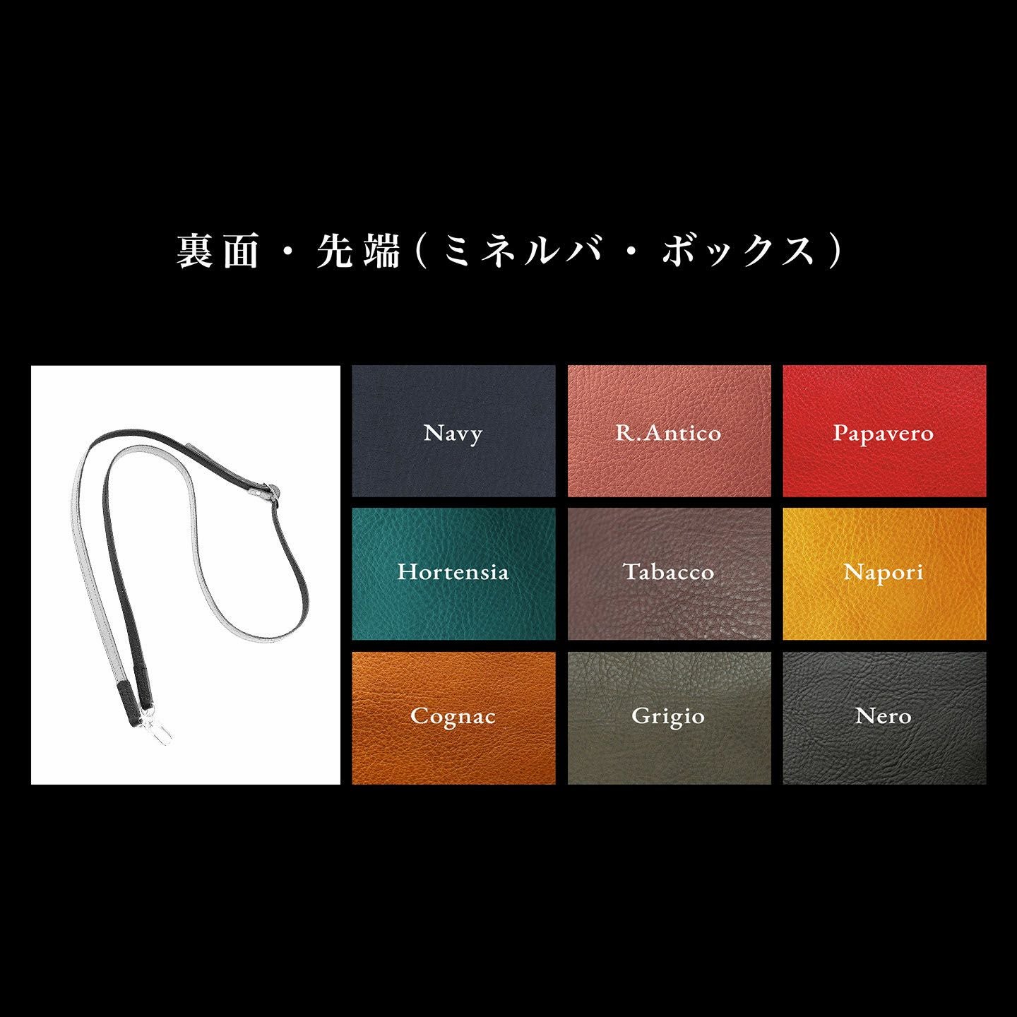 ハイレベルな技術を誇る職人たちが、少量生産にこだわって1点1点すべて手作業で製作している、アトリエ『ONES WORKER』のスマートフォンストラップ(ロング)。12mm幅の「ミネルバ・ボックス」は、柔らかく風合い豊かなシュリンクレザーで、表面と裏面・先端をそれぞれ9色からセレクトでき、ツヤっぽく色が深まっていくエイジングも魅力。長さもS/M/Lの3サイズから選べ、クラシカルなバックルで多少のサイズ調整(多少)もできるので、自分に合う程よいサイズ感に。金具には、簡単にスマートフォン・ミニ財布・カードホルダーなどに着脱でき、安心感のあるスナップフックカラビナを採用。スタイリッシュな佇まいで、普段使いに洒落感を漂わせてくれる。
