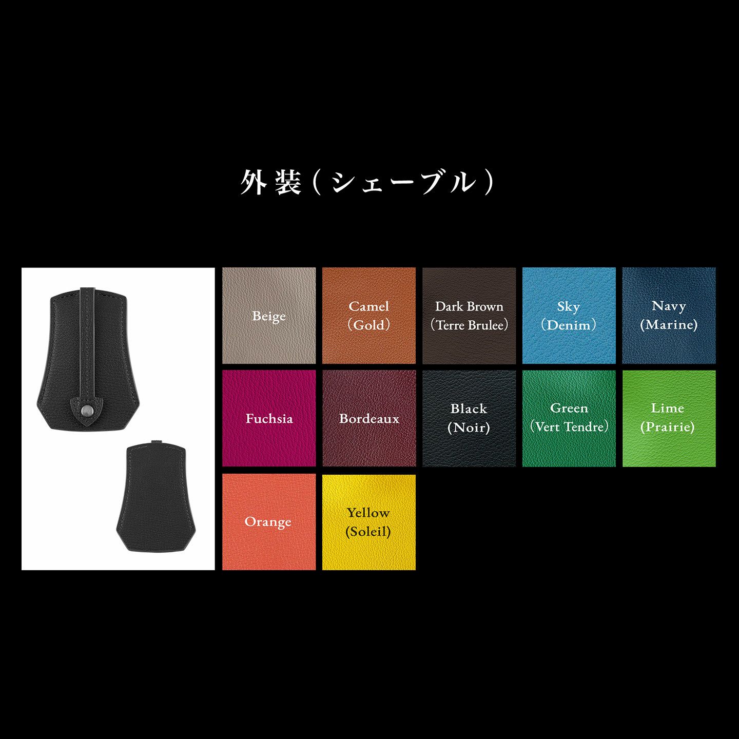 美しく鮮やかな発色と、繊維密度が高い丈夫さが魅力な、凹凸がはっきりと深いシボの高級皮革「Chervre(シェーブル)」。