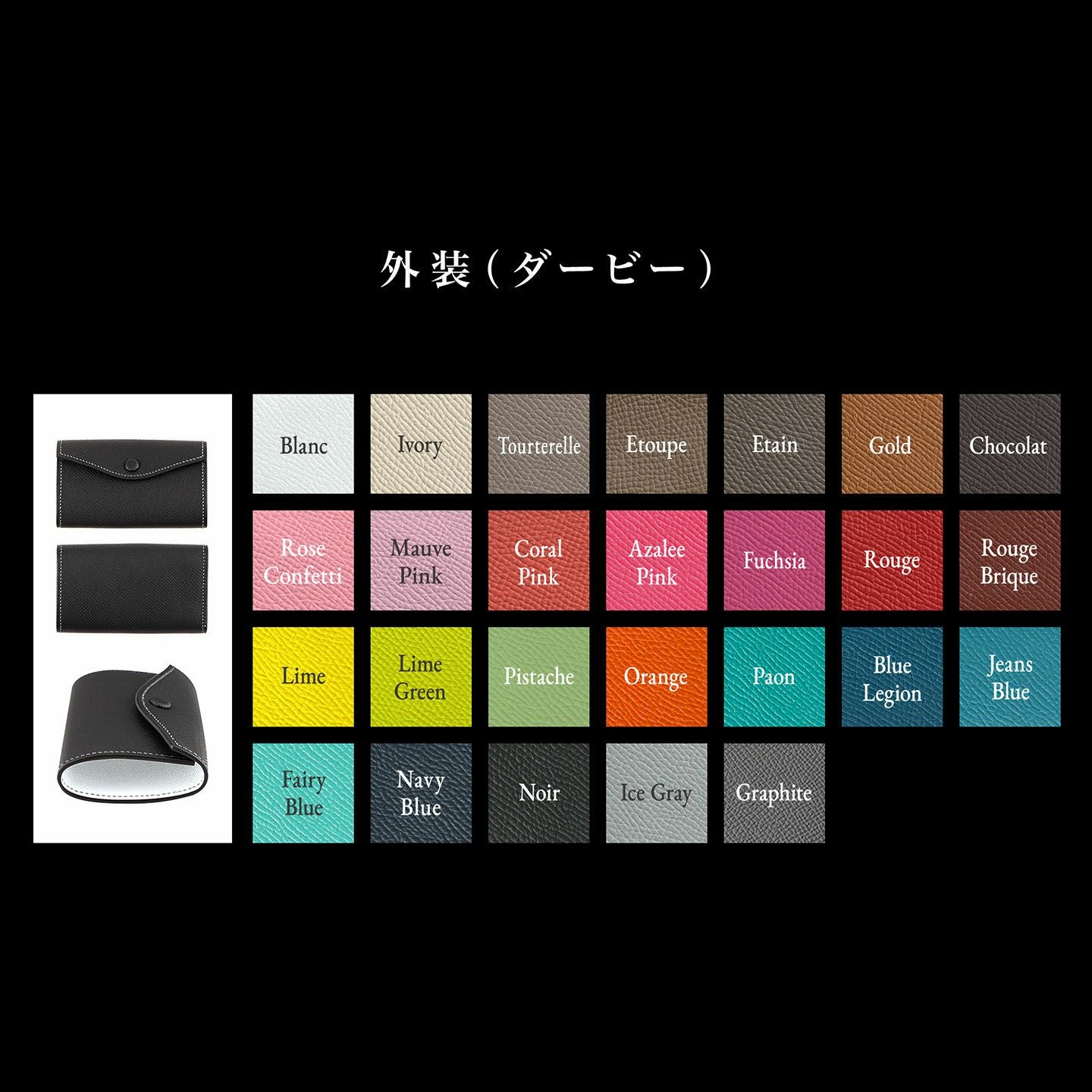 1842年にフランス・アルザス地方で創業した、老舗タンナー・アース社製の「ダービー」。家族経営時代からの伝統を守りつつ、現在では傘下になった大資本から提供される最新技術を駆使して、最高峰の高級皮革を作り出しています。オスの仔牛の原皮を使用している「ダービー」は、細かい型押し加工を施したスタンプレザー(型押し革)で、軽量で小キズ・水分に強いのも特長。マットな表情が美しく、ヨーロッパの有名老舗メゾンでも採用されています。