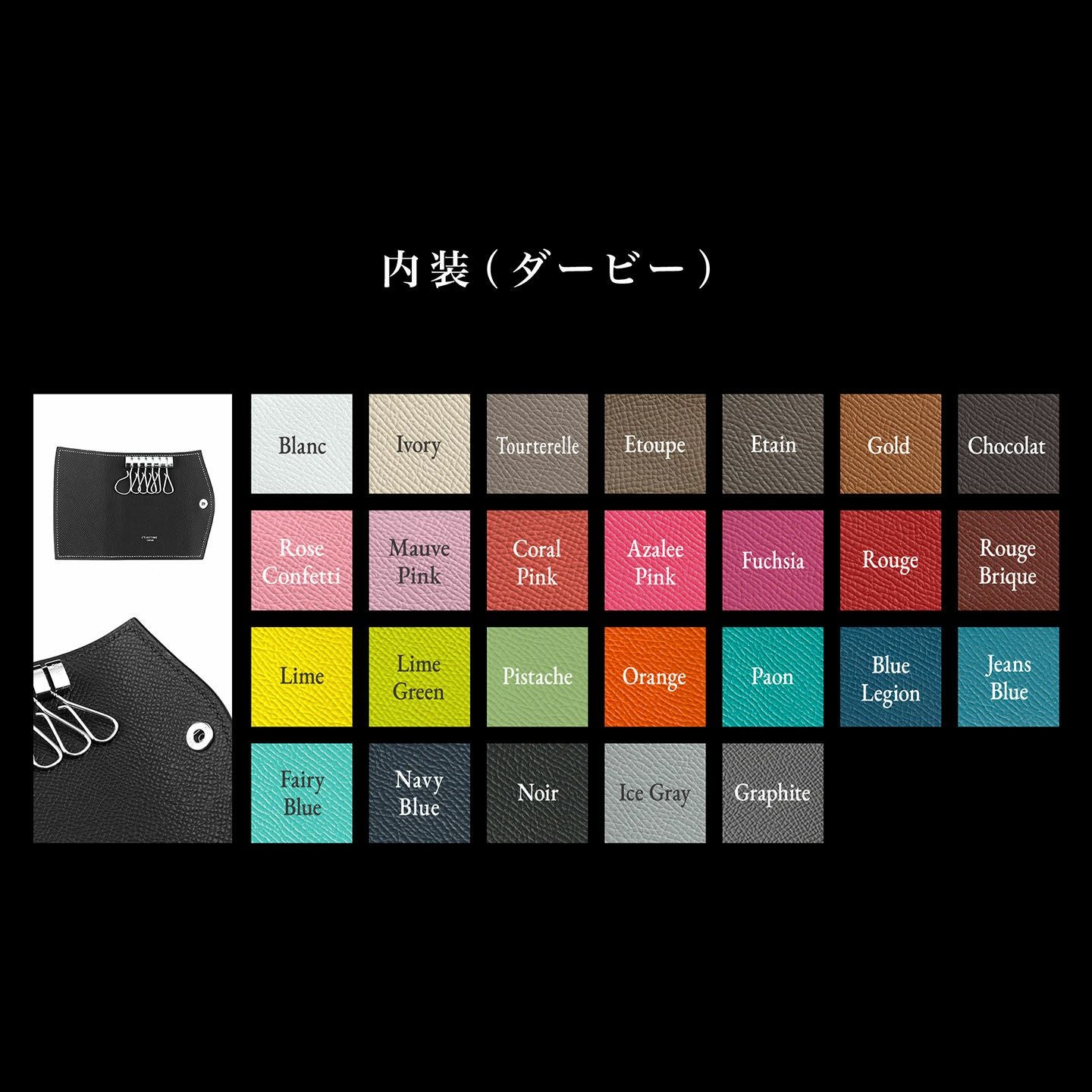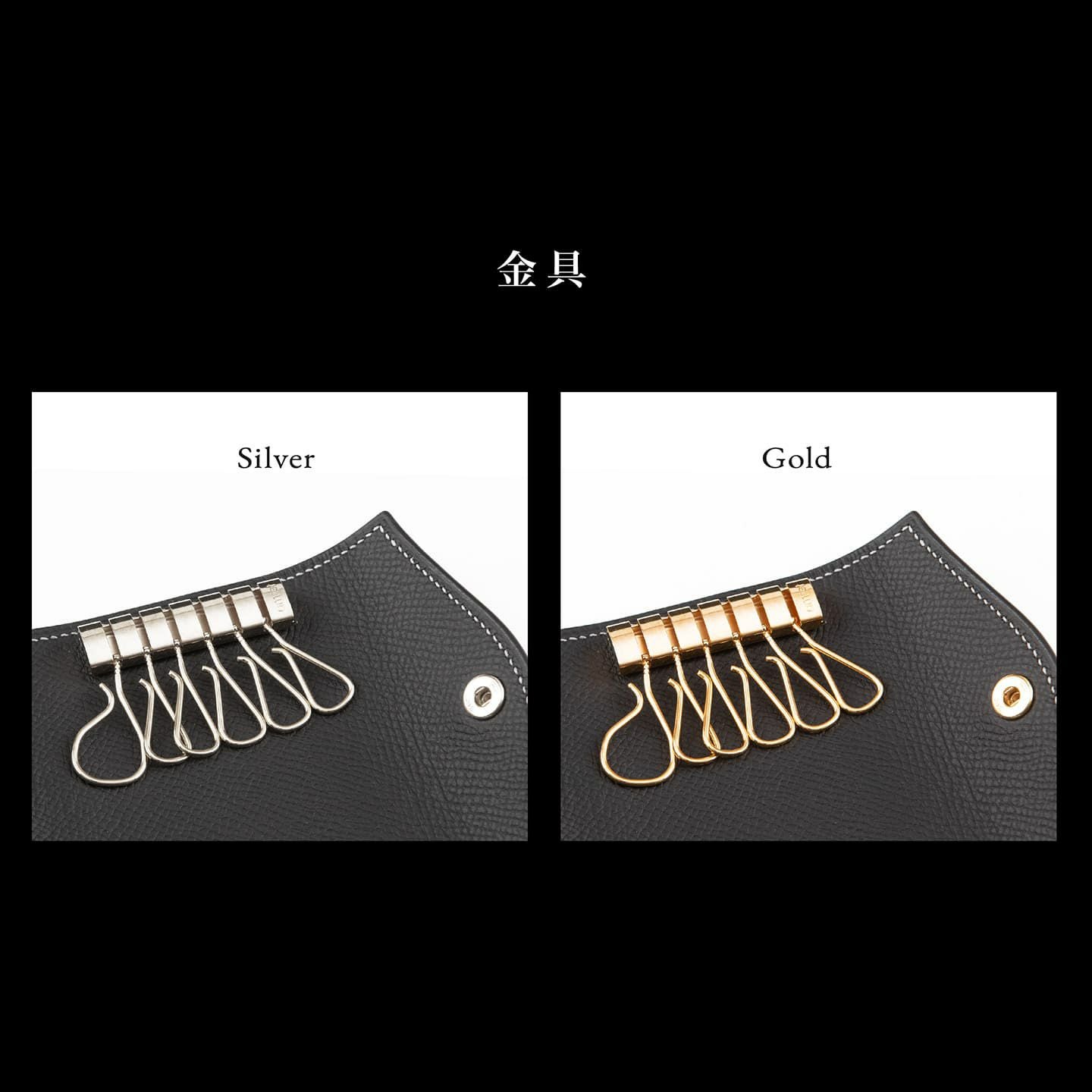 外装・内装ともに、小キズが目立ちにくく水分にも強い、フランス製の型押し牛革「ダービー」を採用。オリジナルの曲線が美しいフラップは、上品なアクセントにもなっている「ダービー」の革ぐるみボタンとともに、洒落た雰囲気を醸し出しながら、片手でも開けやすい実用性も両立。さらに、内部ポケットをあえて省いたミニマムな仕様が、スイス・amiet社製の6連キーケース金具の洗練さと相まって、上質なアイテムへと昇華させています。