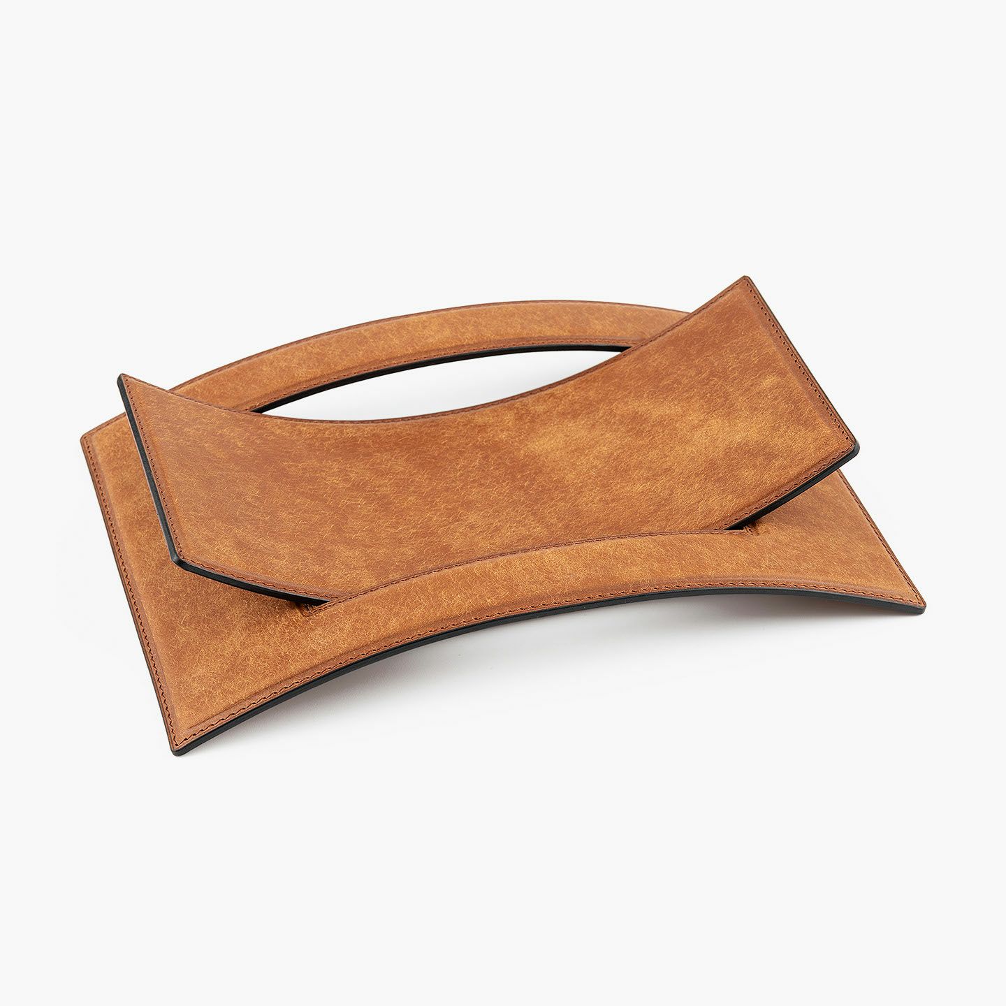 峡谷(キャニオン)に架かるアーチ橋からインスピレーションを受け、ユニークでモダンなデザインを発想したトレー“CANYON”。和紙のように表面を起毛させた独特の風合いが味わい深い「プエブロ」を、土台と受け皿の2パーツに美しく纏わせ、曲面が反対になるように置いただけのシンプルなアイテム。陰影が上下で逆になる立体感が特長的で、アクセントにもある個性的なインテリアへ。使い込むほどに、ツヤ感と色味が増していく経年変化も楽しめ、さらなる愛着感に。リビング・玄関などに置くアクセサリー・小物入れとして、店舗のレジ前などに置くキャッシュトレーとして、スタイリッシュな機能美が洒落感あふれる空間へと演出してくれる。
