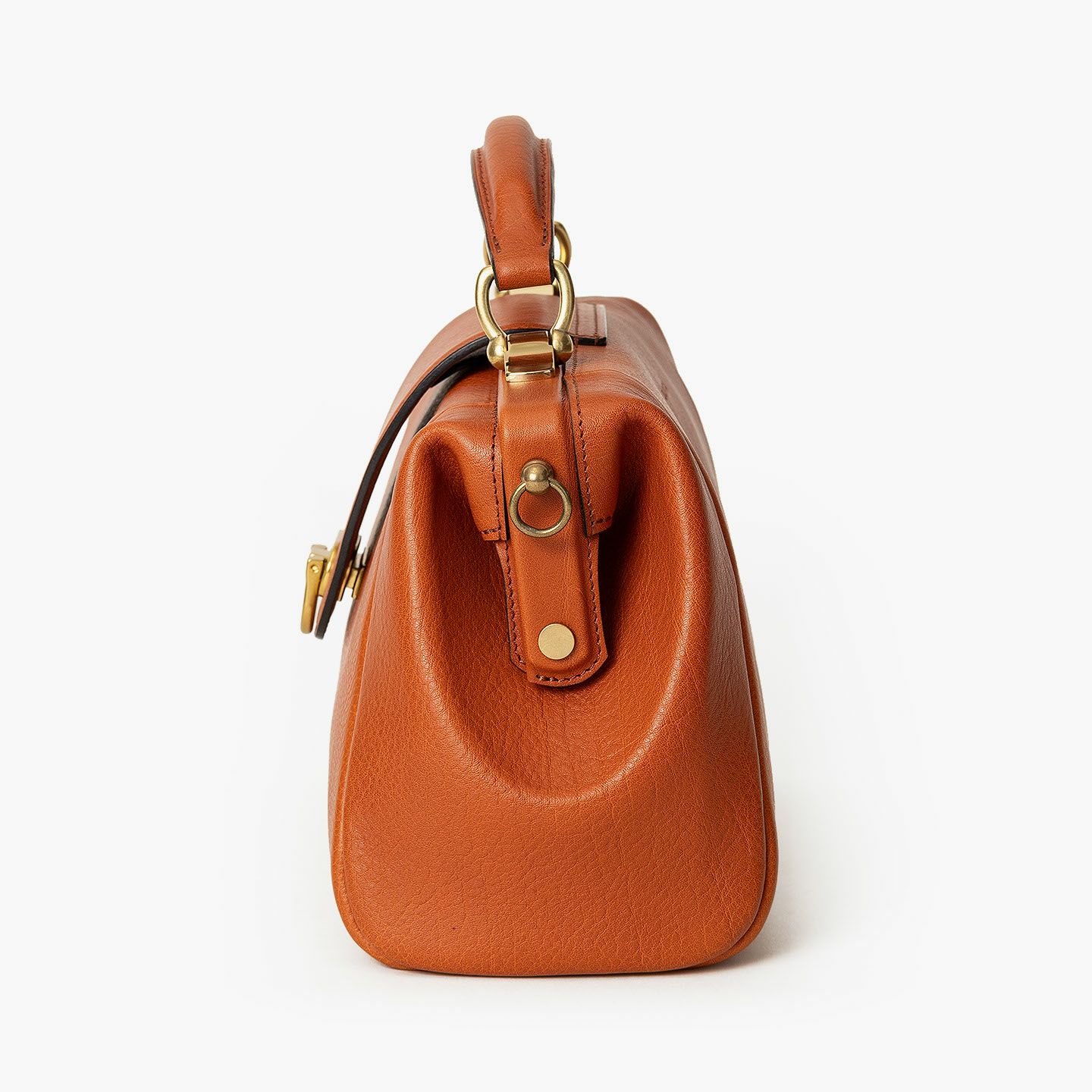 曲線美を追求しながら試行錯誤を重ね、しっかりと自立できる柔らかすぎないフォルムで、十分な収納力を備えたソフトミニダレスバッグ“OE”。丁寧に1枚1枚を仕上げたイタリア・ブレターニャ社製の高級レザー「アリゾナ」の外装が、独特のシボ感と2色から選べる色合いの美しさとともに、独創的なデザインをさらに昇華。がま口式の開閉部や手提げベルト・ショルダーベルトの接続部にあしらわれた真鍮金具が、その佇まいをさらに引き立てながら、ダークグレーの市松模様がエレガントな「甲州織生地」の裏地とともに、洗練された上質感を演出。スタイリッシュな装いで2WAYを楽しめる気軽さが、比類なき大人の洒落感を漂わせてくれる。