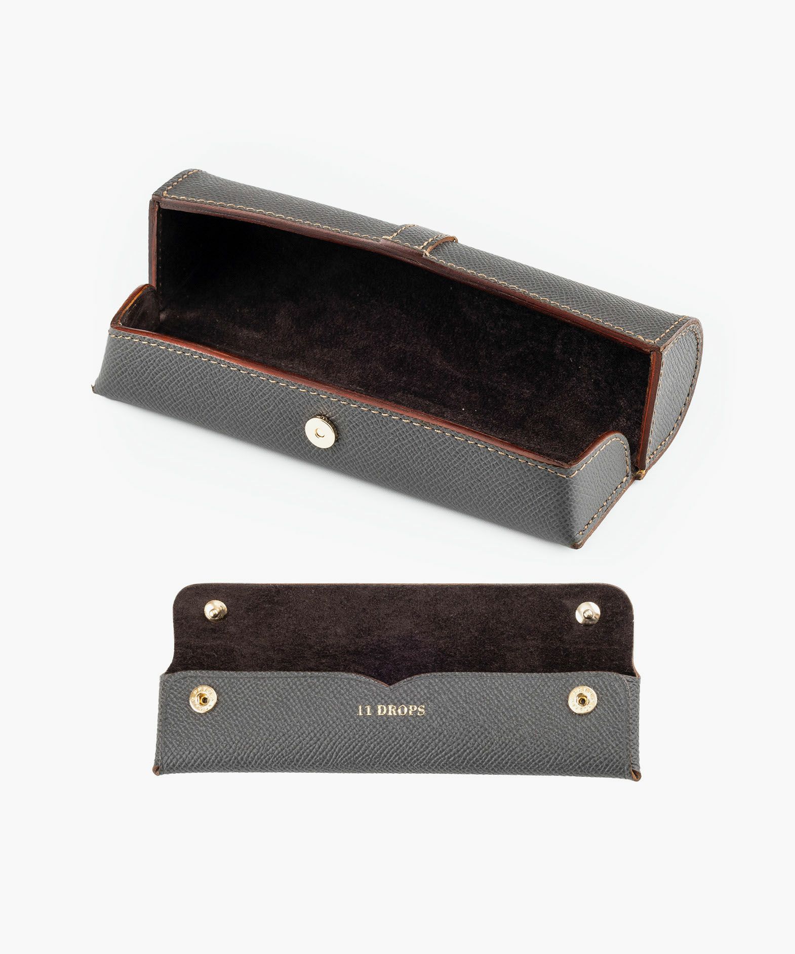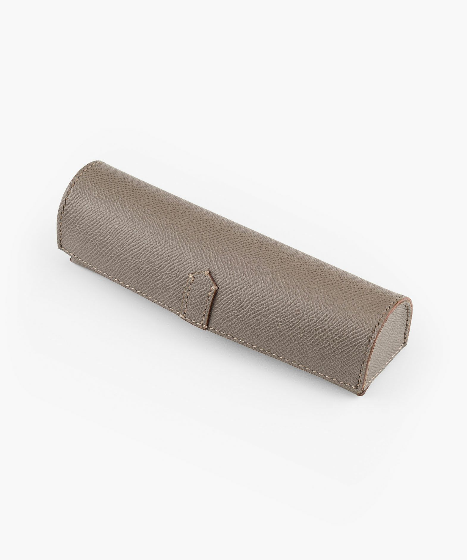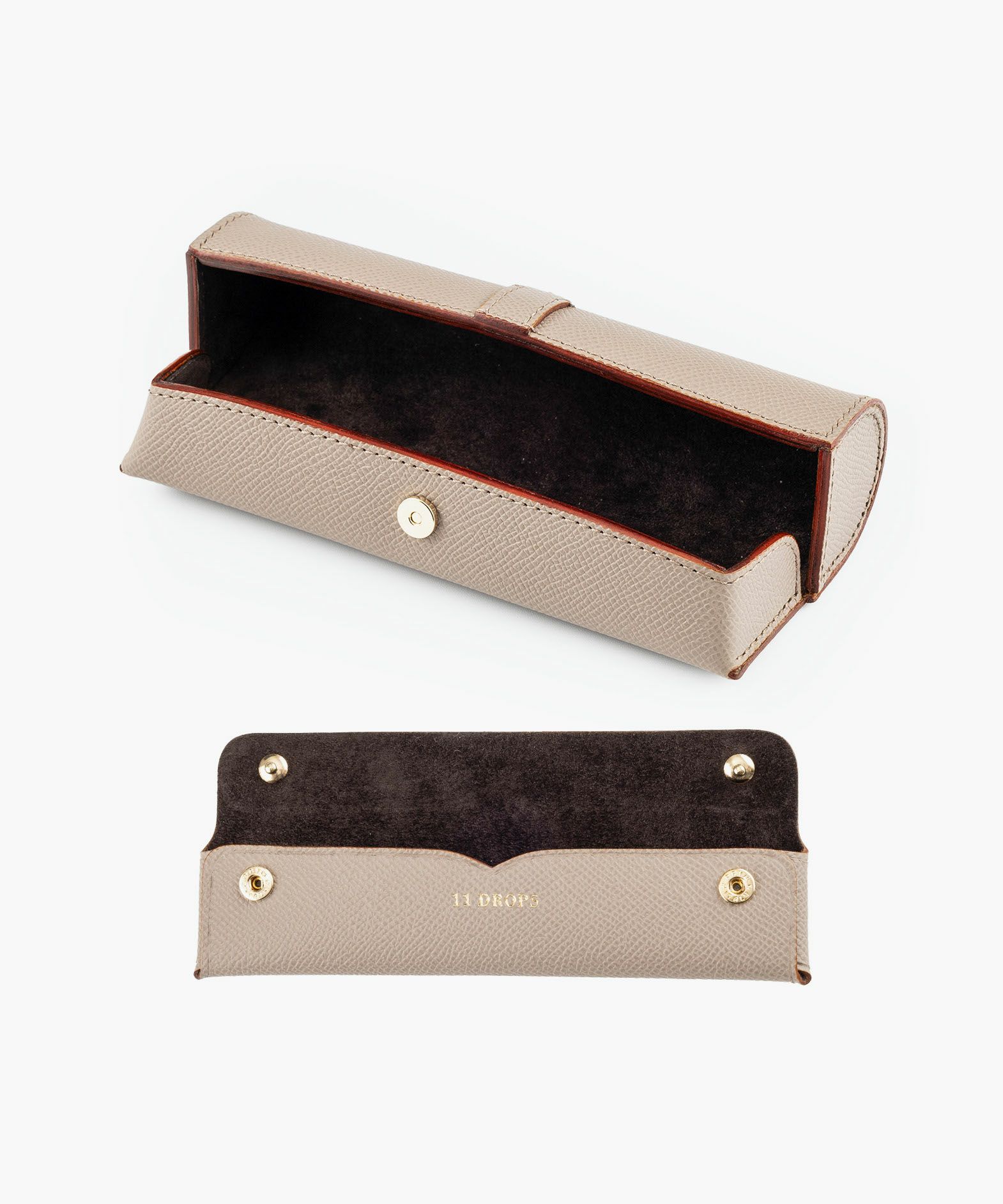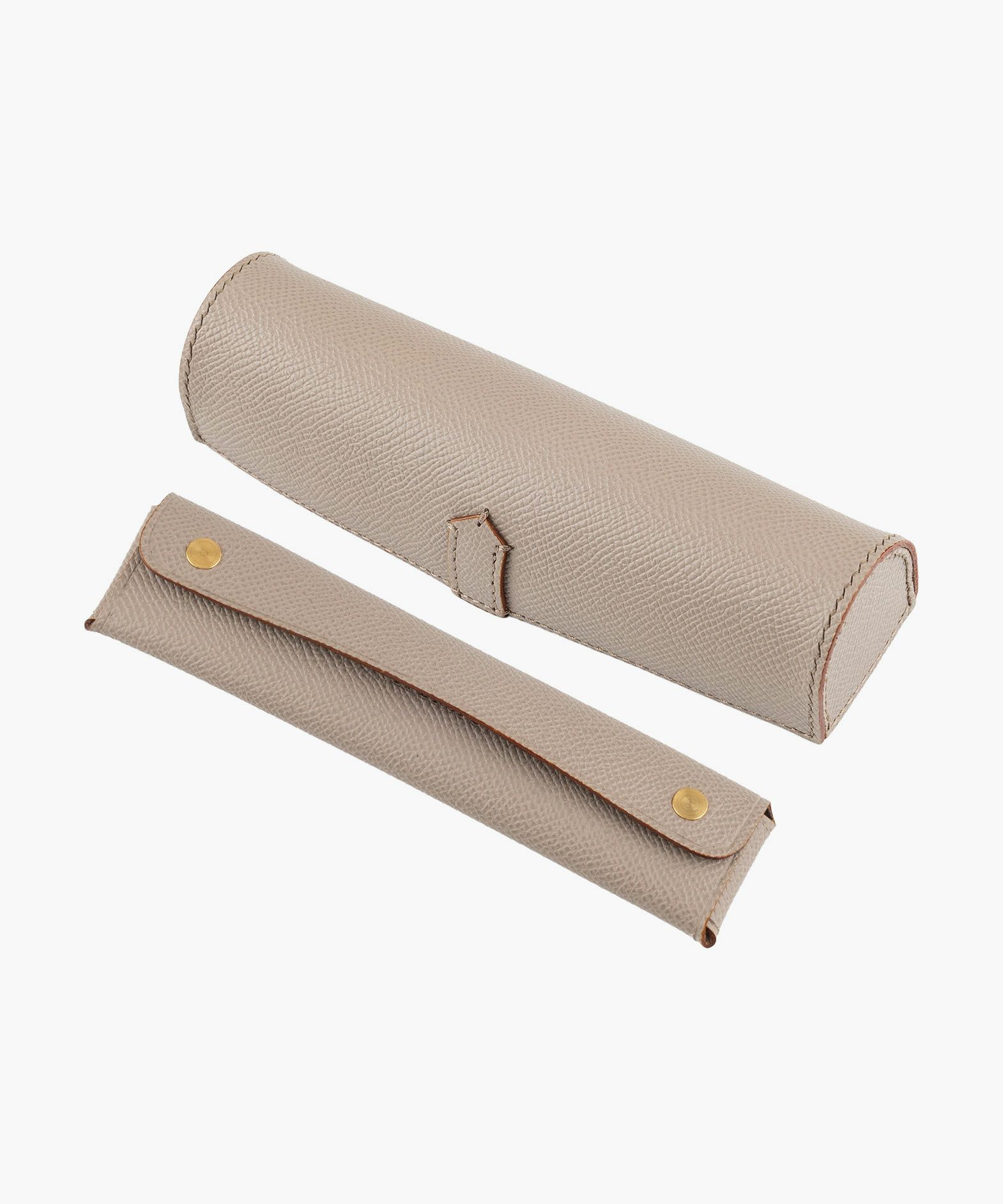 開いたまま置いておくとペントレーにもなり、外部からの衝撃を抑えるドーム状のフォルムが印象的な、ペンケース“HANGAR-M”。簡易ミニペンケースも付属し、単体として別で携えたり、中に入れてペンなどの仕分けをしたり、便利に使えるのも魅力。本体・付属品の外装には、有名老舗メゾンでも愛用されているフランス・アース社製「ダービー」を纏わせ、小キズ・汚れ・水分に強くてキレイに使い続けることも。内装には、ともに「ピッグスエード」を採用し、筆記具を保護するクッション性と手触りの良さが特長。ワンタッチで開閉できるマグネットホック式の開口部は、大きく開いて視認性と利便性を両立。1つの商品でありながら、2つのペンケースを扱え、ハイセンスな大人感をオンオフ問わず演出してくれる。