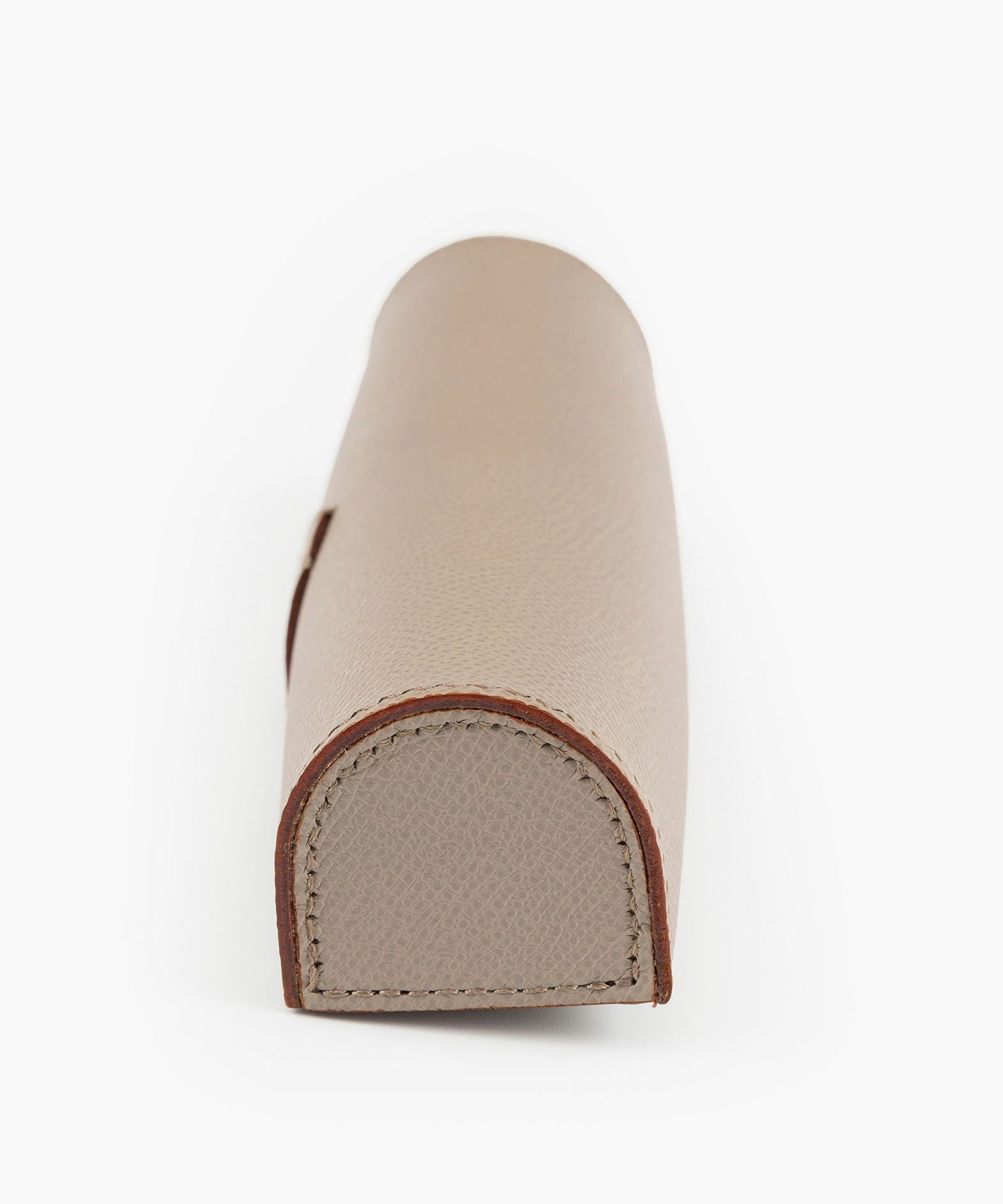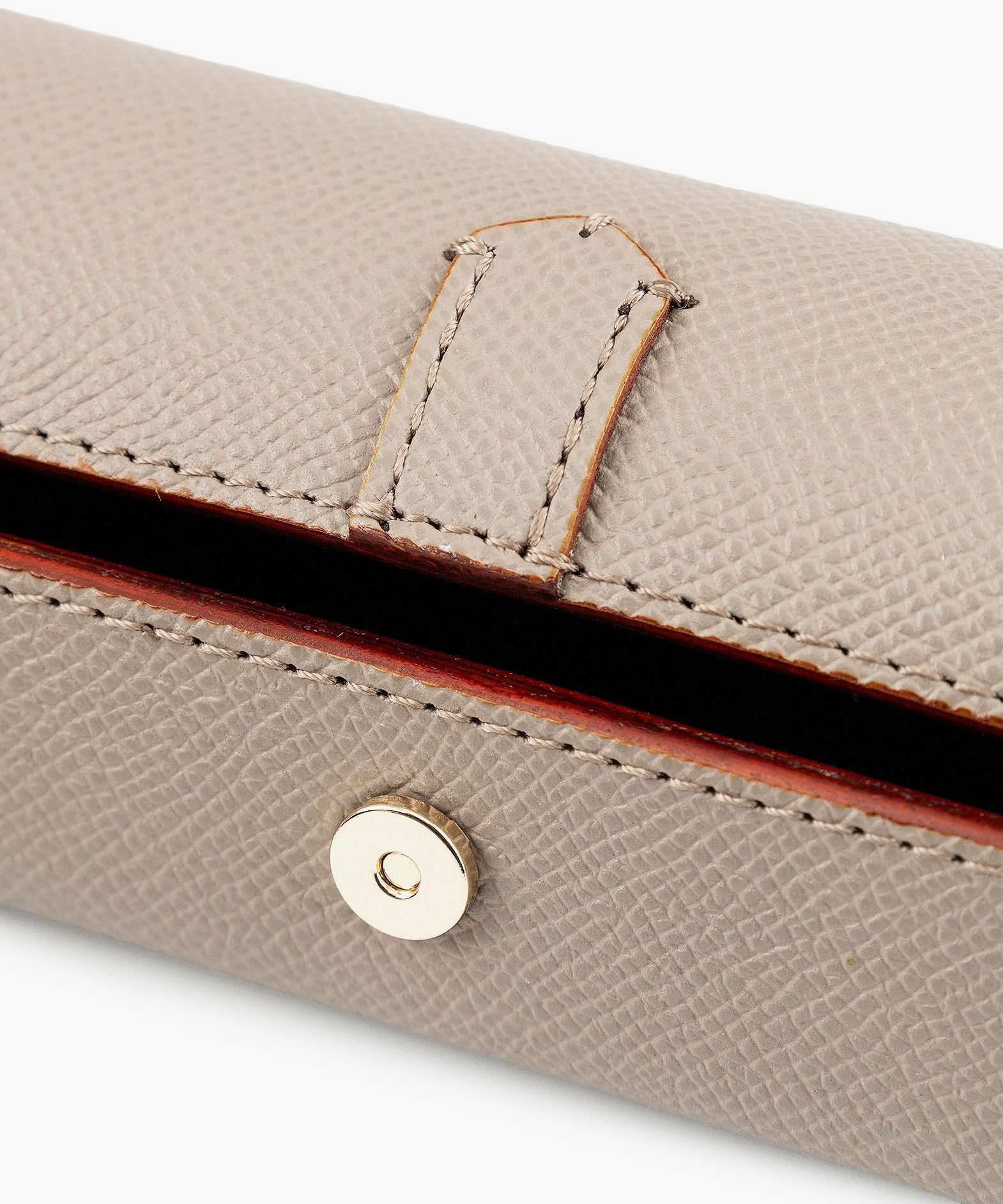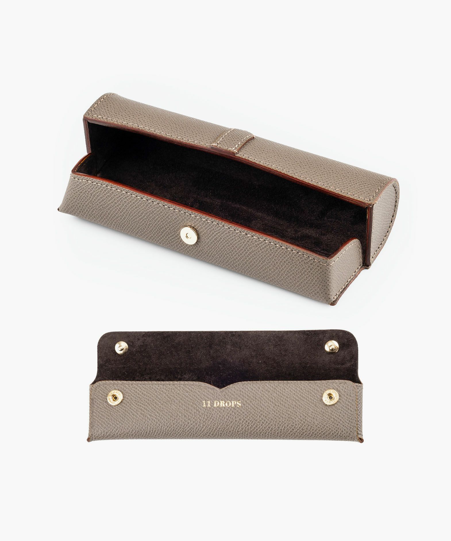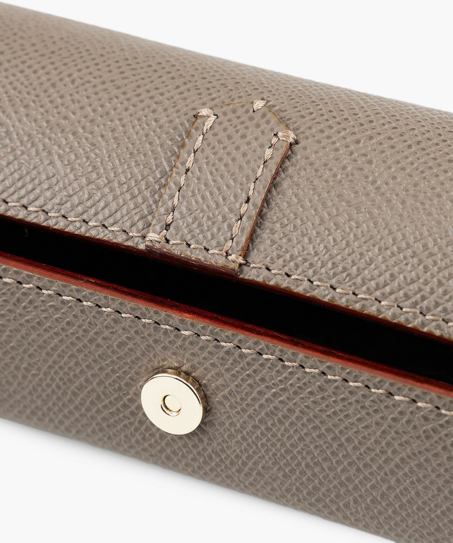 開いたまま置いておくとペントレーにもなり、外部からの衝撃を抑えるドーム状のフォルムが印象的な、ペンケース“HANGAR-M”。簡易ミニペンケースも付属し、単体として別で携えたり、中に入れてペンなどの仕分けをしたり、便利に使えるのも魅力。本体・付属品の外装には、有名老舗メゾンでも愛用されているフランス・アース社製「ダービー」を纏わせ、小キズ・汚れ・水分に強くてキレイに使い続けることも。内装には、ともに「ピッグスエード」を採用し、筆記具を保護するクッション性と手触りの良さが特長。ワンタッチで開閉できるマグネットホック式の開口部は、大きく開いて視認性と利便性を両立。1つの商品でありながら、2つのペンケースを扱え、ハイセンスな大人感をオンオフ問わず演出してくれる。