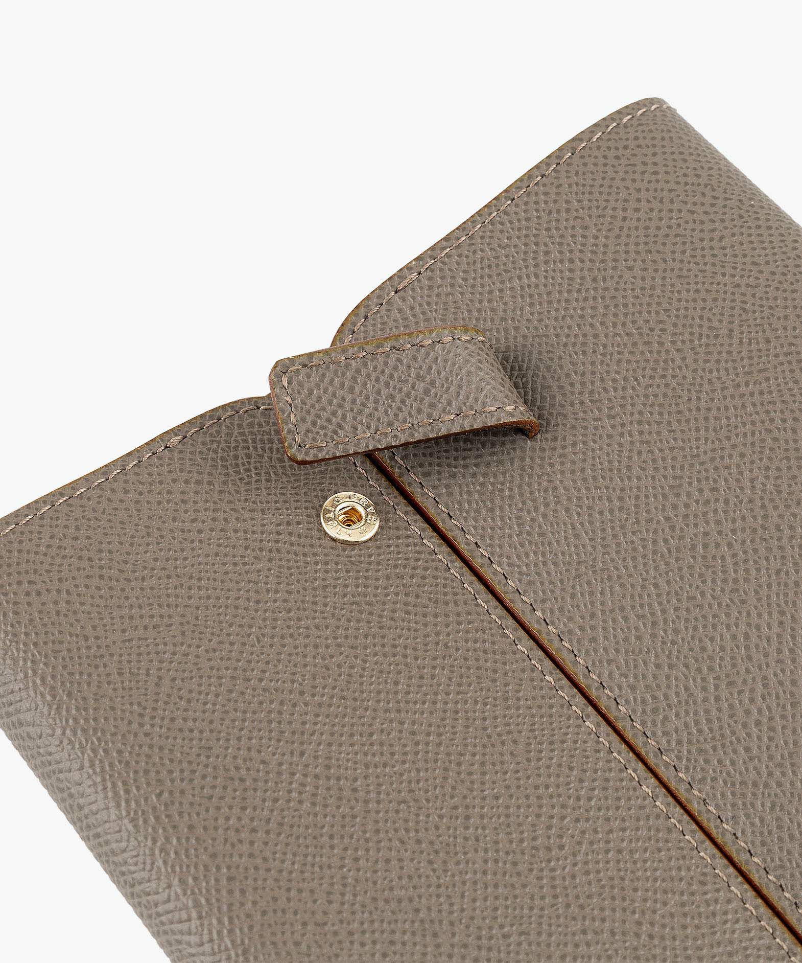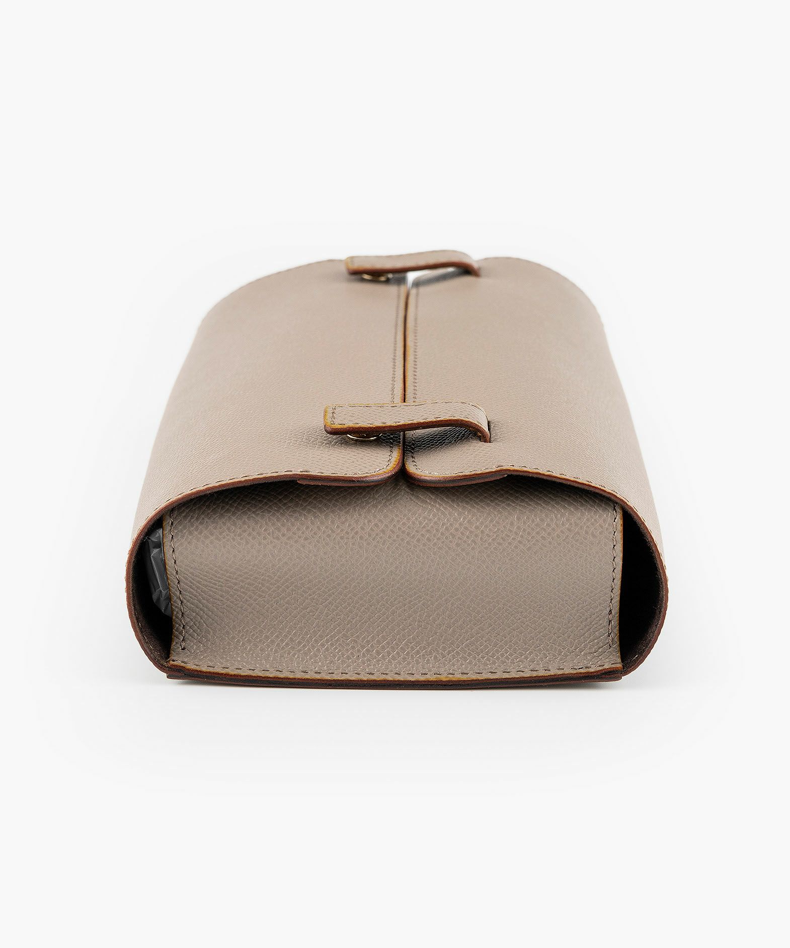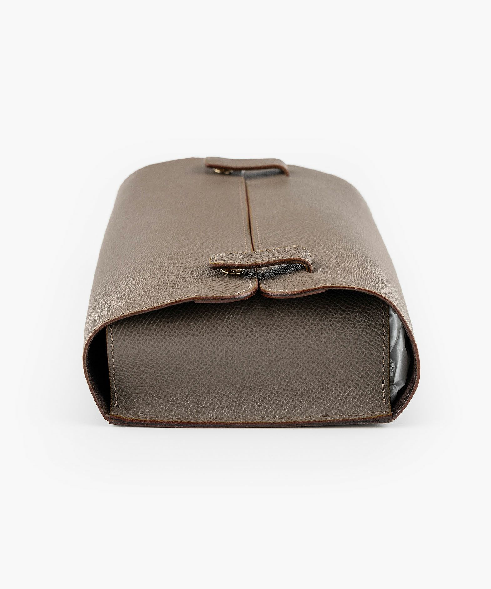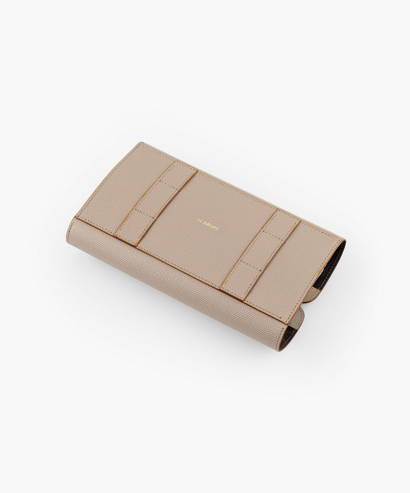 独自のマチ構造により、ティッシュの内容量(収納枚数)に合わせて、ボディ全体が膨らんだり萎んだりして厚みが変わる、ソフトパック専用の折り畳み型ティッシュカバー“Swell”。細かな型押しのマットな表情が美しい、フランス・アース社製「ダービー」を外装として採用。小キズ・汚れ・水分に強いので、ラフに扱ってもキレイな状態のまま長く使い続けられるのも特長。長さ約70cmのレザーストラップを付属し、壁掛けや自動車シートなどに提げて使うことも。ティッシュを取り出すたびに小さくなっていく佇まいが、使い込むたびに大きくなっていく愛着感にもなり、シーンを問わず満足感をもたらしてくれる。